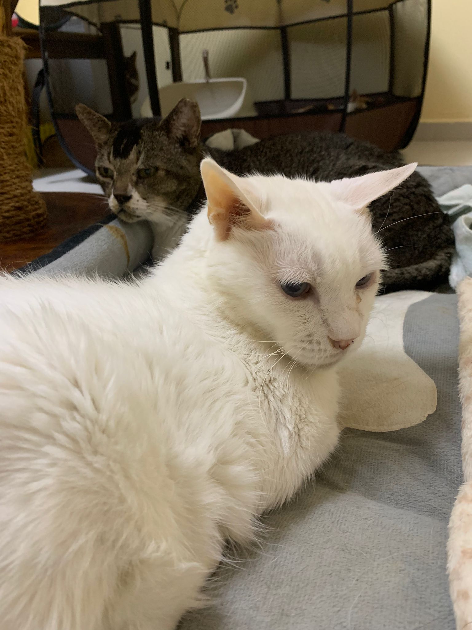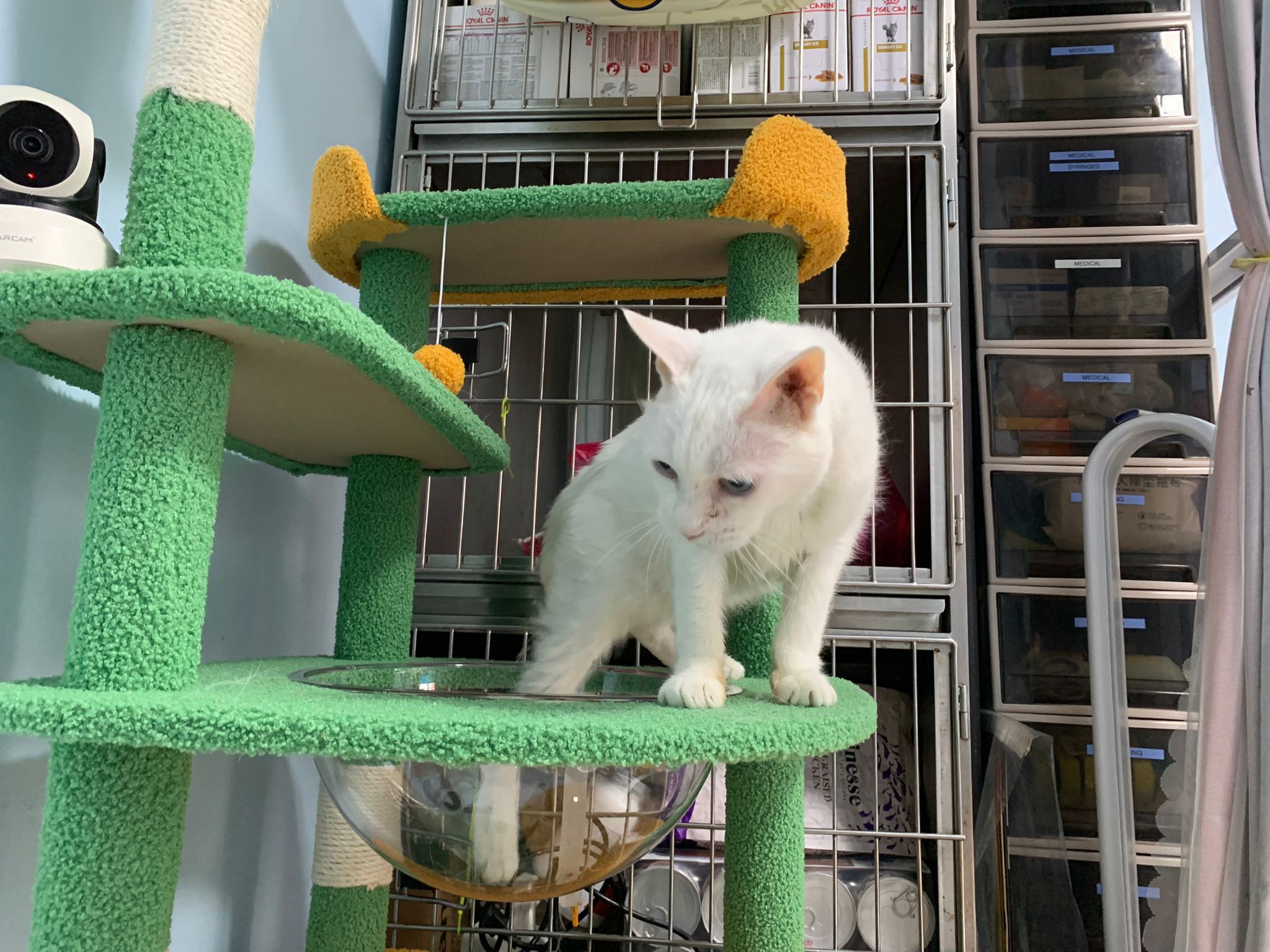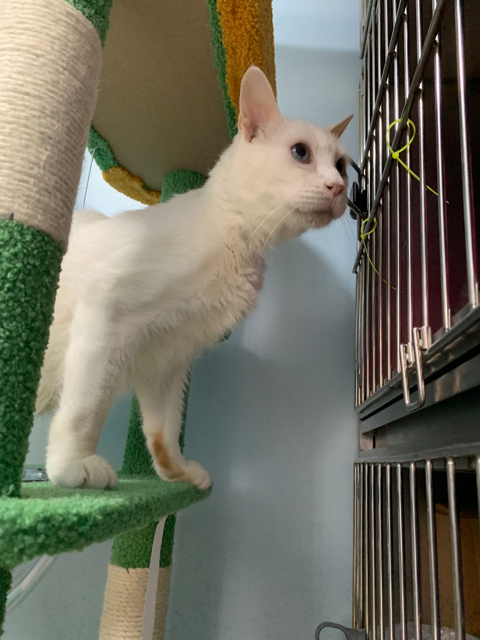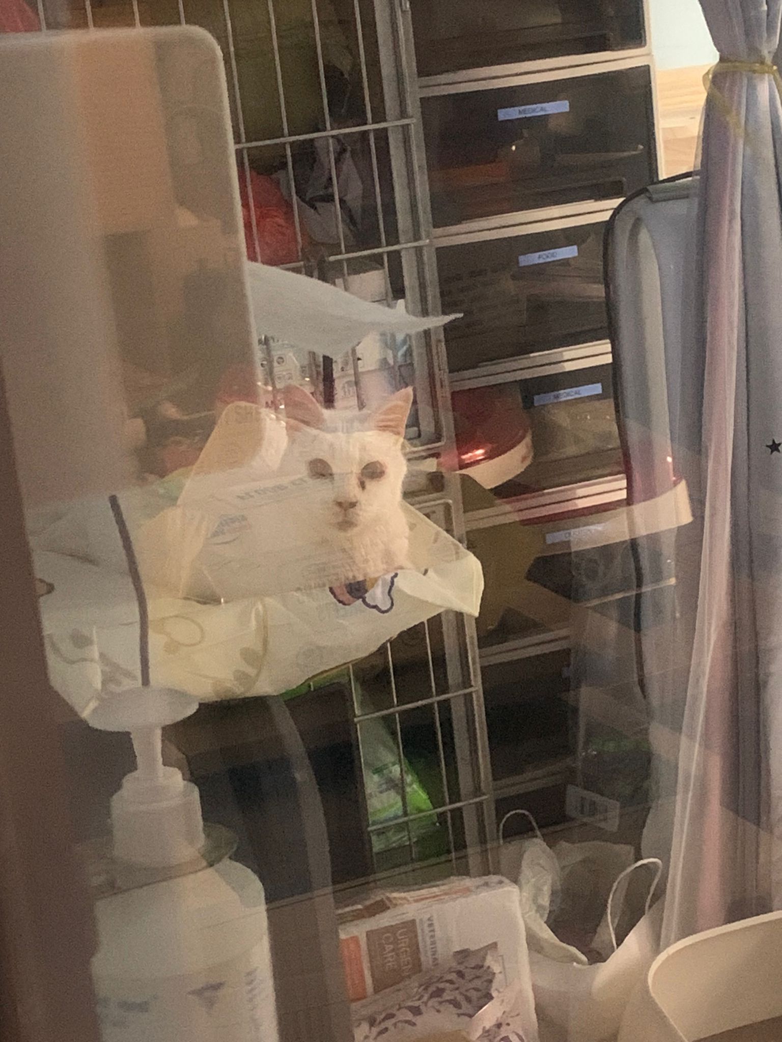 The vet put in a iv cath, so scary. Just 2 jabs time n cute baby is gone. Scary. oh ya today get to see one of the cats (like Bella Liang) and ha the 2 dogs so cute. One like to lick me so much
