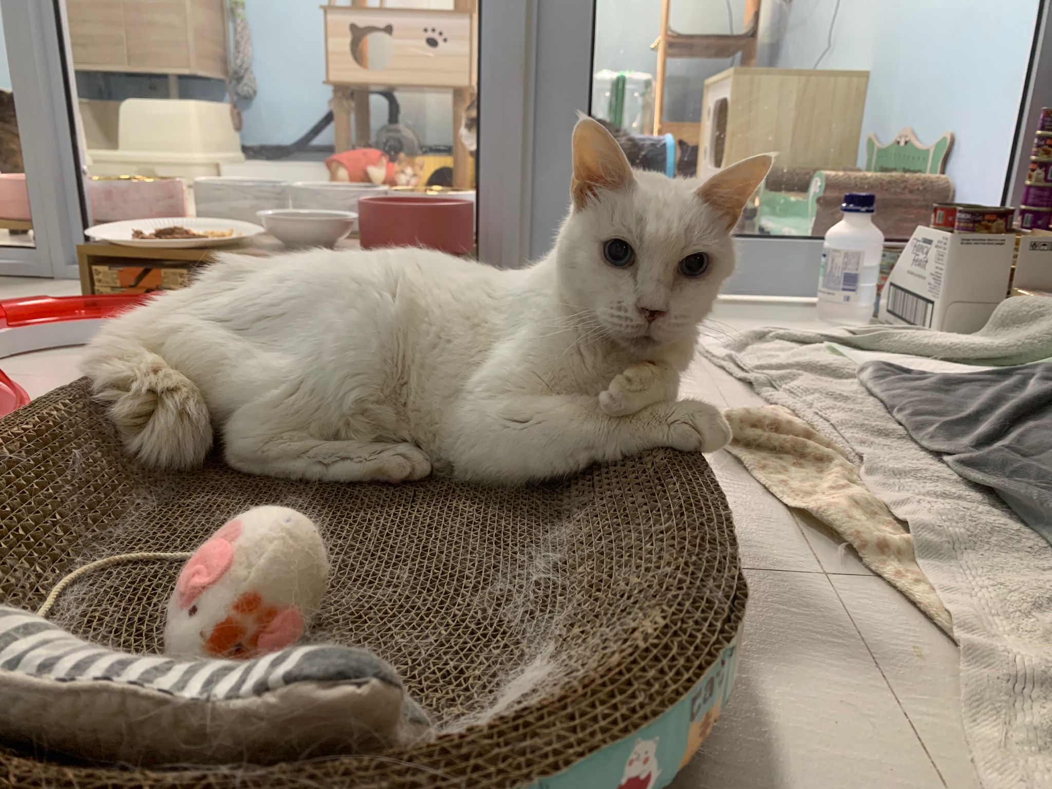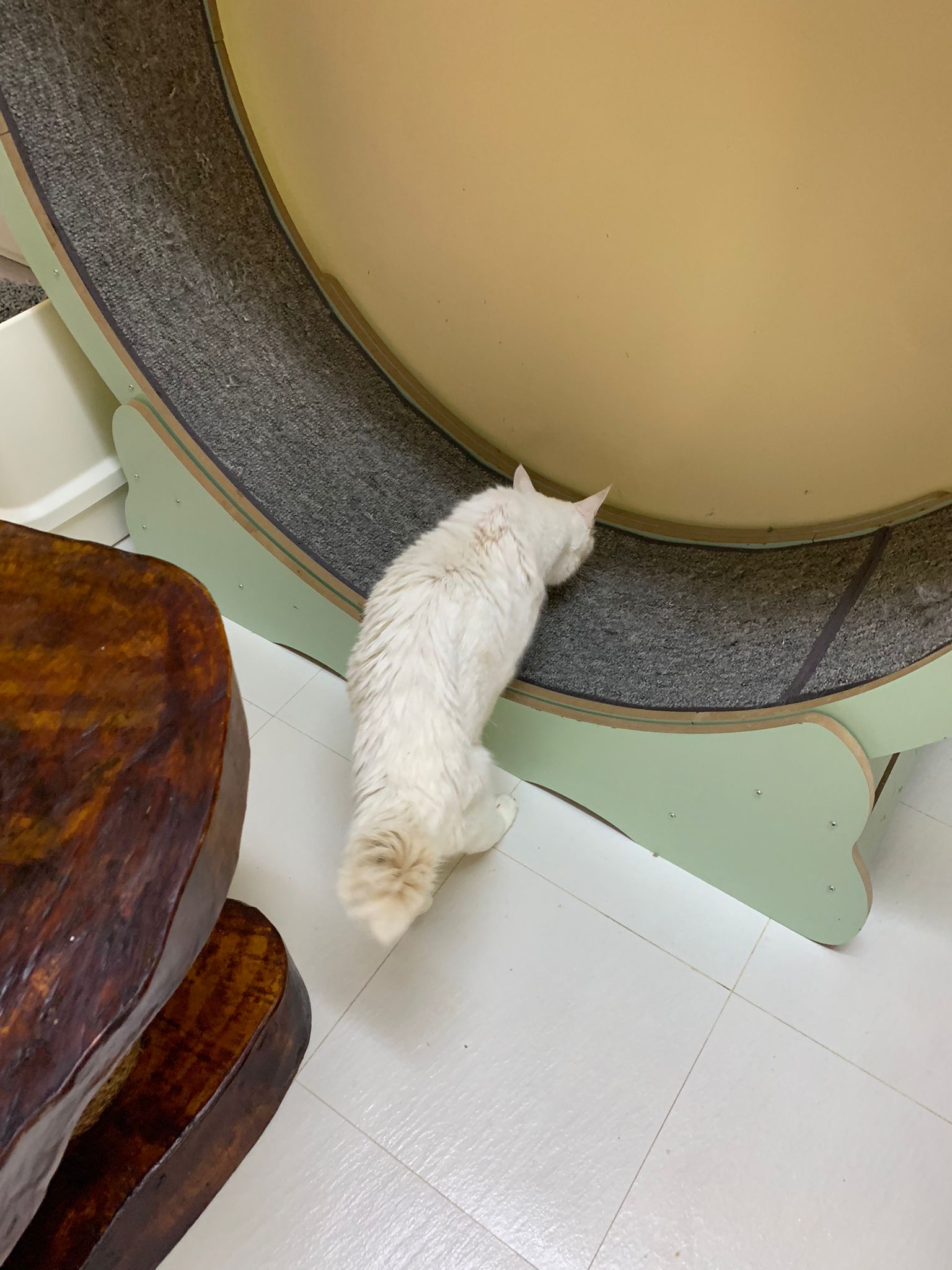 I didn’t know a nonsense will be back to create unnecessary negative vibes, hope snowy repel all the negative vibes. Even vibes got scientifically reason one, cos affect the mood of the cats and their brains and will release hormones. hope that each time snowy run down the stairs will think of the happy day that ah Mao says I finally get to see where u r living n you are the host who show me ur house. Cos everytime she is at 猫房, she is like a rich princess who come to a poor cat house to visit and make friends n go back to her house.
