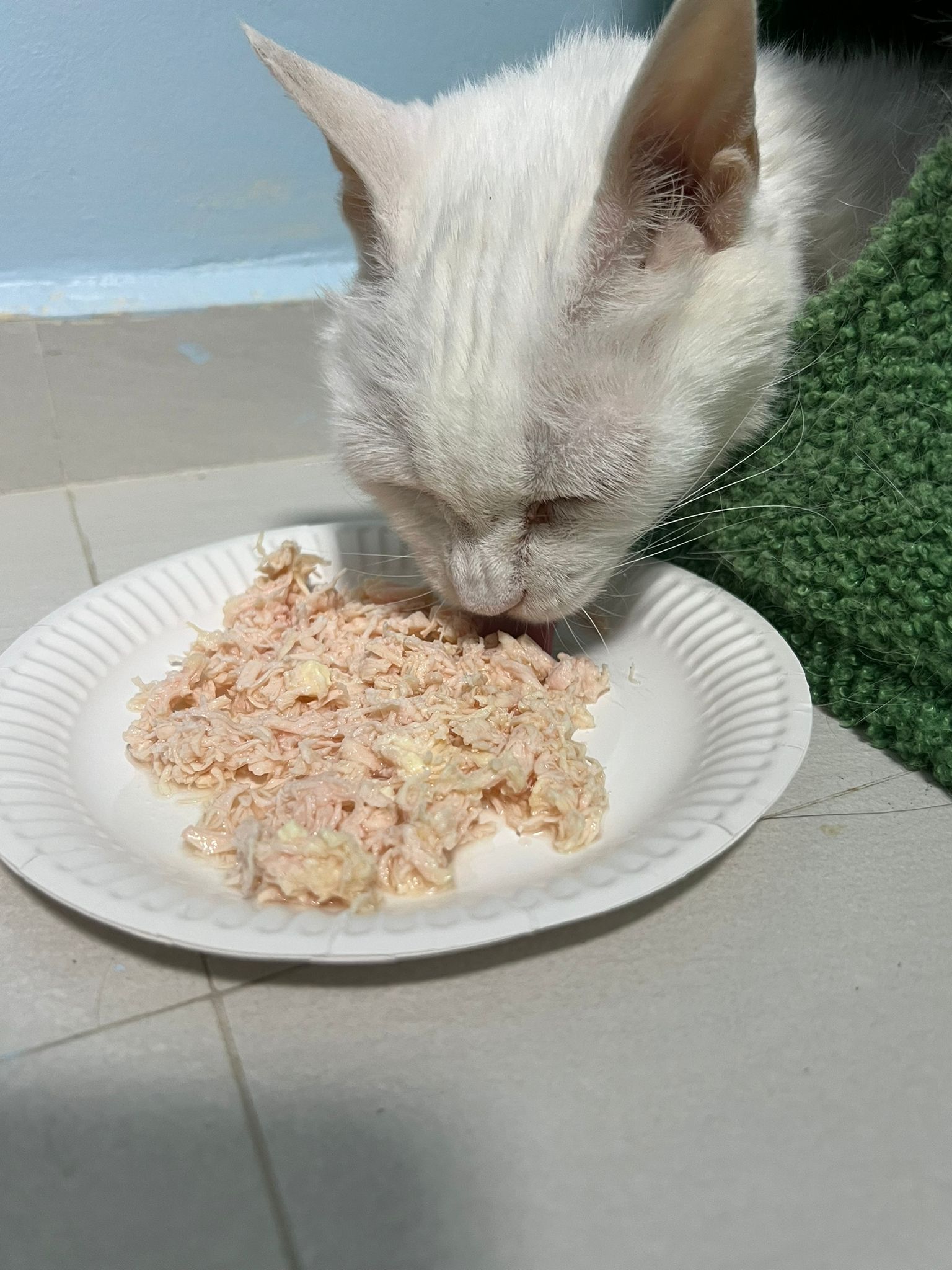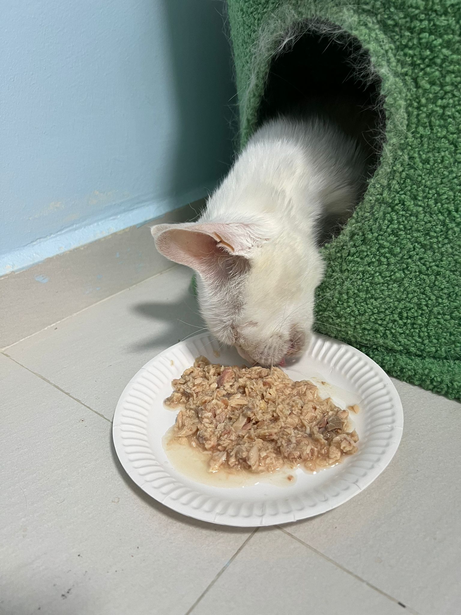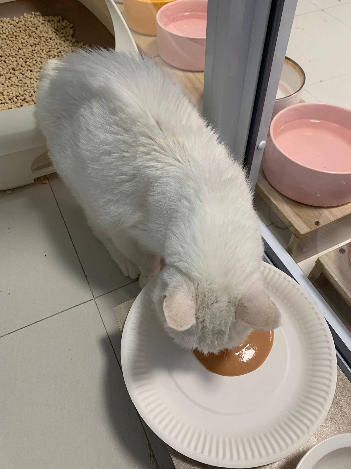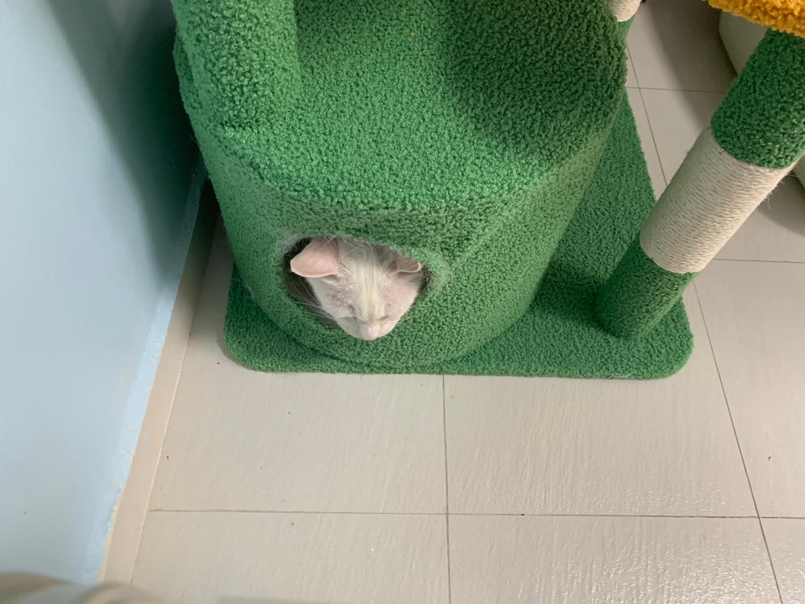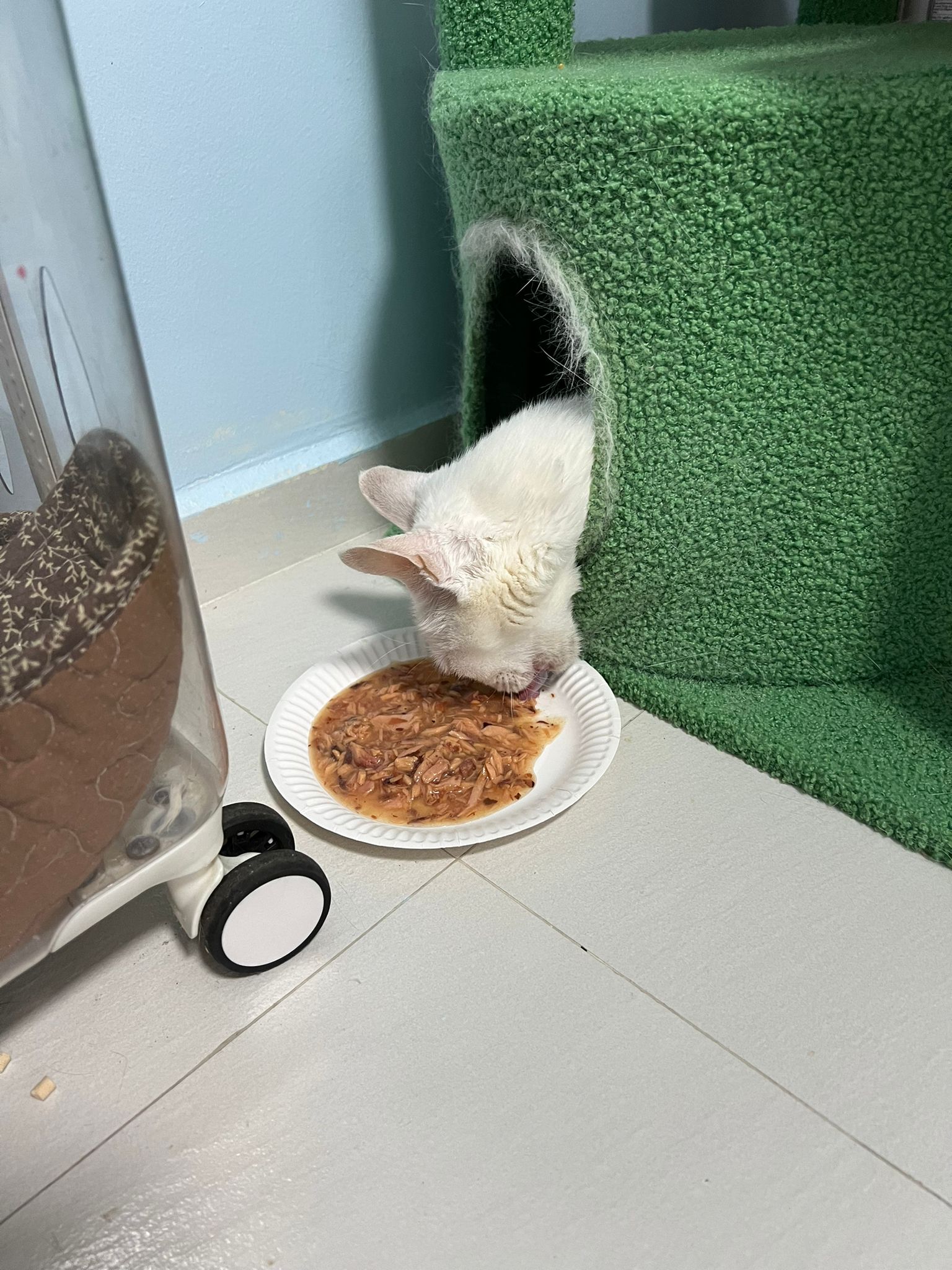 I serve aixia oldie green tuna flavour she ate 80%. She go sit on the oval sb, for scratch it. Not fierce. Laze ard. Didn’t growl not scare. Got lie down just looking at Xiami and don.