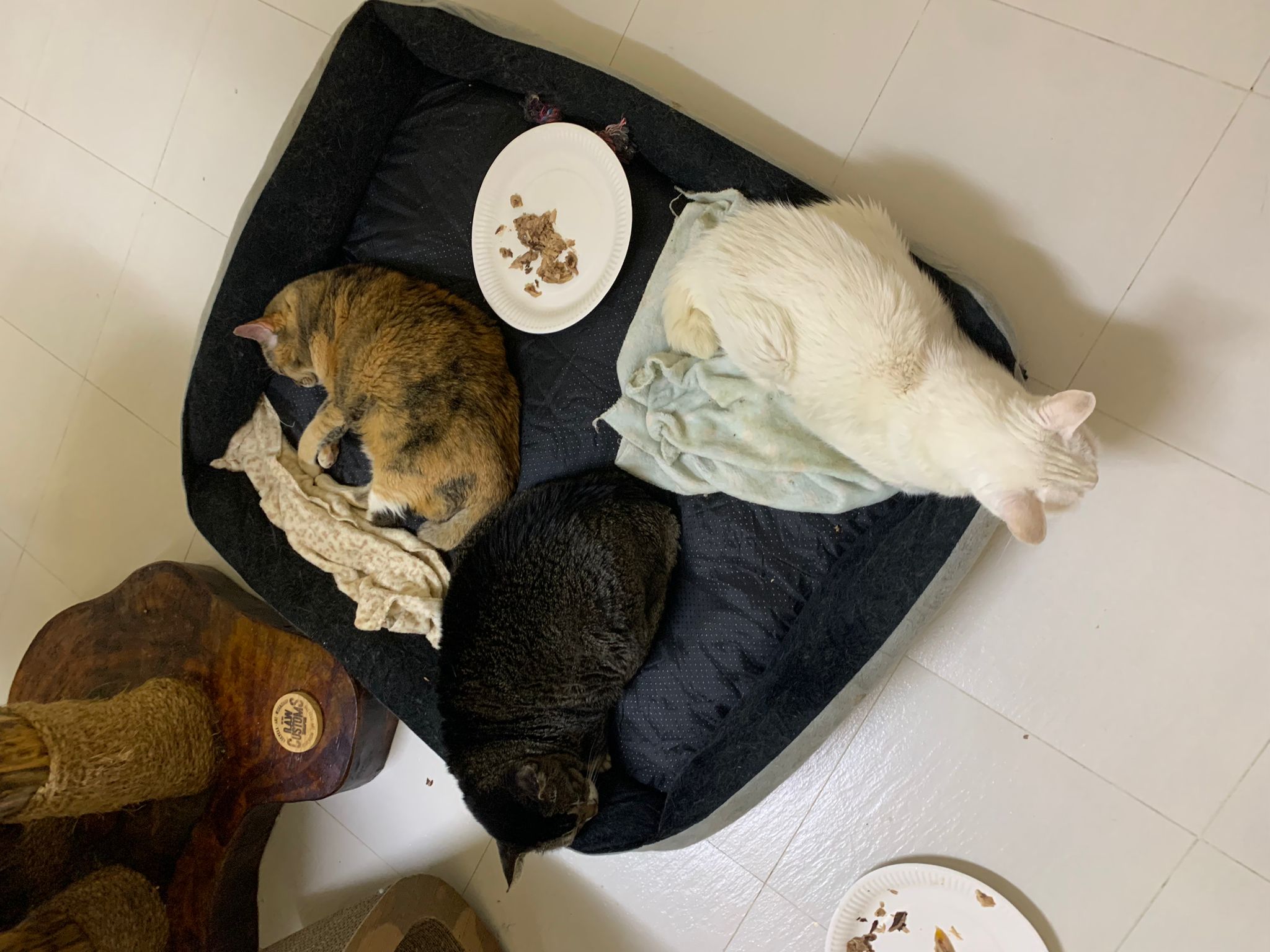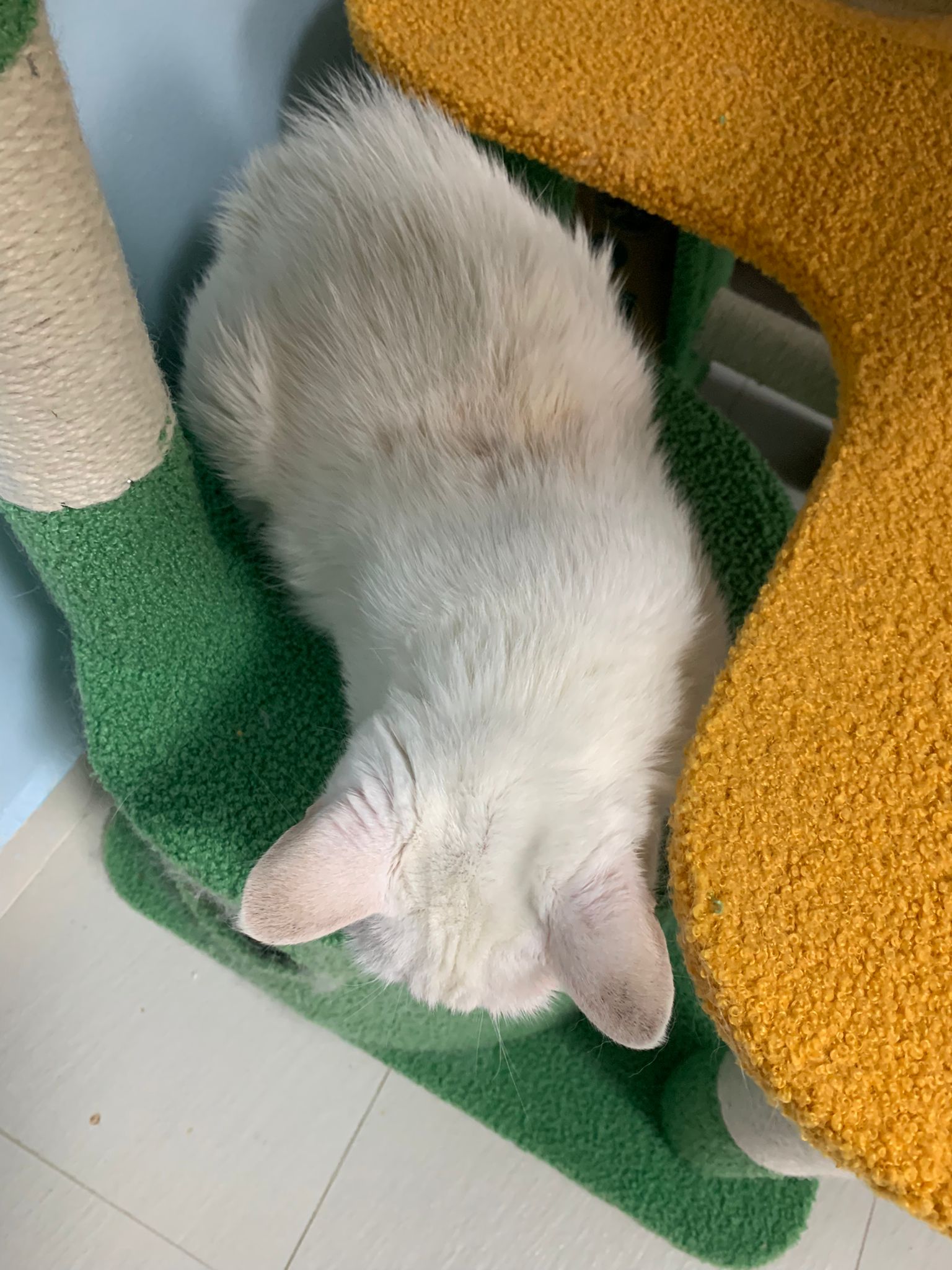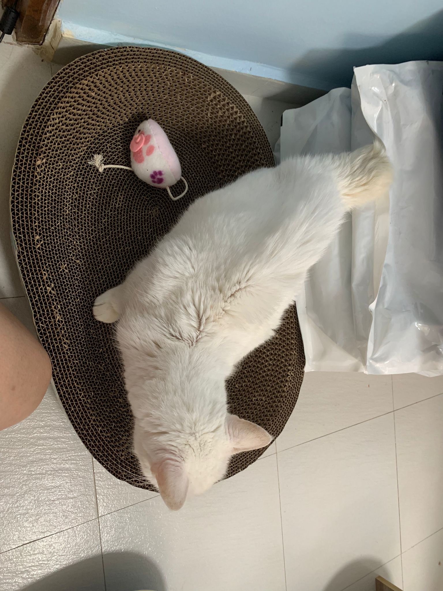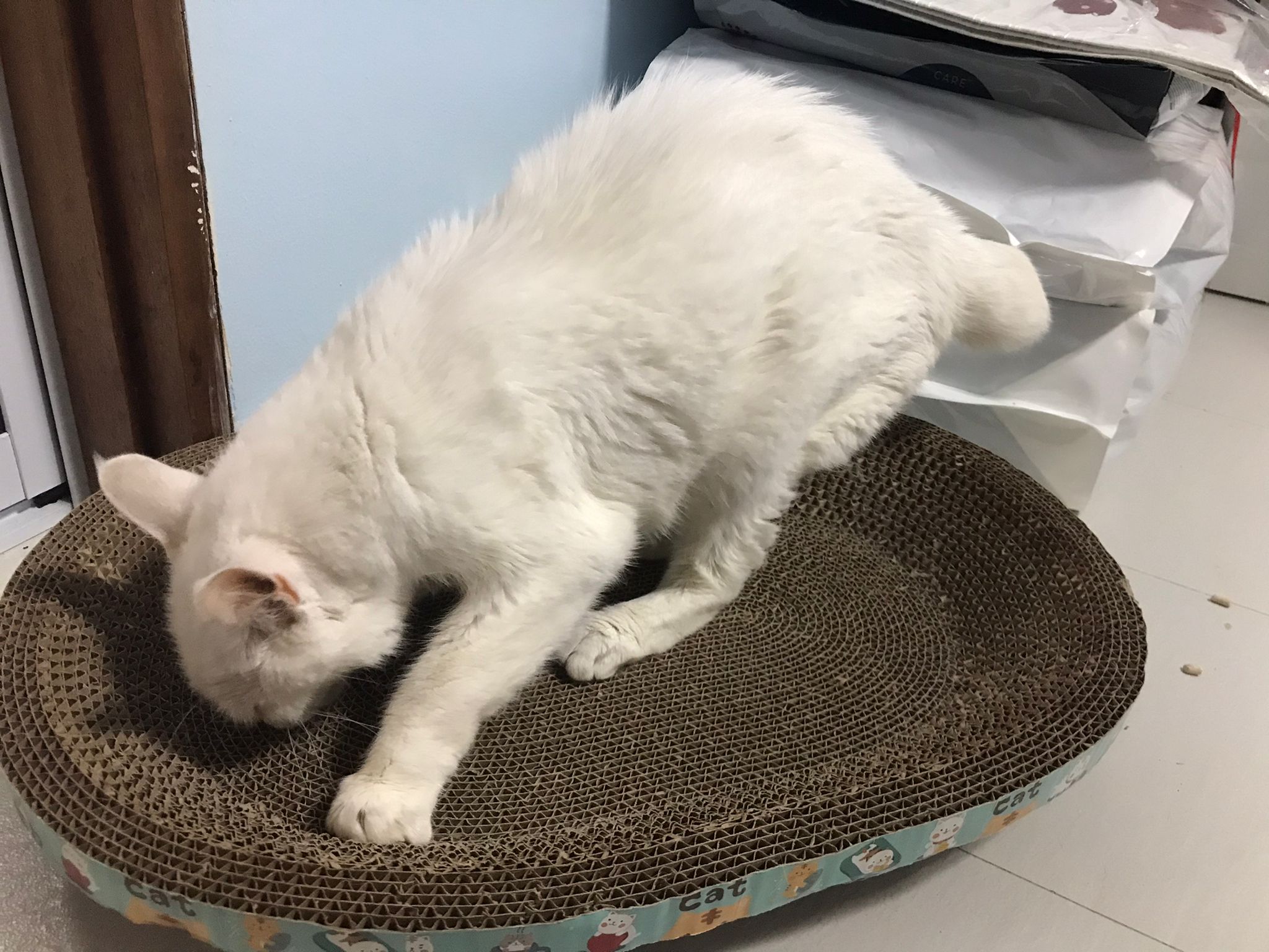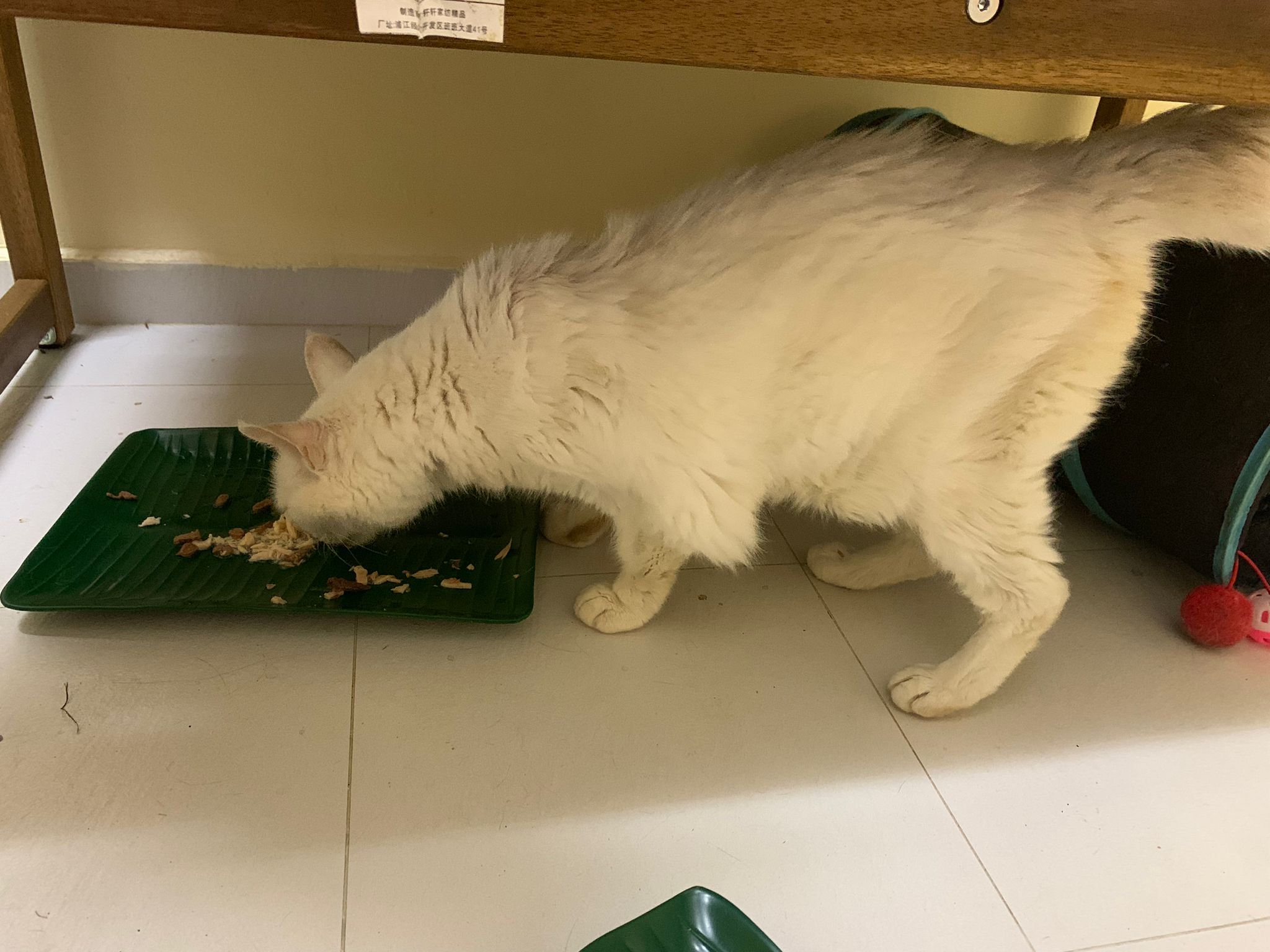I serve aixia oldie green tuna flavour she ate 80%. She go sit on the oval sb, for scratch it. Not fierce. Laze ard. Didn’t growl not scare. Got lie down just looking at Xiami and don.