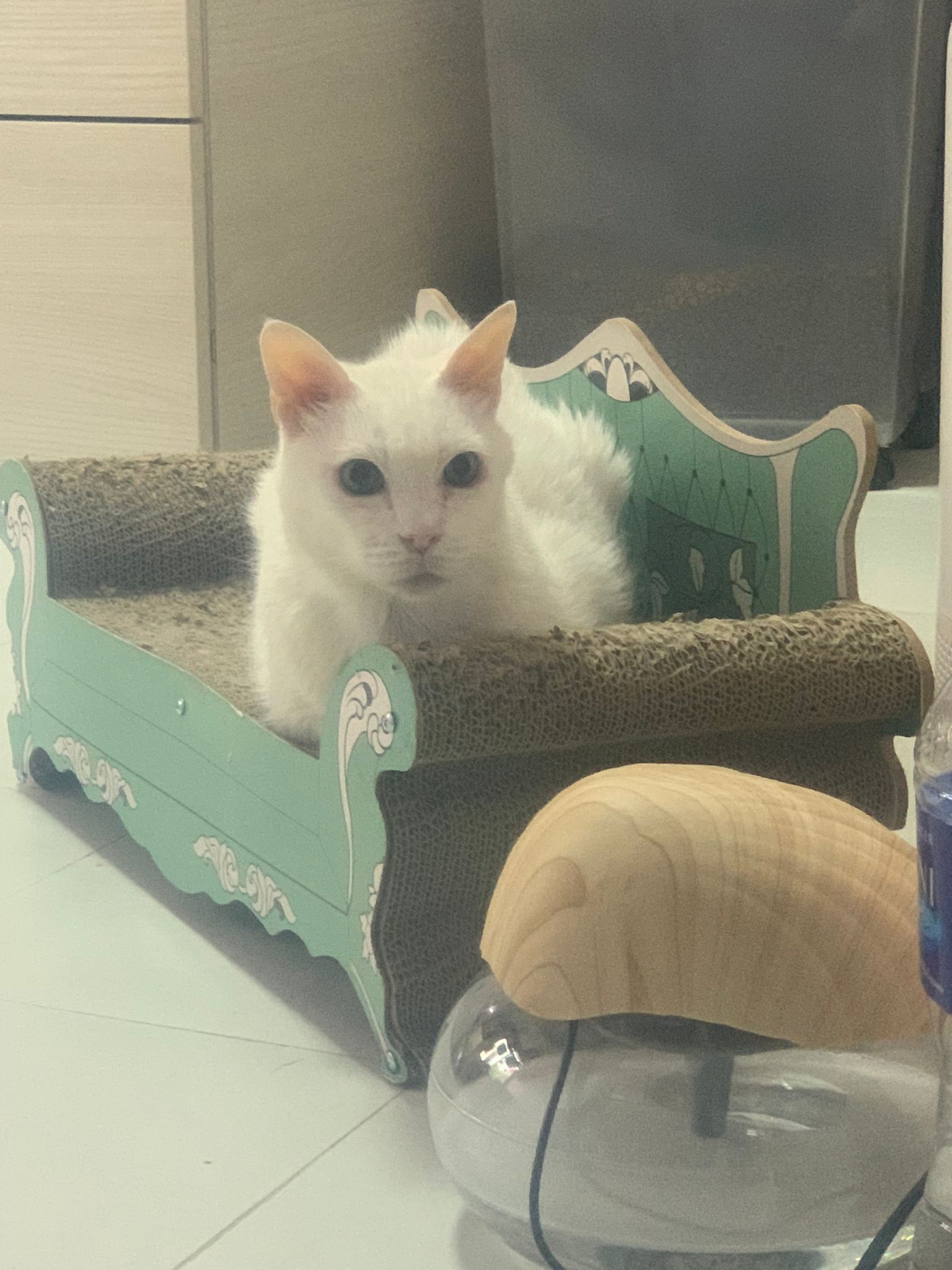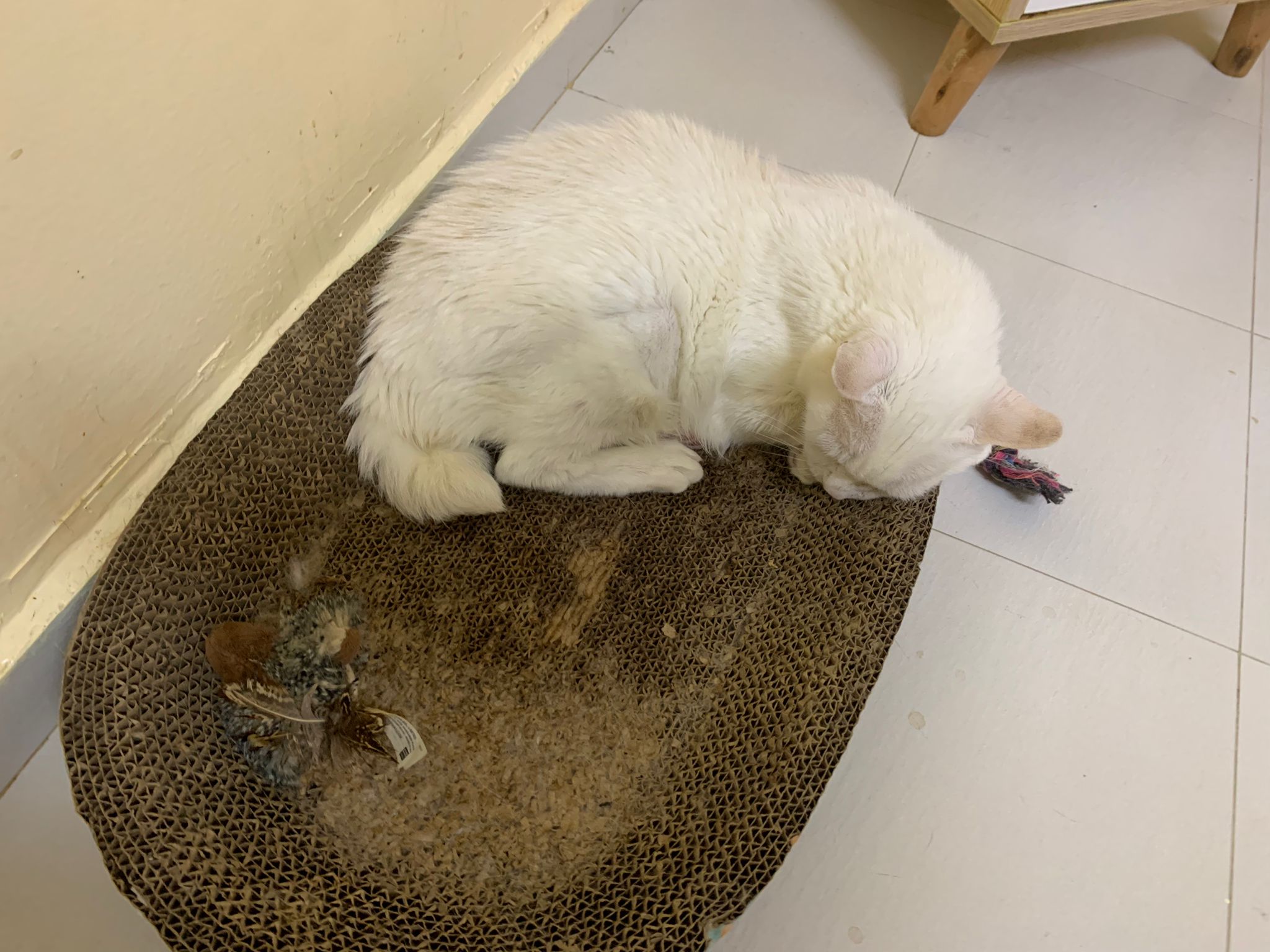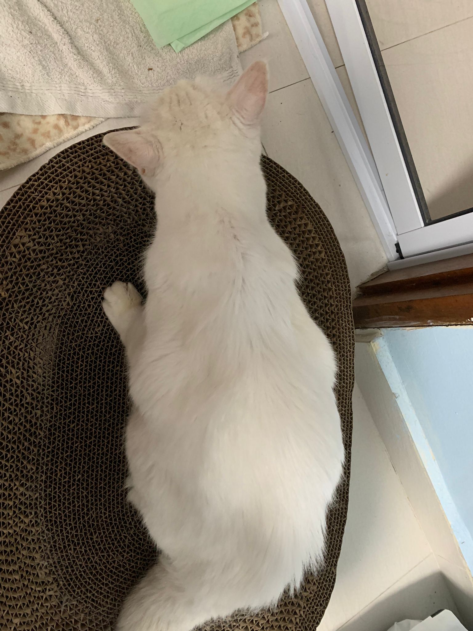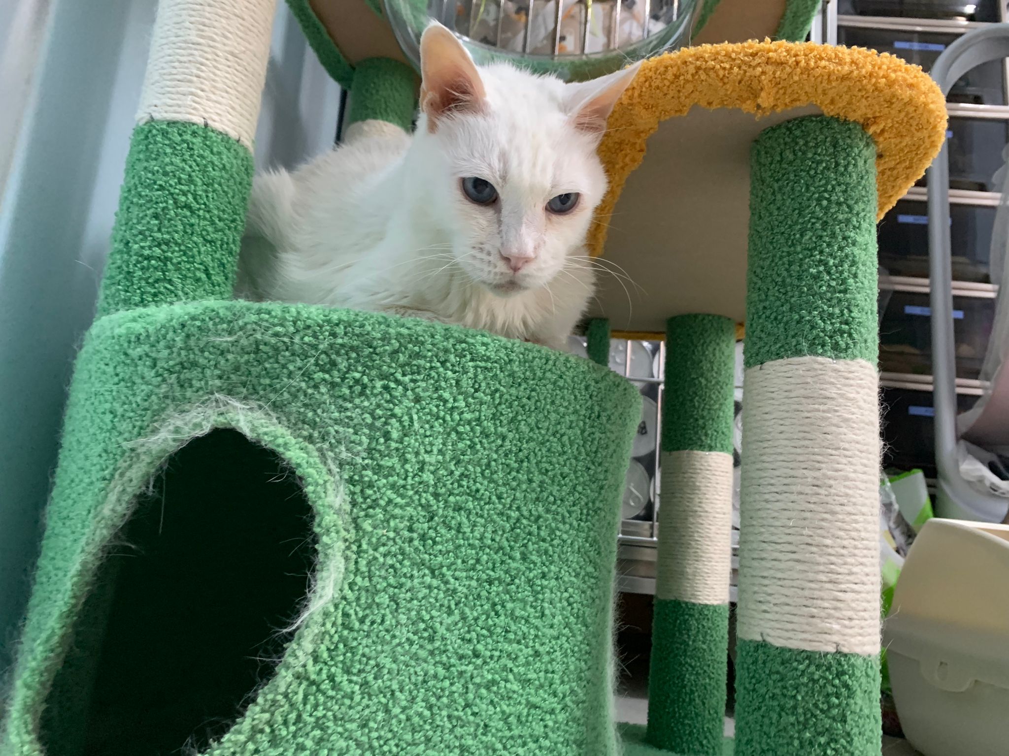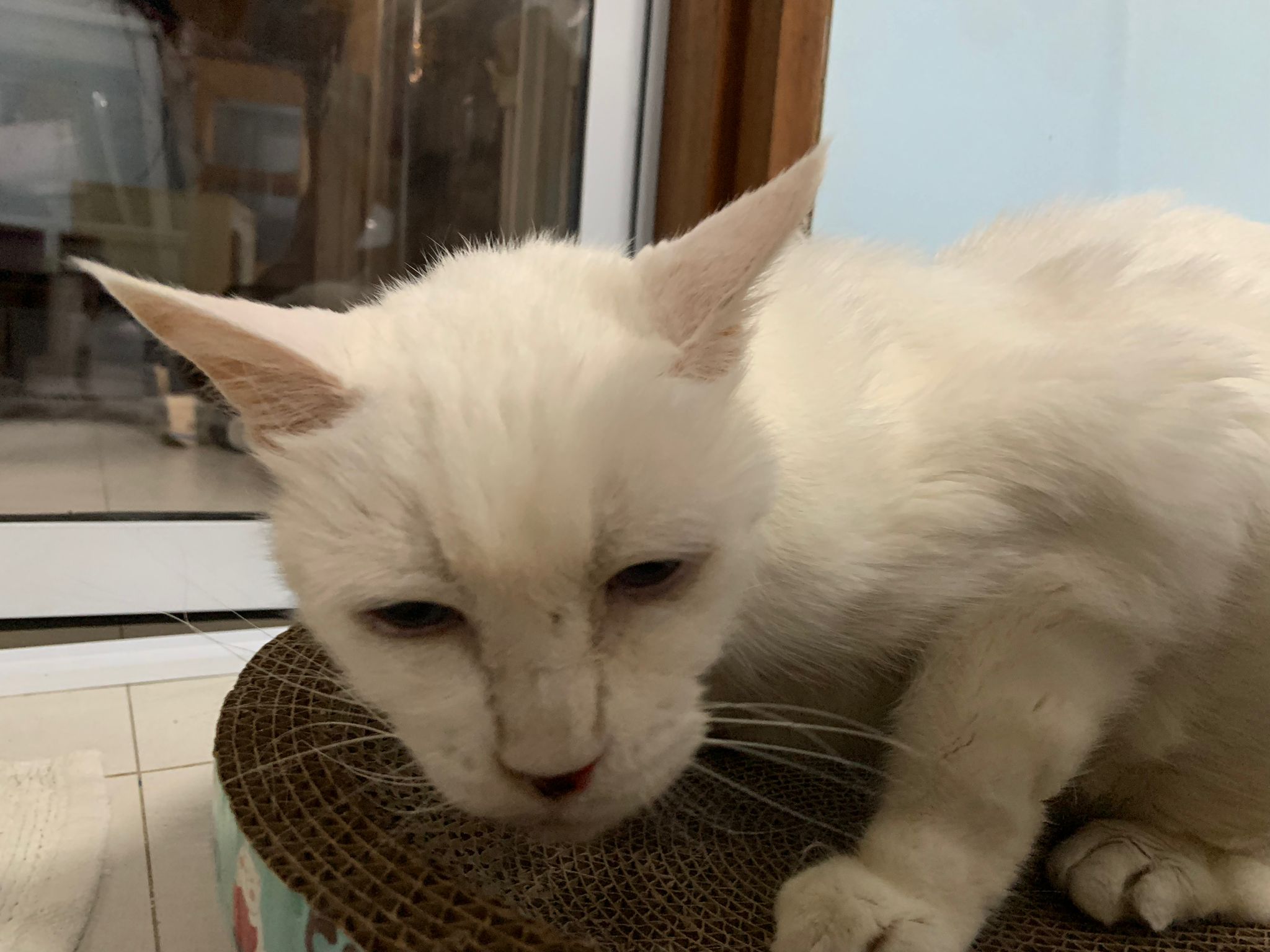 I serve aixia oldie green tuna flavour she ate 80%. She go sit on the oval sb, for scratch it. Not fierce. Laze ard. Didn’t growl not scare. Got lie down just looking at Xiami and don.