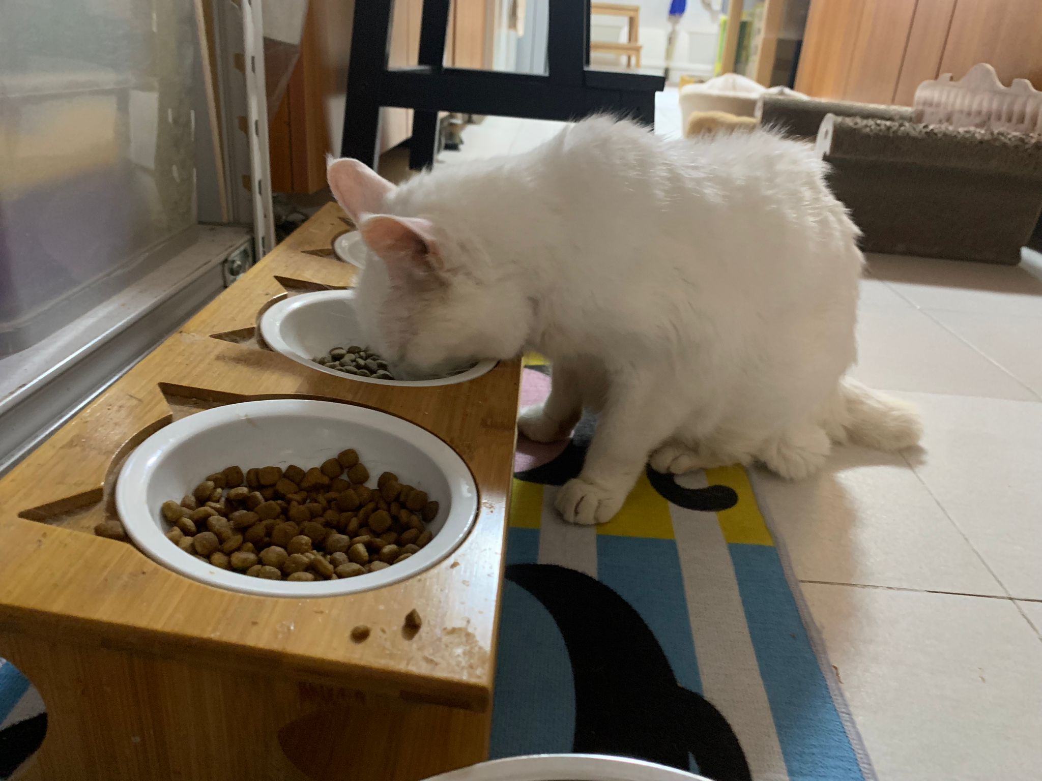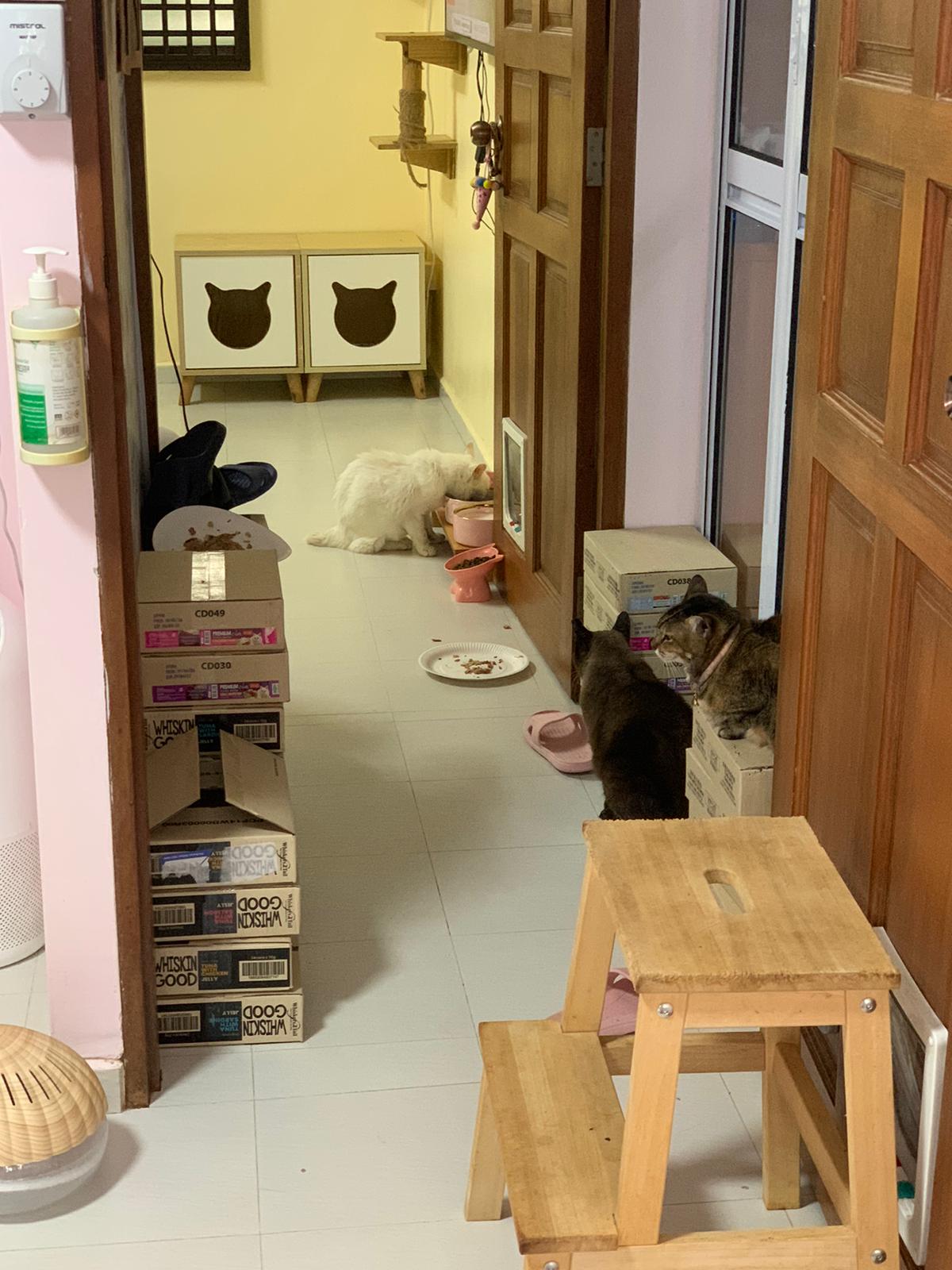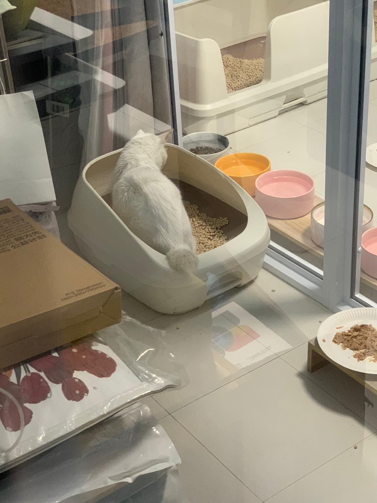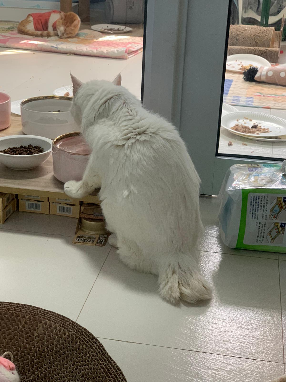 12pm+: we back to 猫房. She enter her room. She go straight to the kibble bowl i prepare just now (RC indoor). So she also eat other kibble.