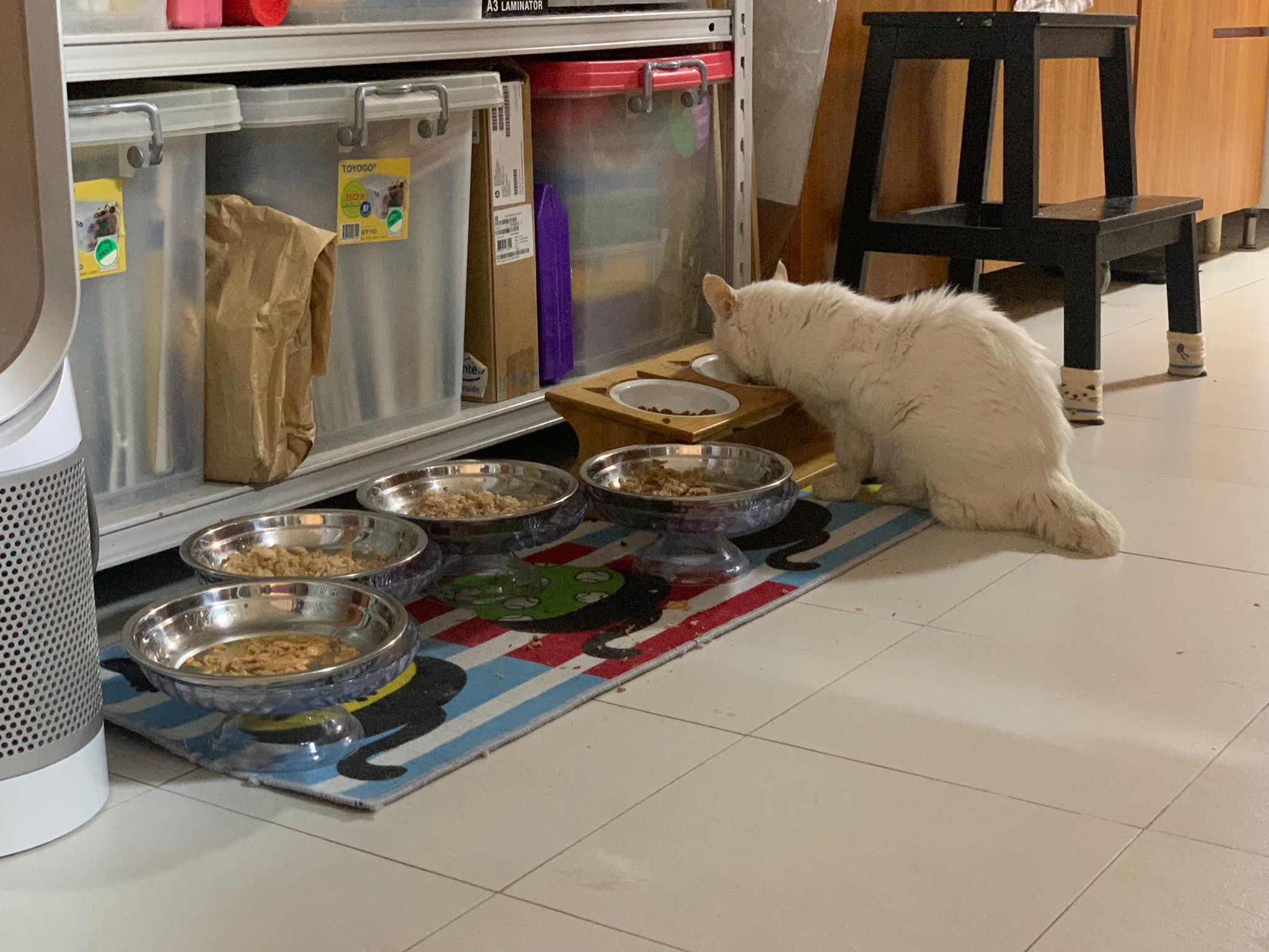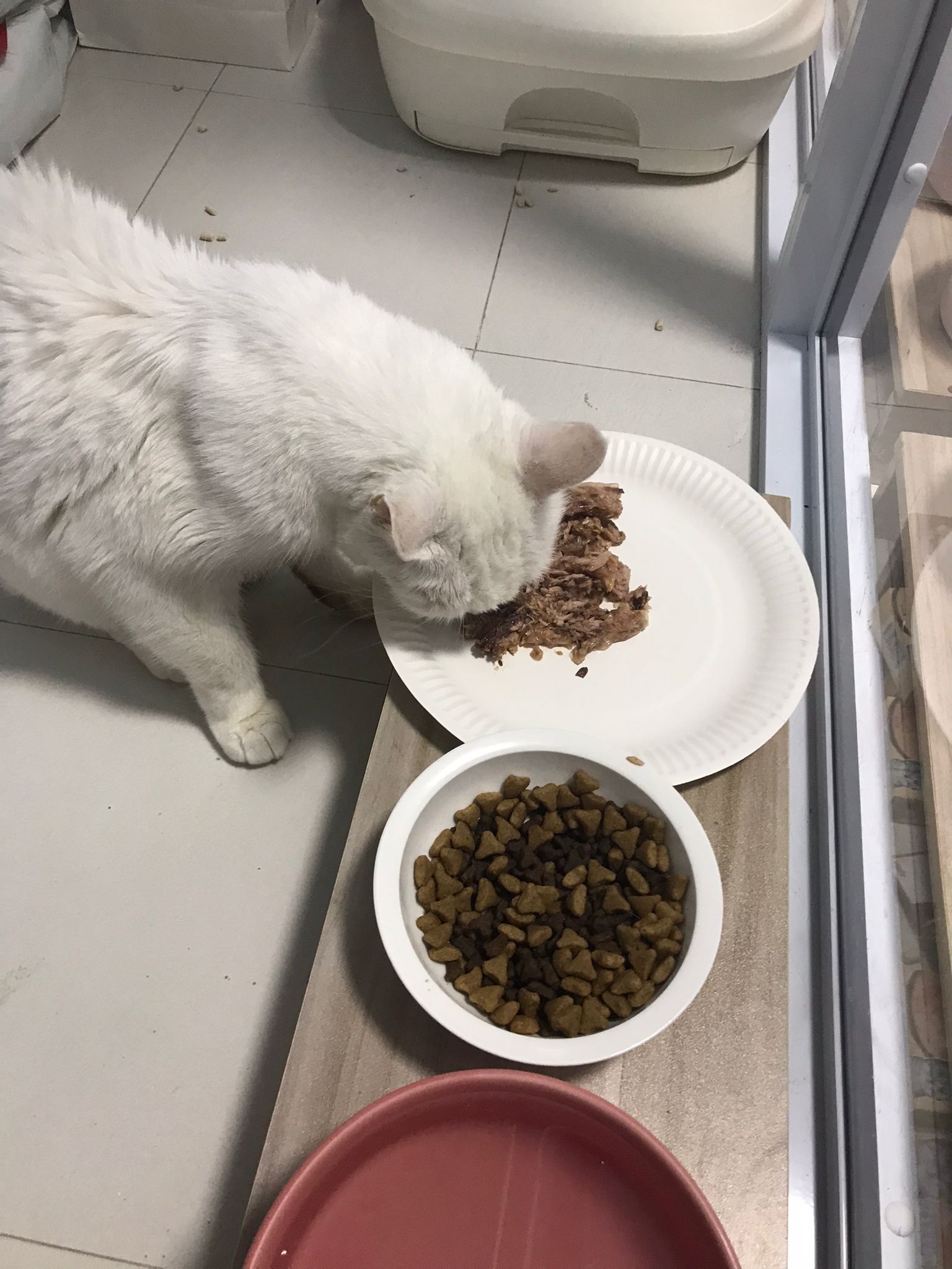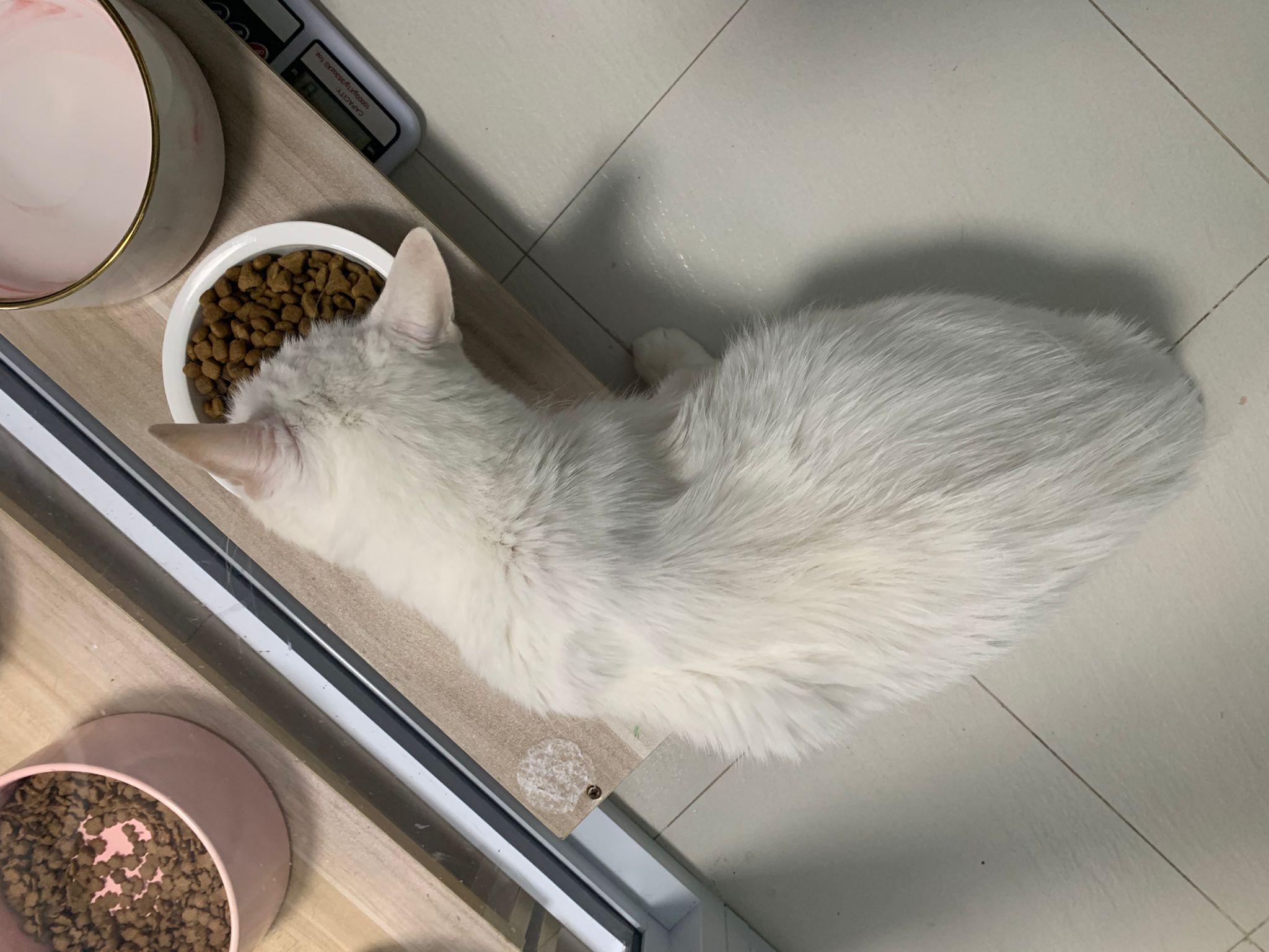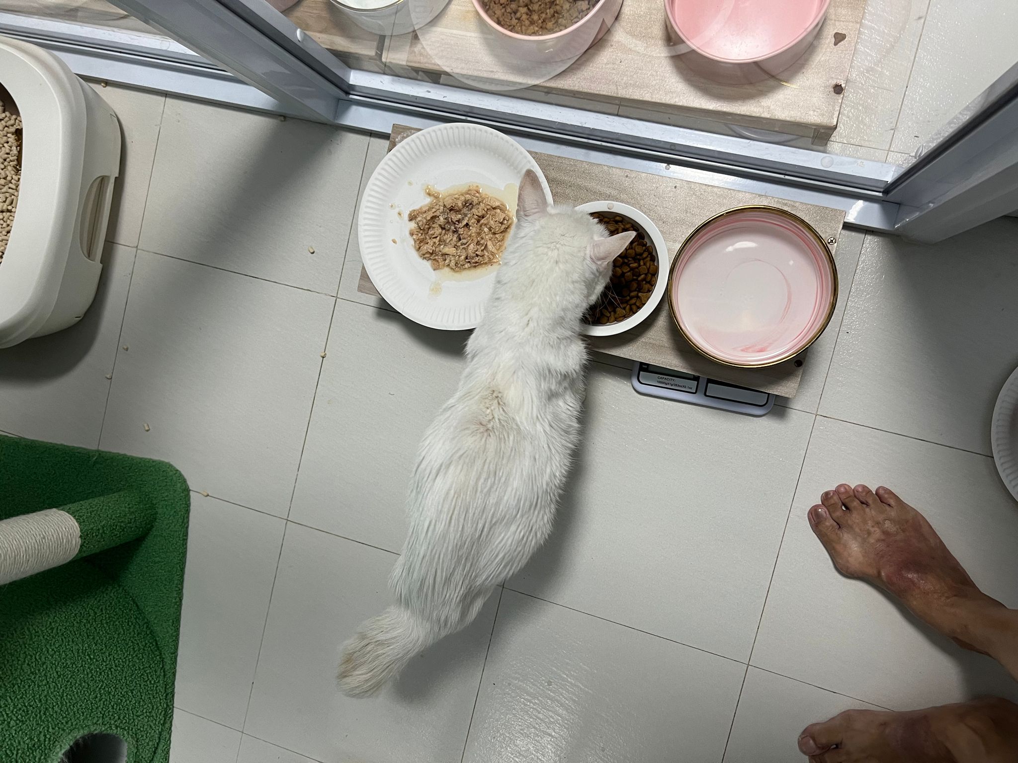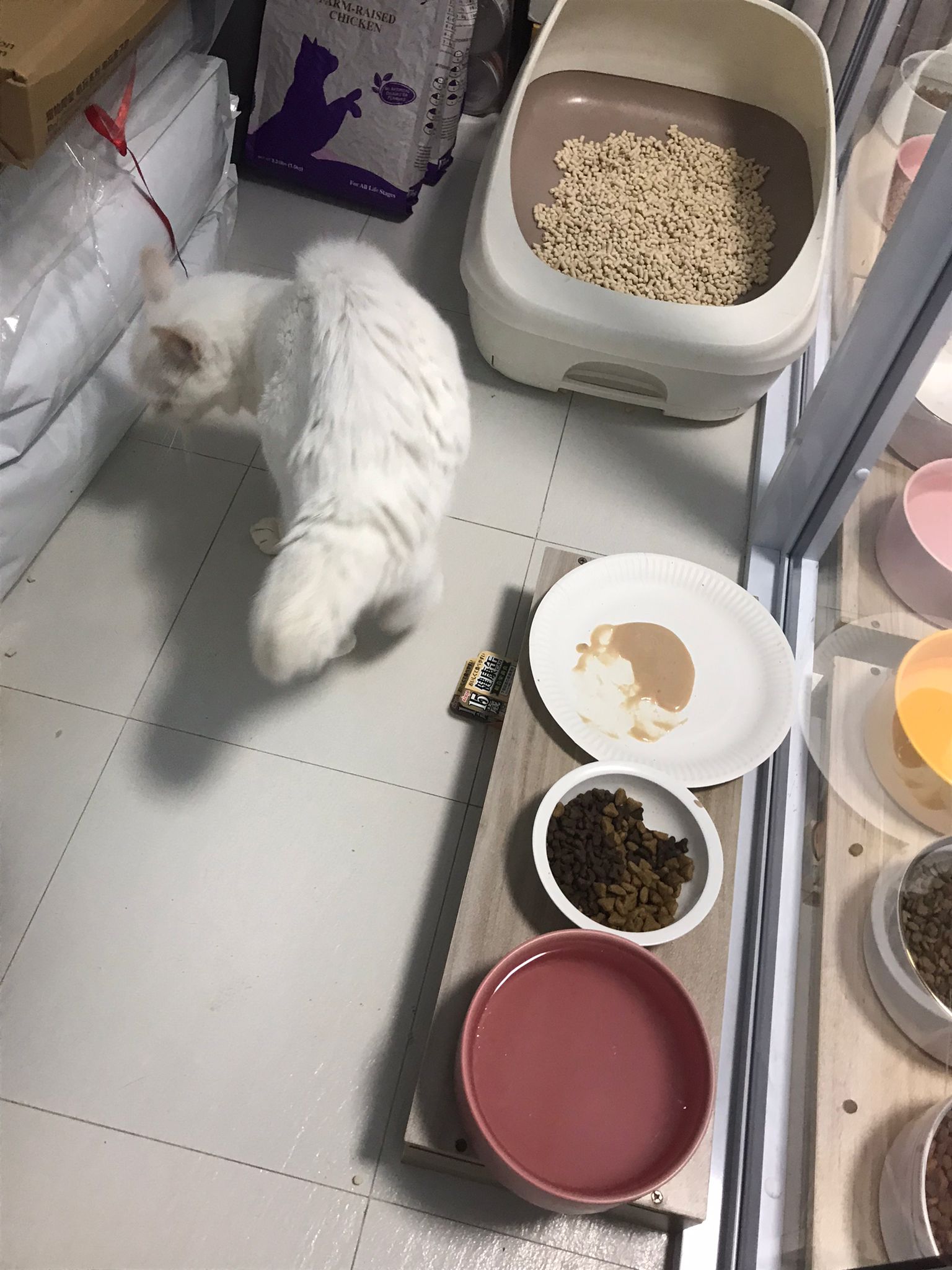 12pm+: we back to 猫房. She enter her room. She go straight to the kibble bowl i prepare just now (RC indoor). So she also eat other kibble.