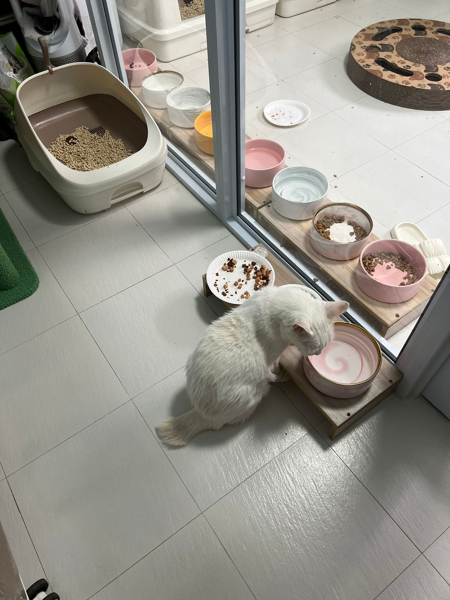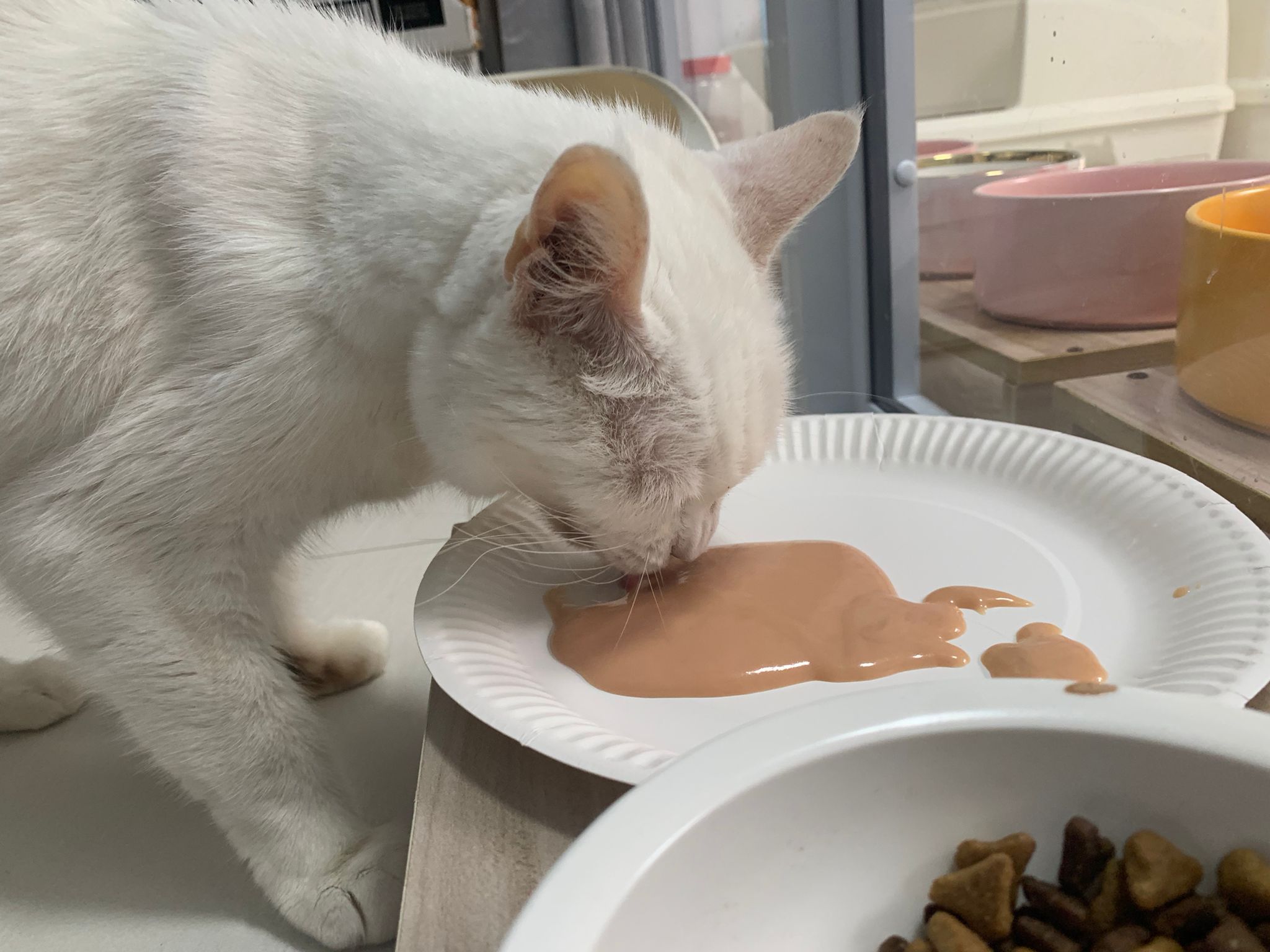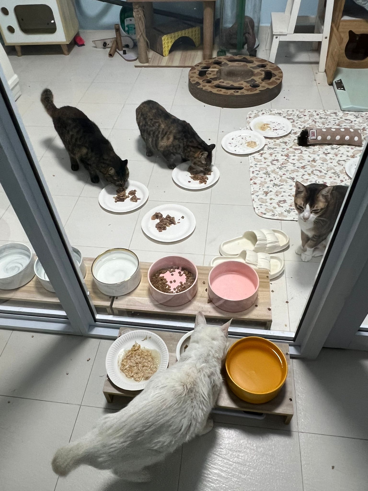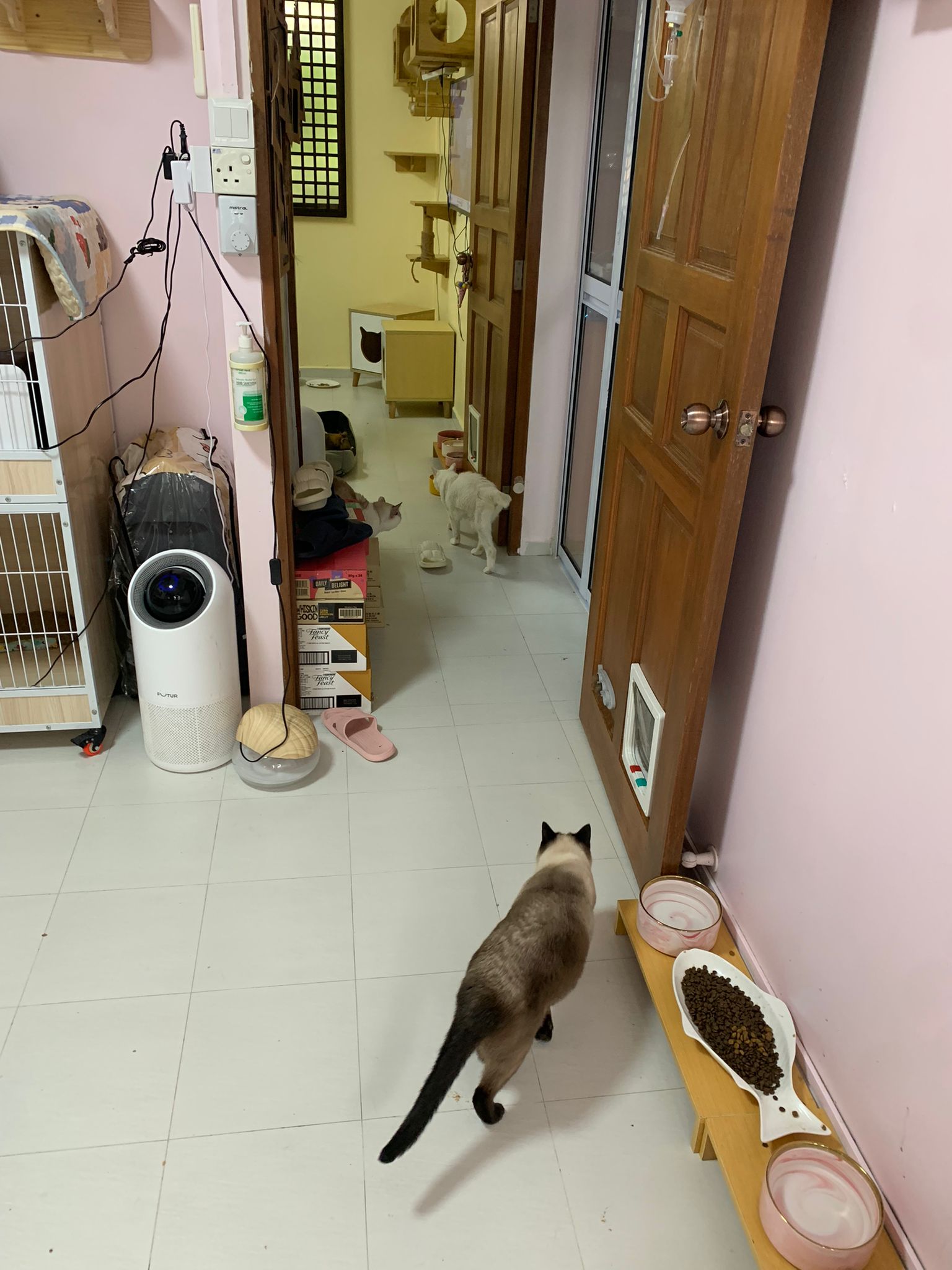 12pm+: we back to 猫房. She enter her room. She go straight to the kibble bowl i prepare just now (RC indoor). So she also eat other kibble.