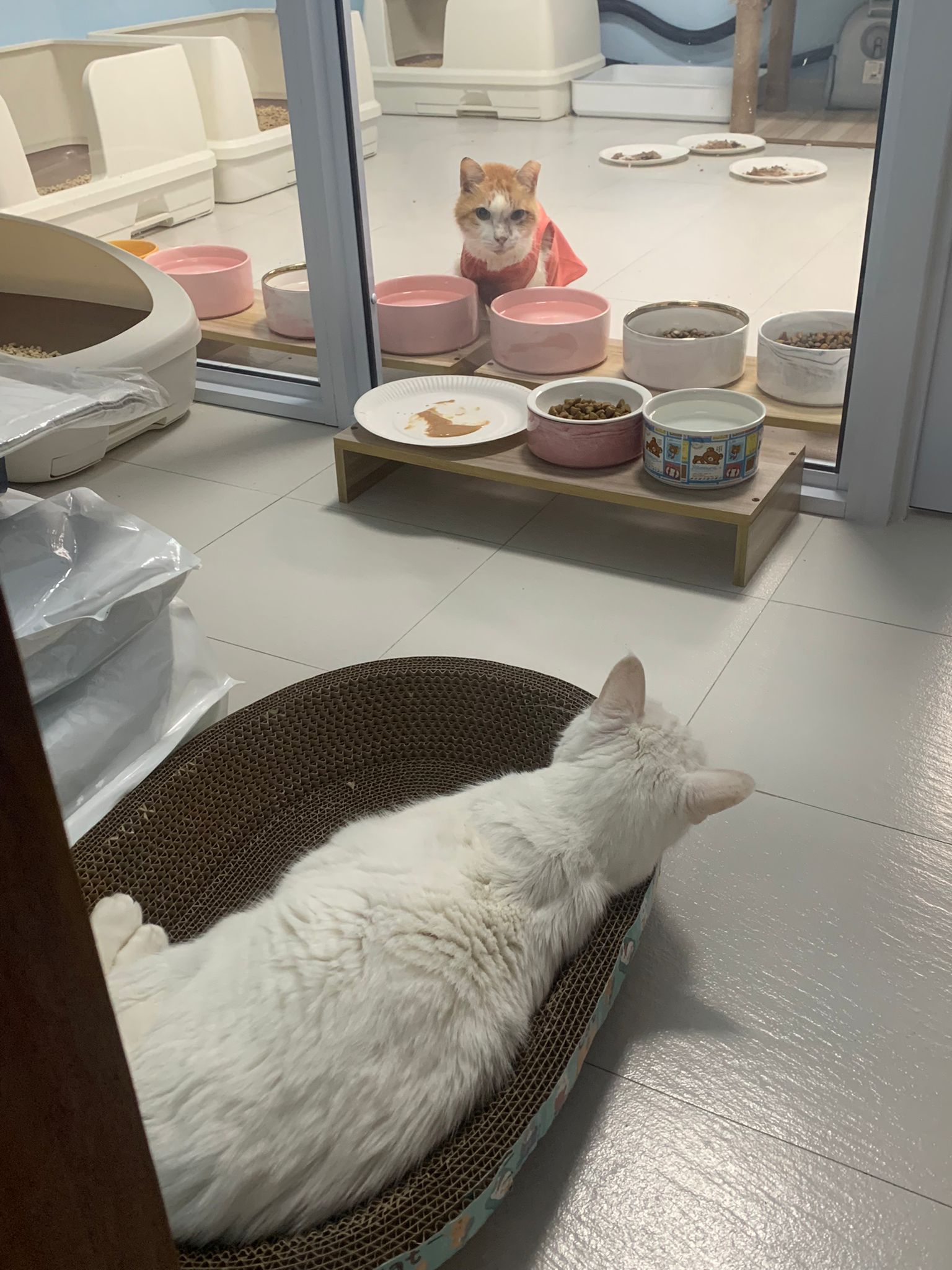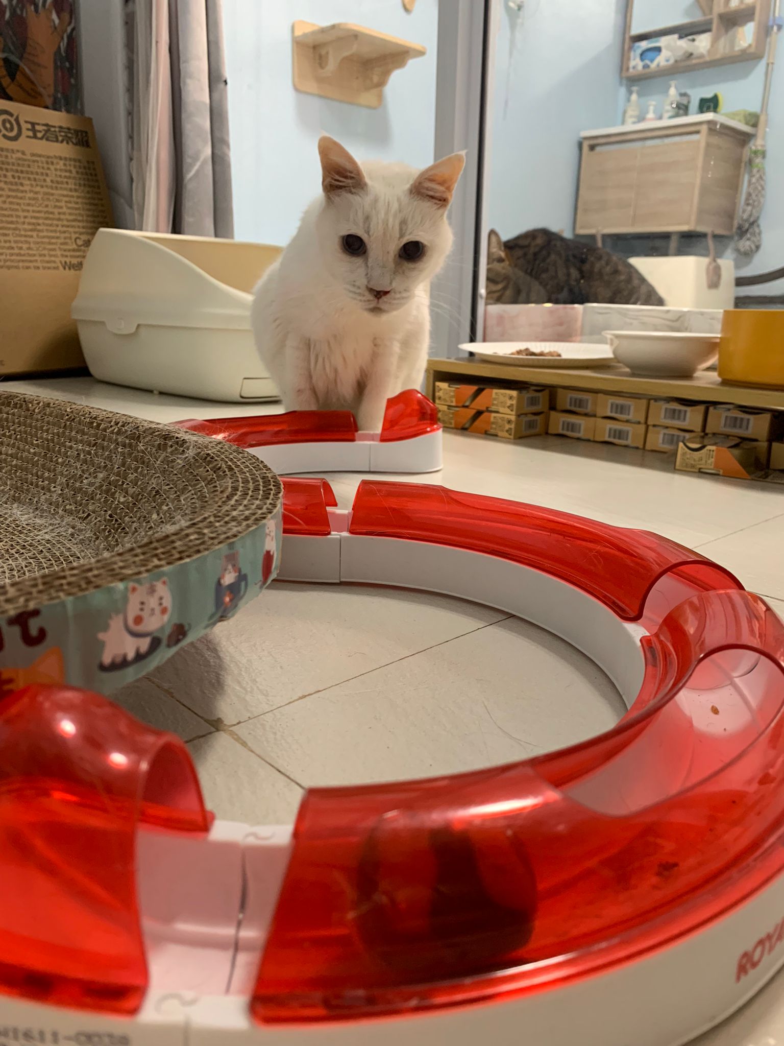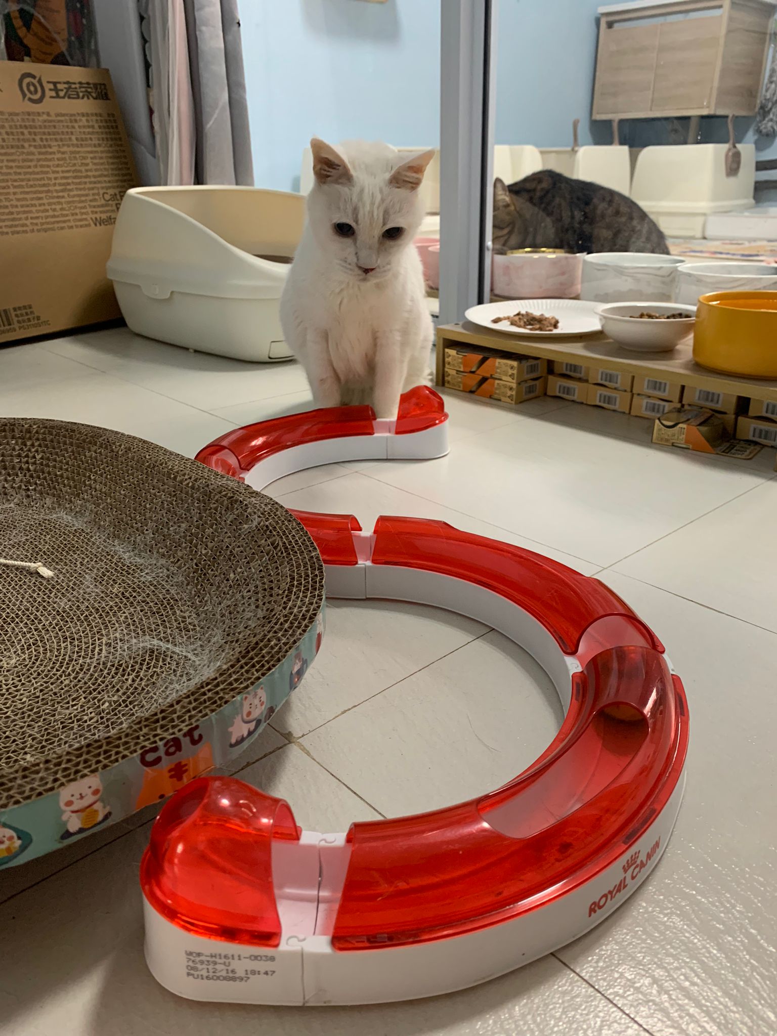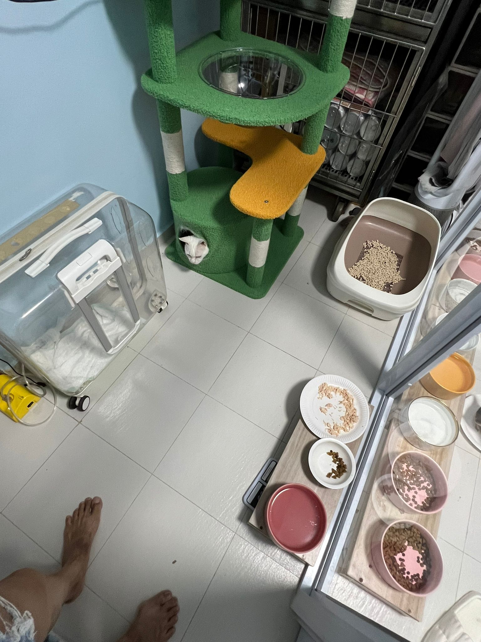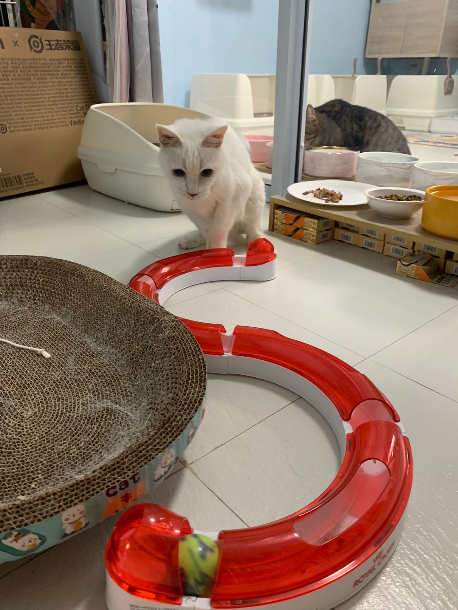 12pm+: we back to 猫房. She enter her room. She go straight to the kibble bowl i prepare just now (RC indoor). So she also eat other kibble.