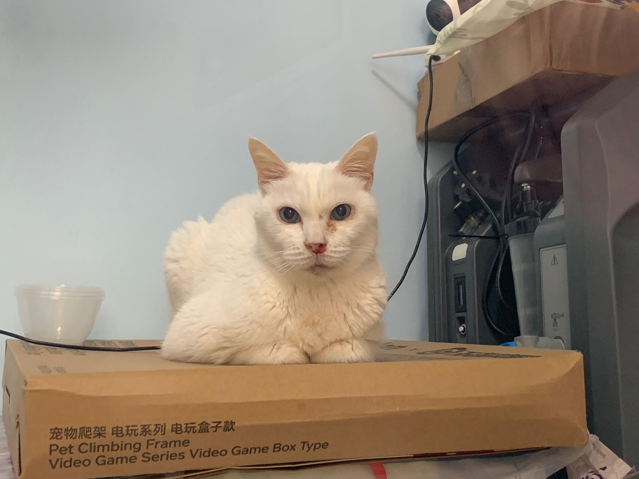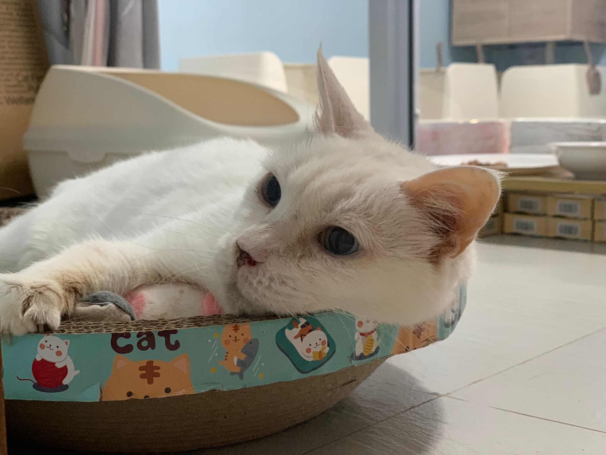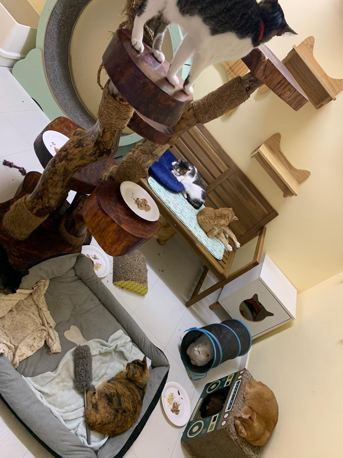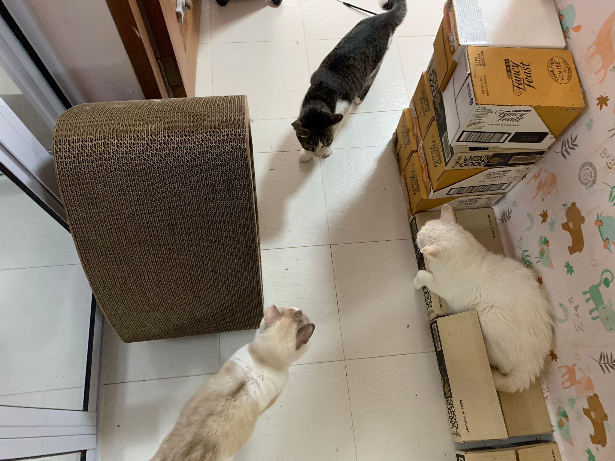 11Am+: after medi done I bring her to 猫房 excursion. She really don’t want leh. What happen. A but troubled, she wanna be alone? But then she go play the ctn box w the rest, she wonder why everyone want to climb onto this box.