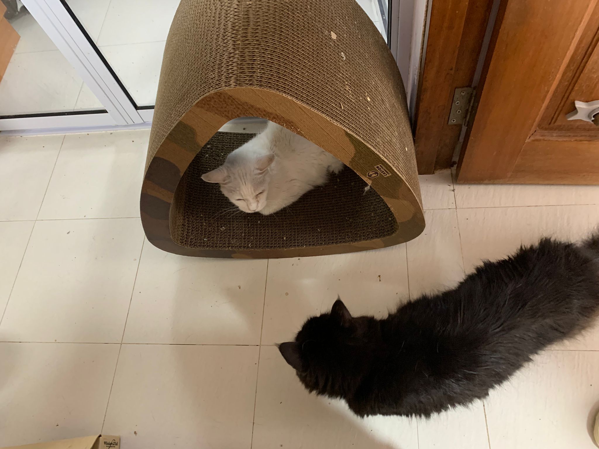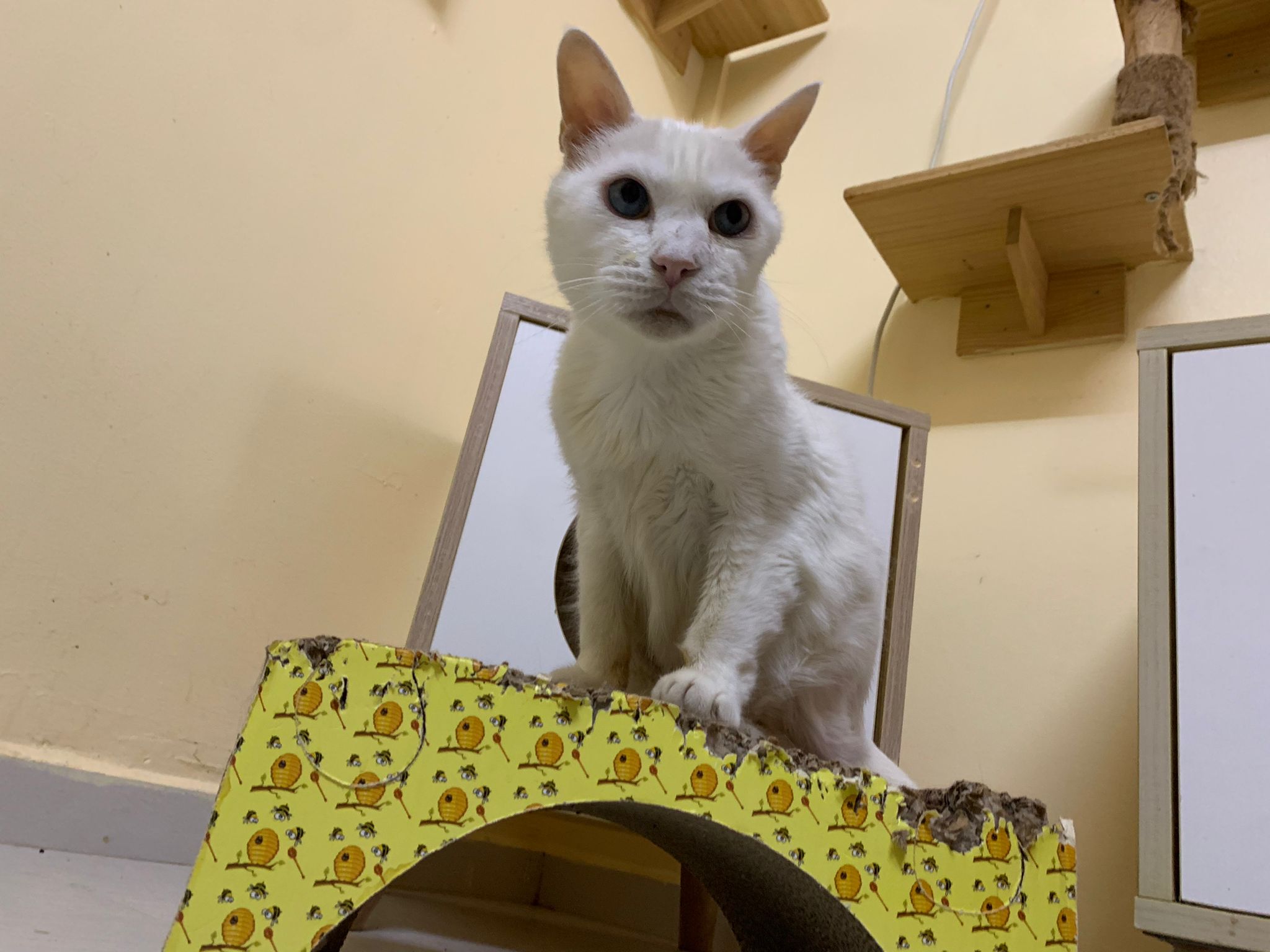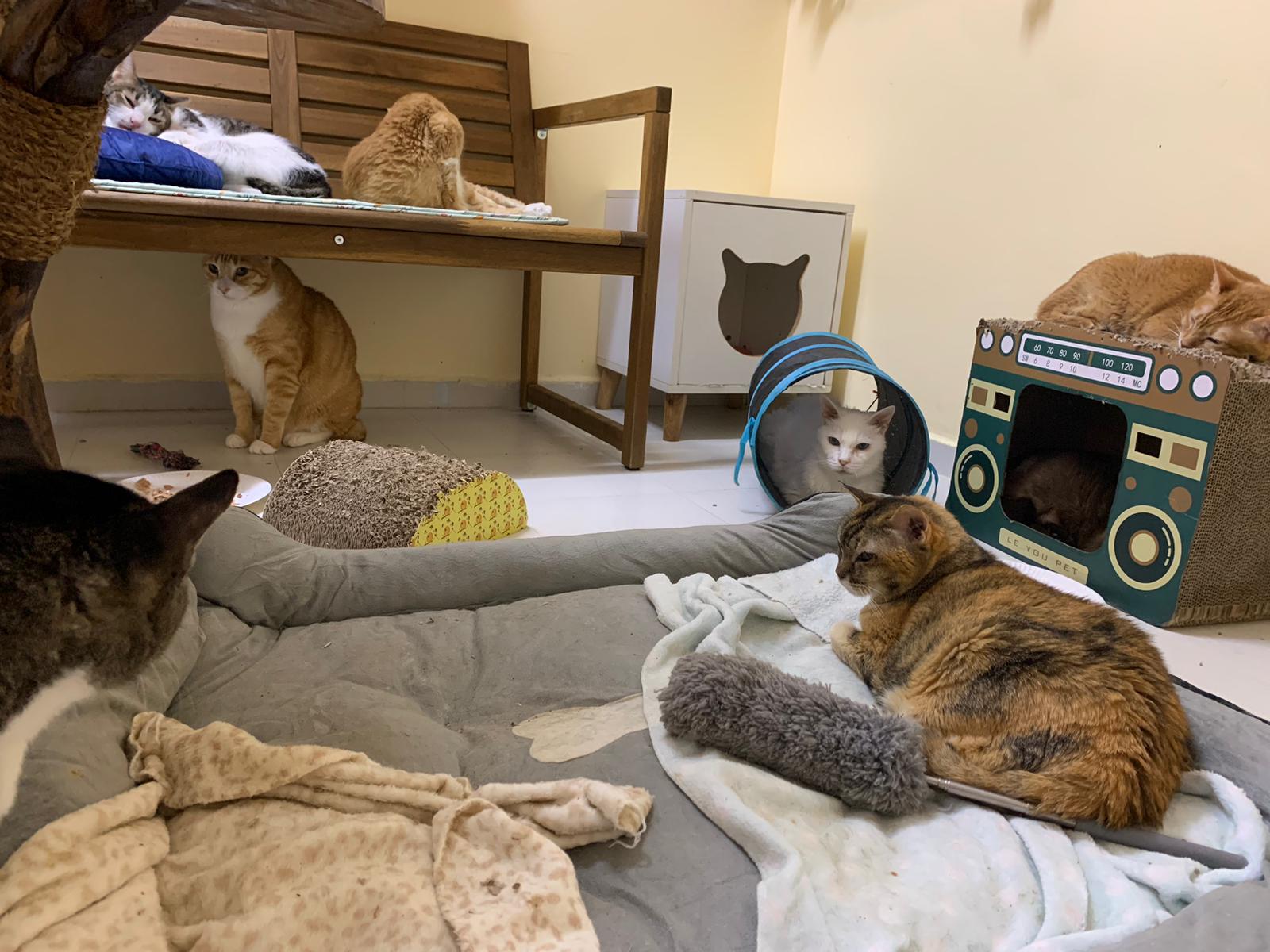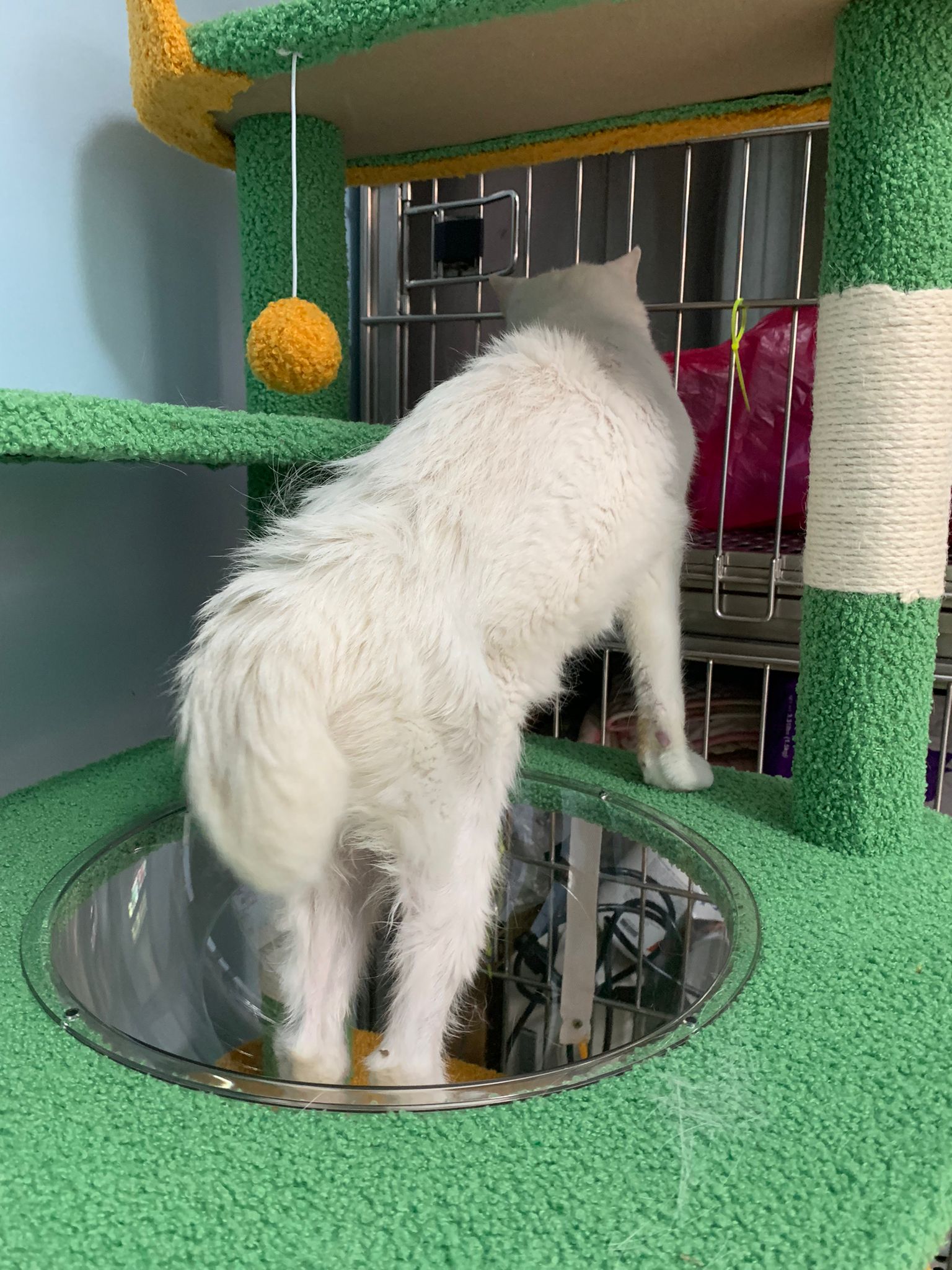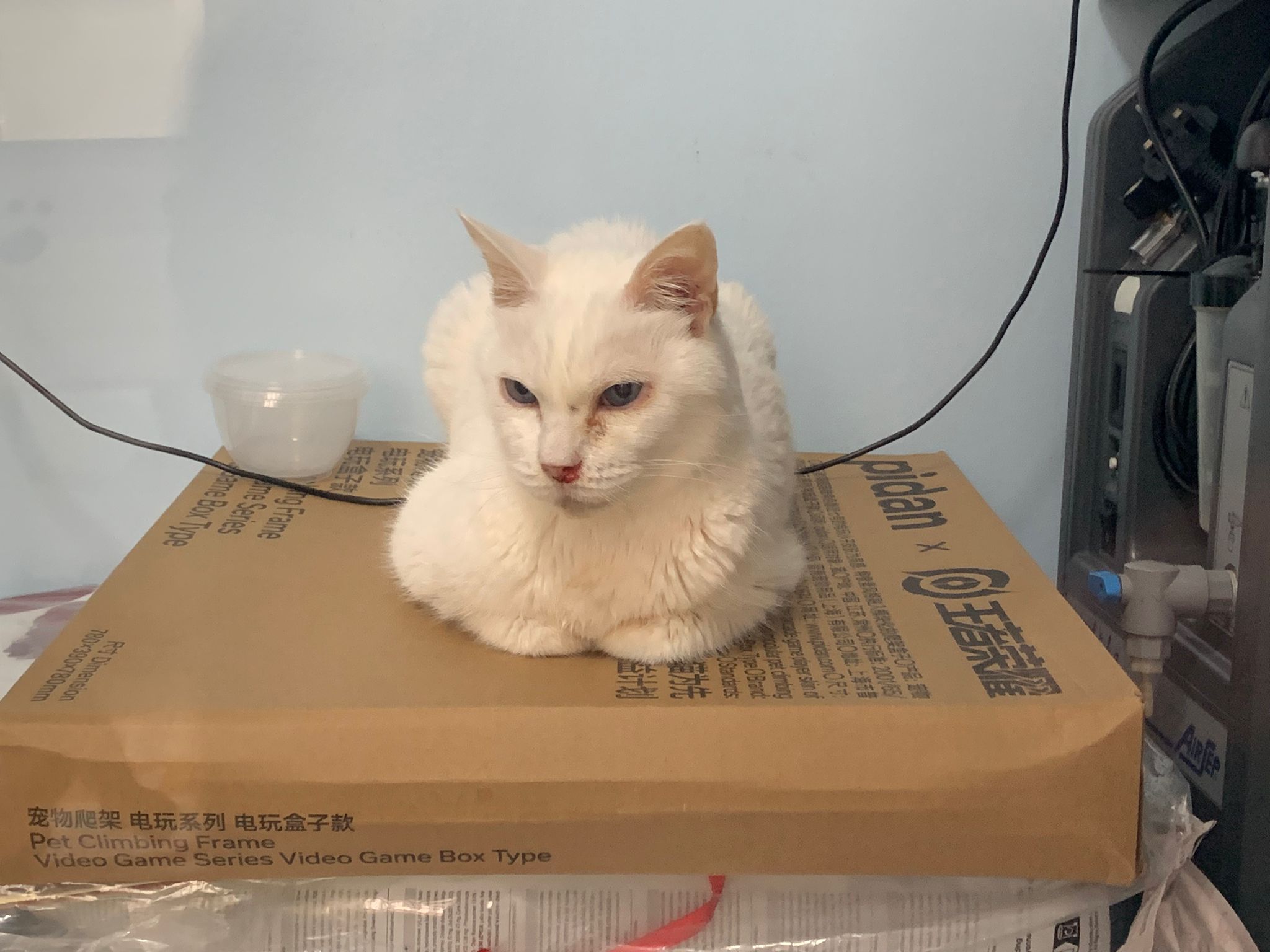 11Am+: after medi done I bring her to 猫房 excursion. She really don’t want leh. What happen. A but troubled, she wanna be alone? But then she go play the ctn box w the rest, she wonder why everyone want to climb onto this box.