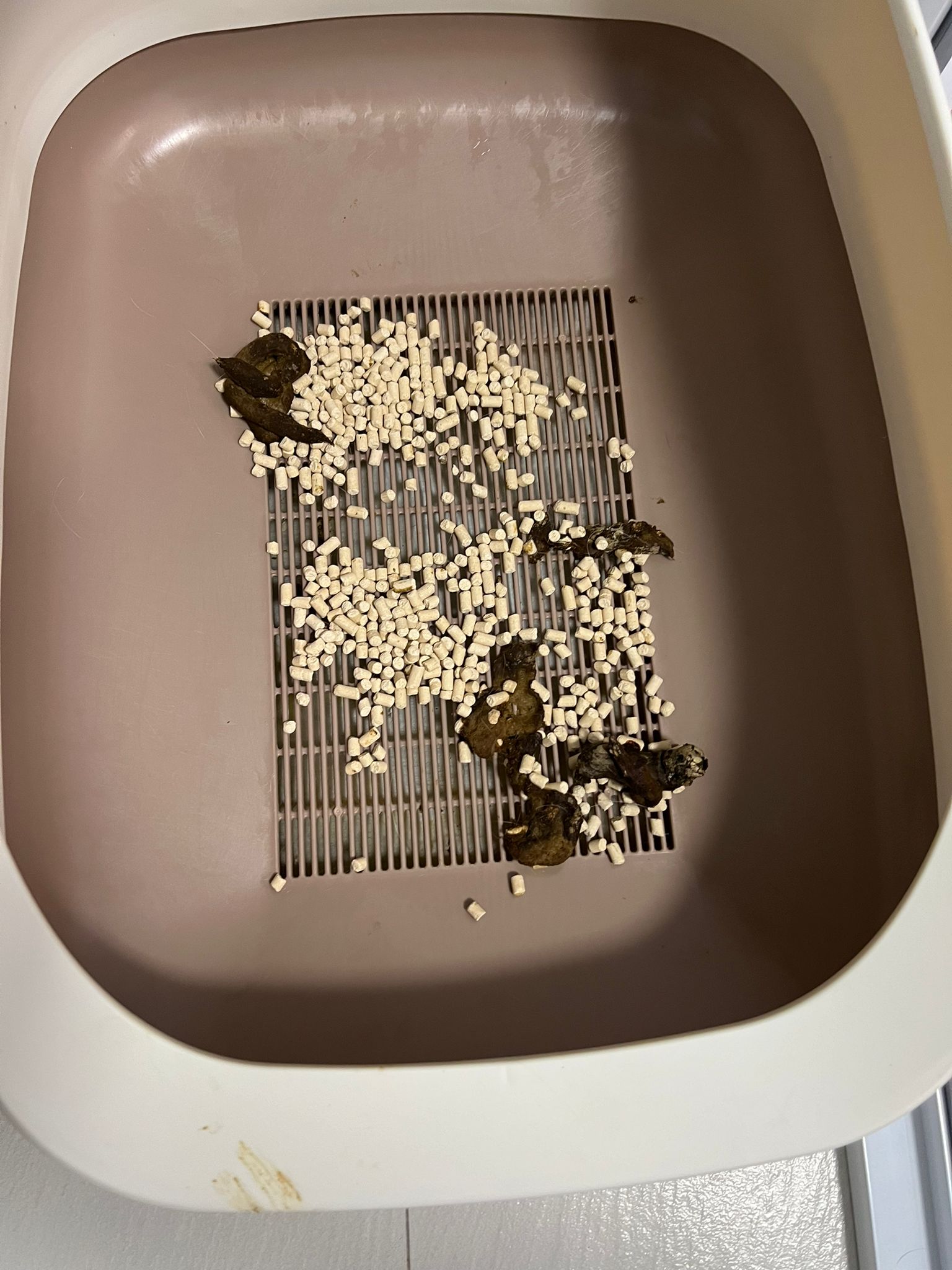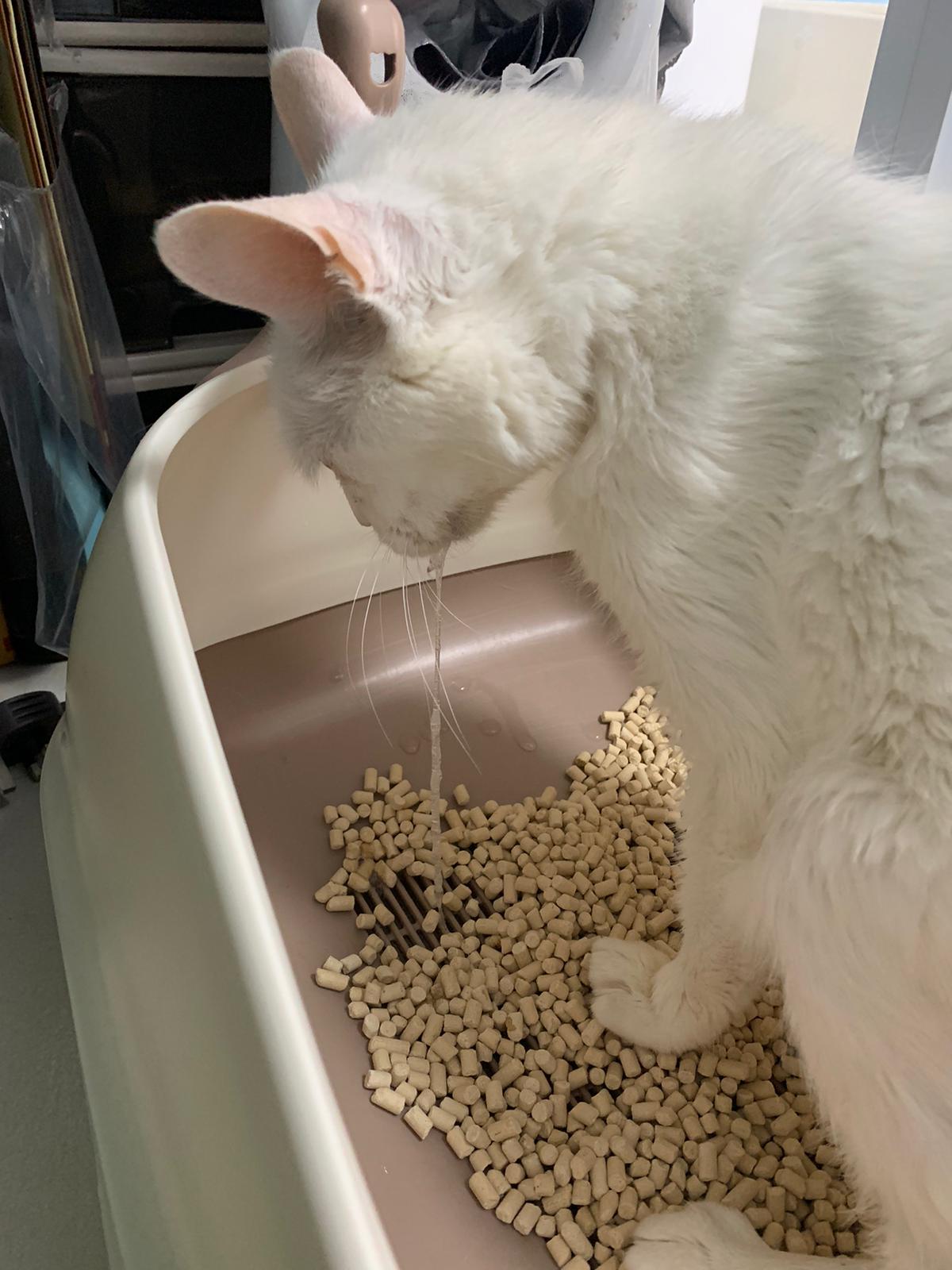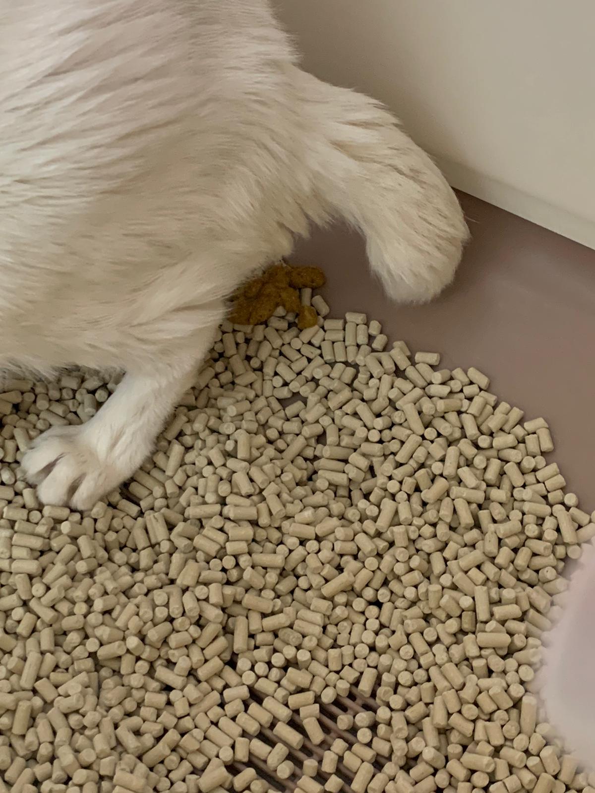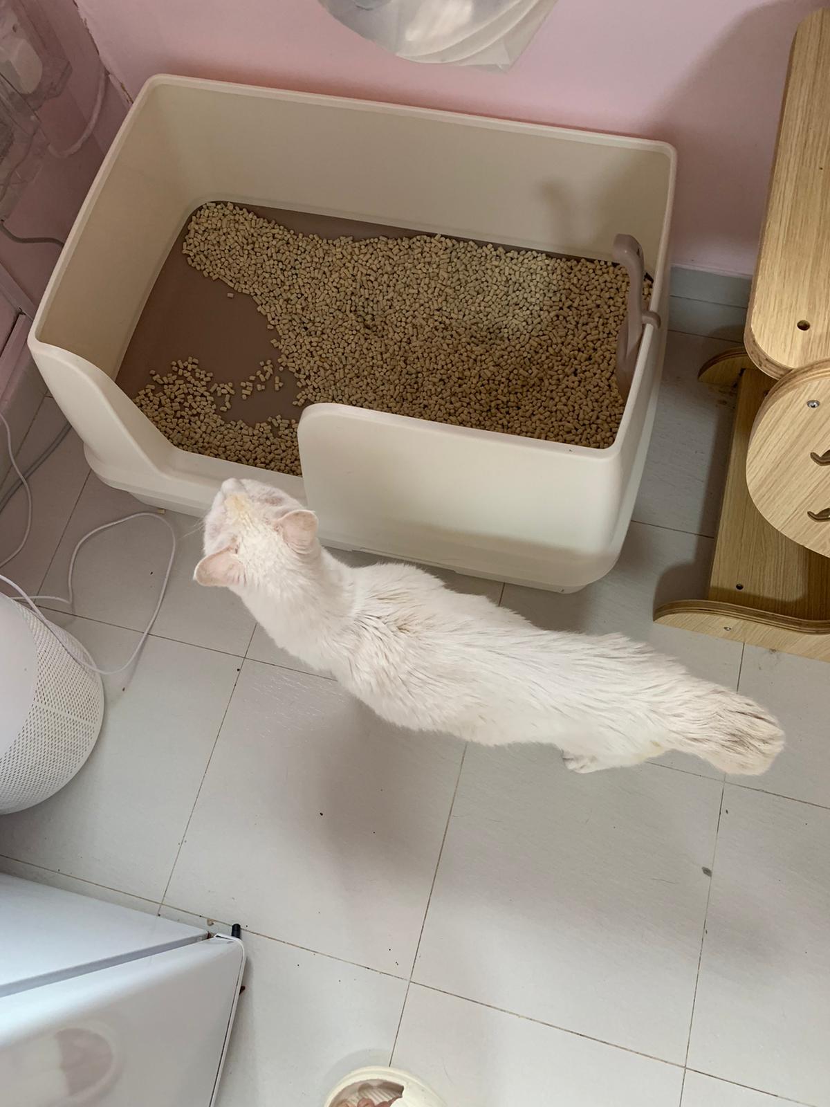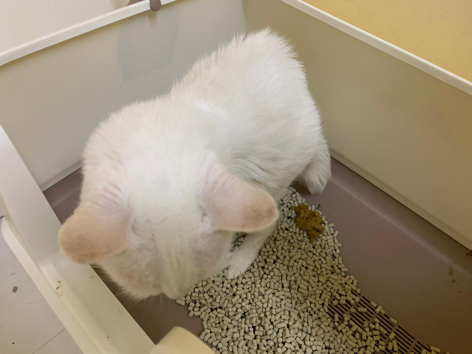 we are friend friend again. She show me she keep going into bin also. Checked pad, only 2 patches.