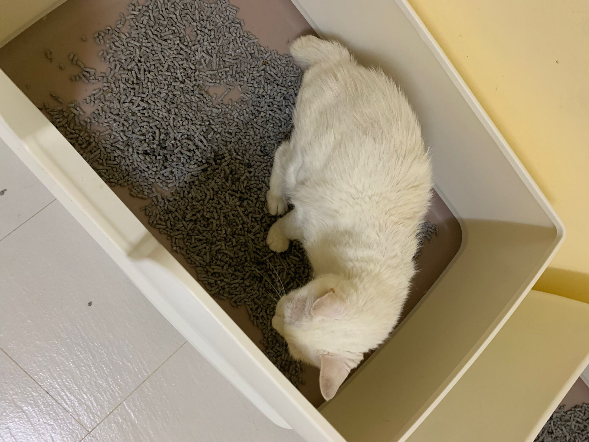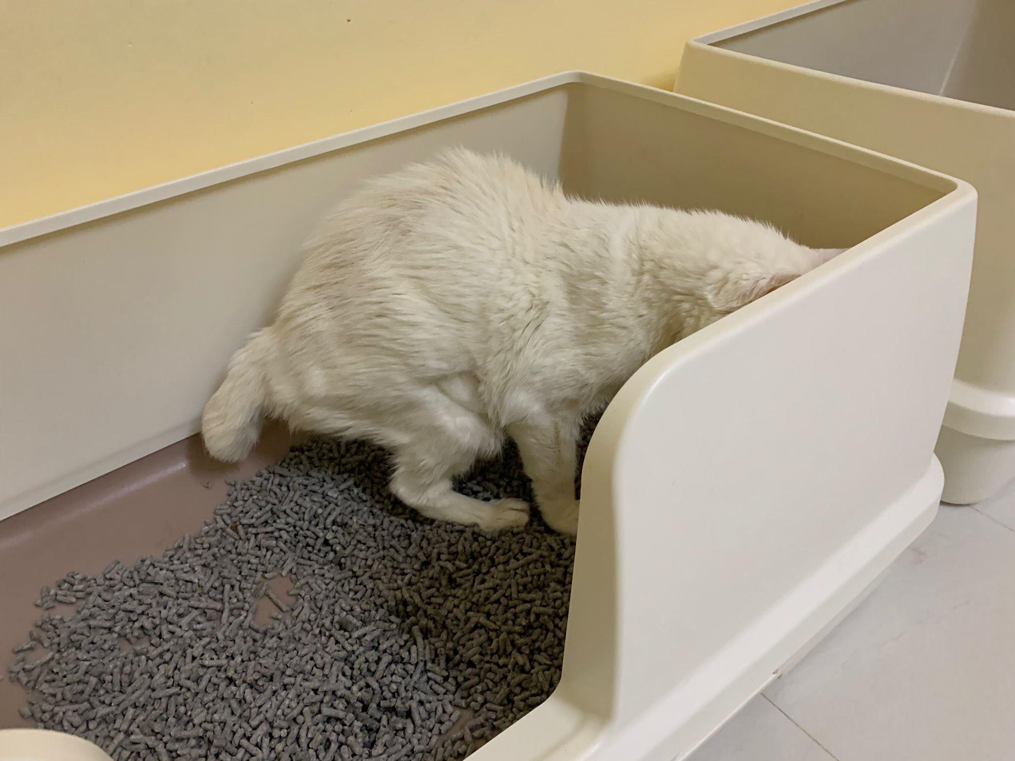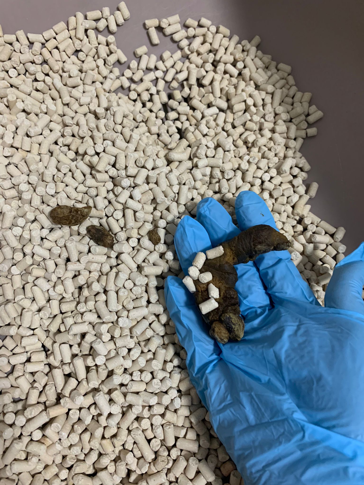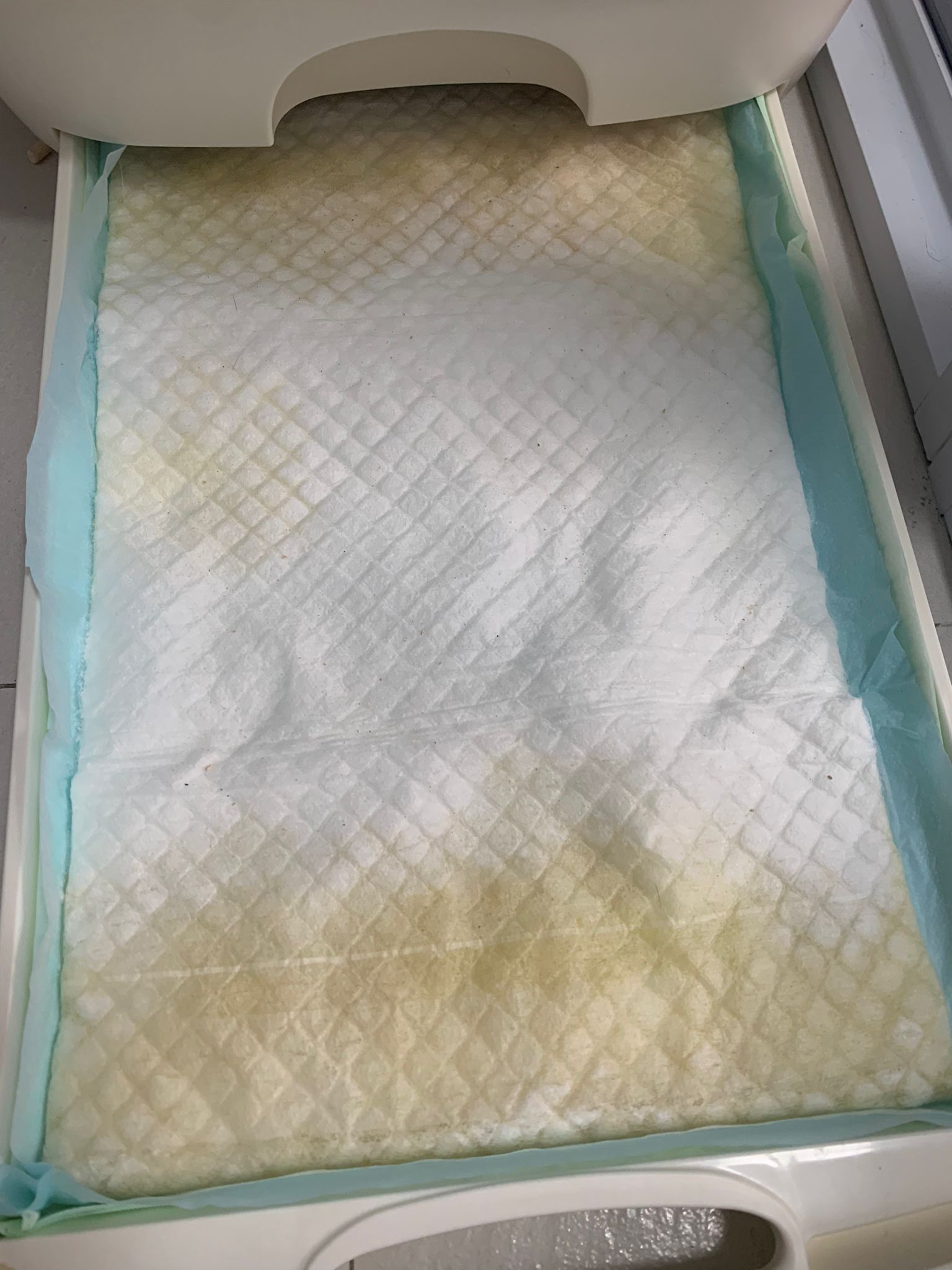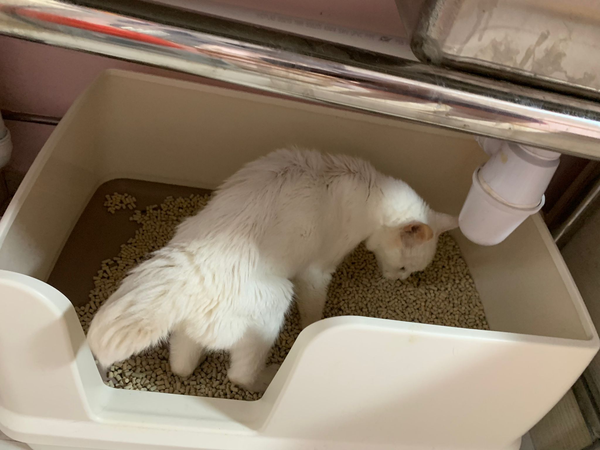 we are friend friend again. She show me she keep going into bin also. Checked pad, only 2 patches.