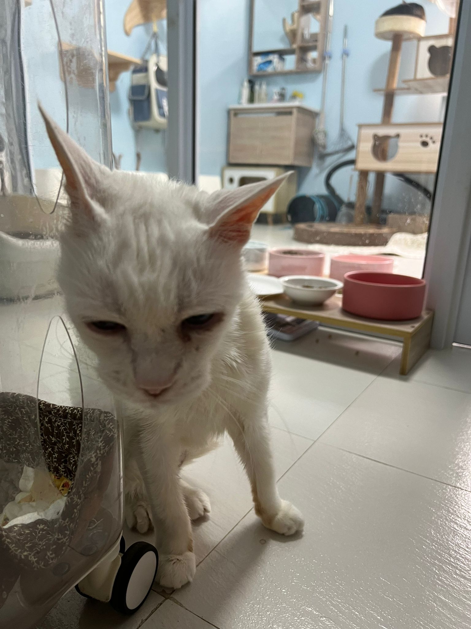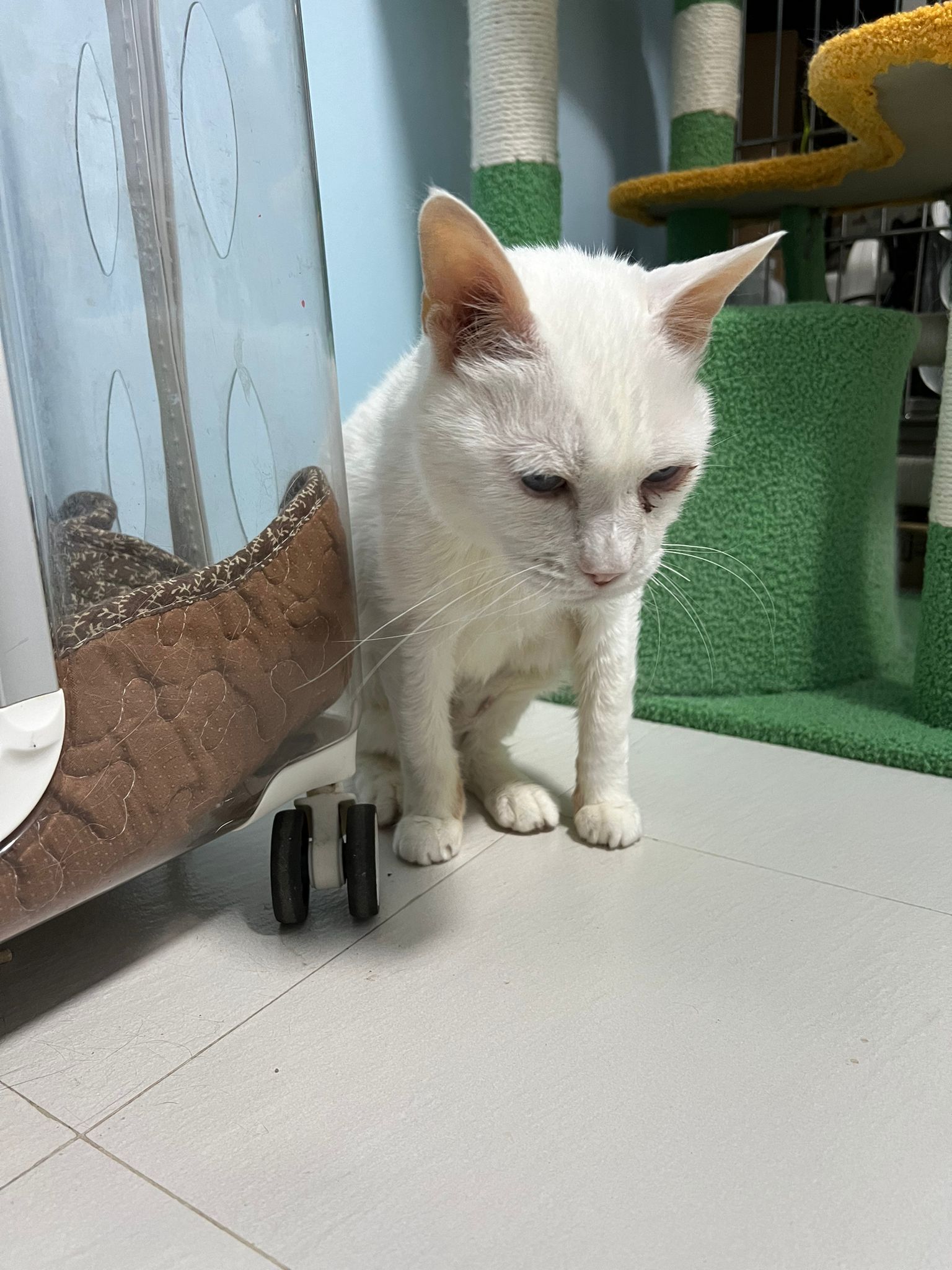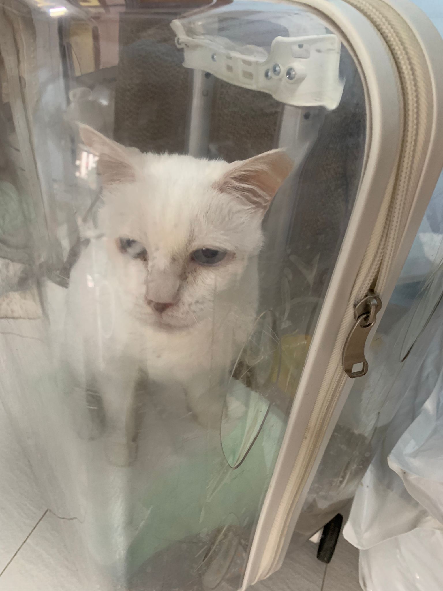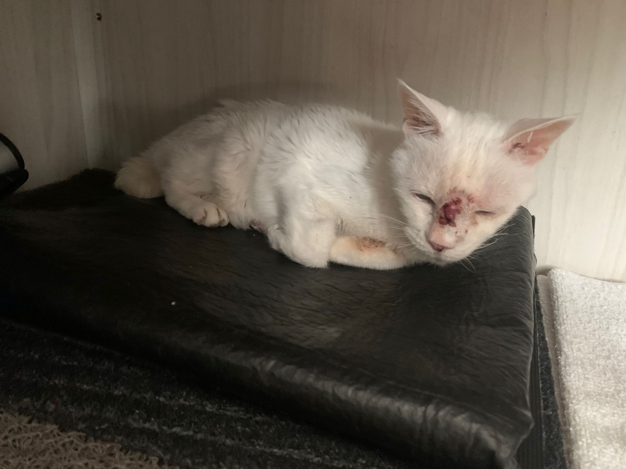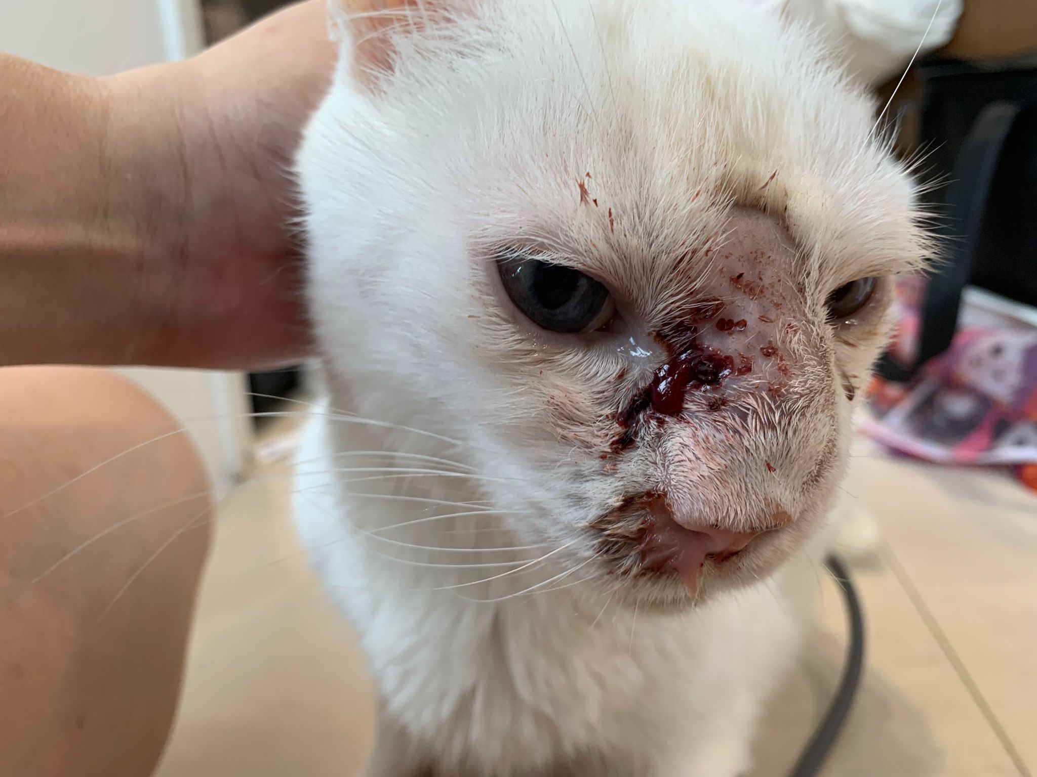 At the clinic, I look into her carrier, like red thread hanging from her left nostril. So much blood come out. Erm will monitor when she start the new treatment plan.