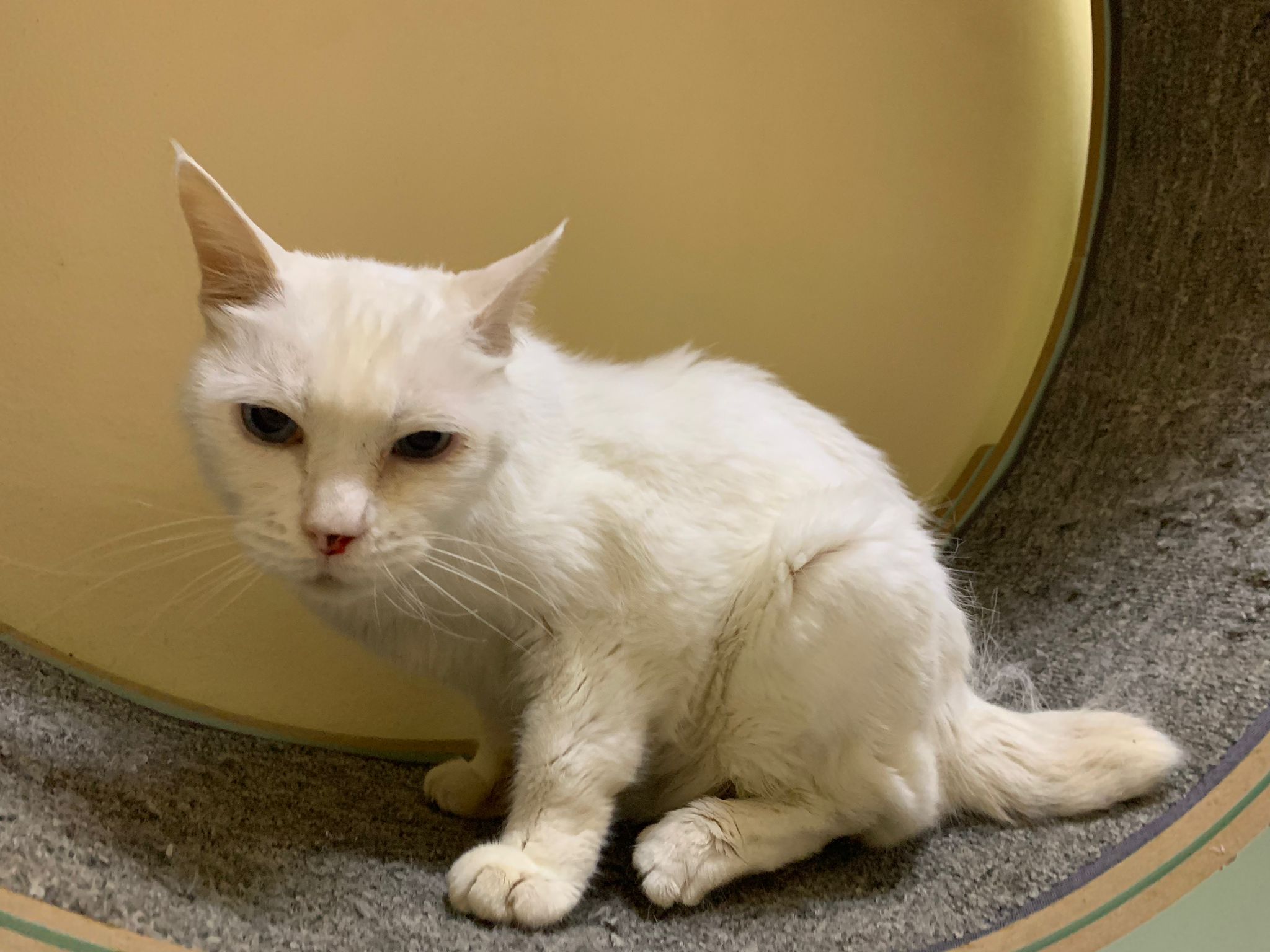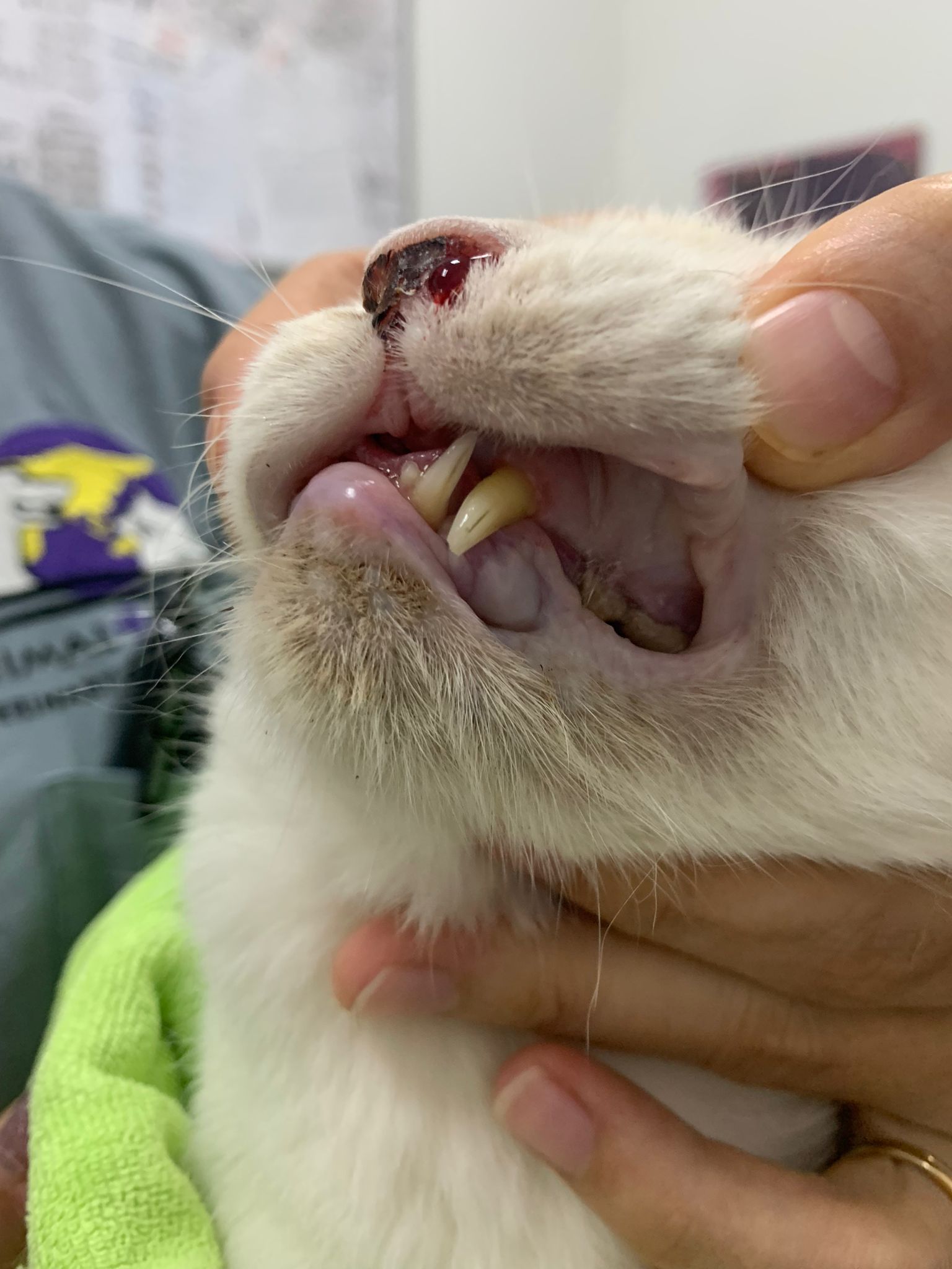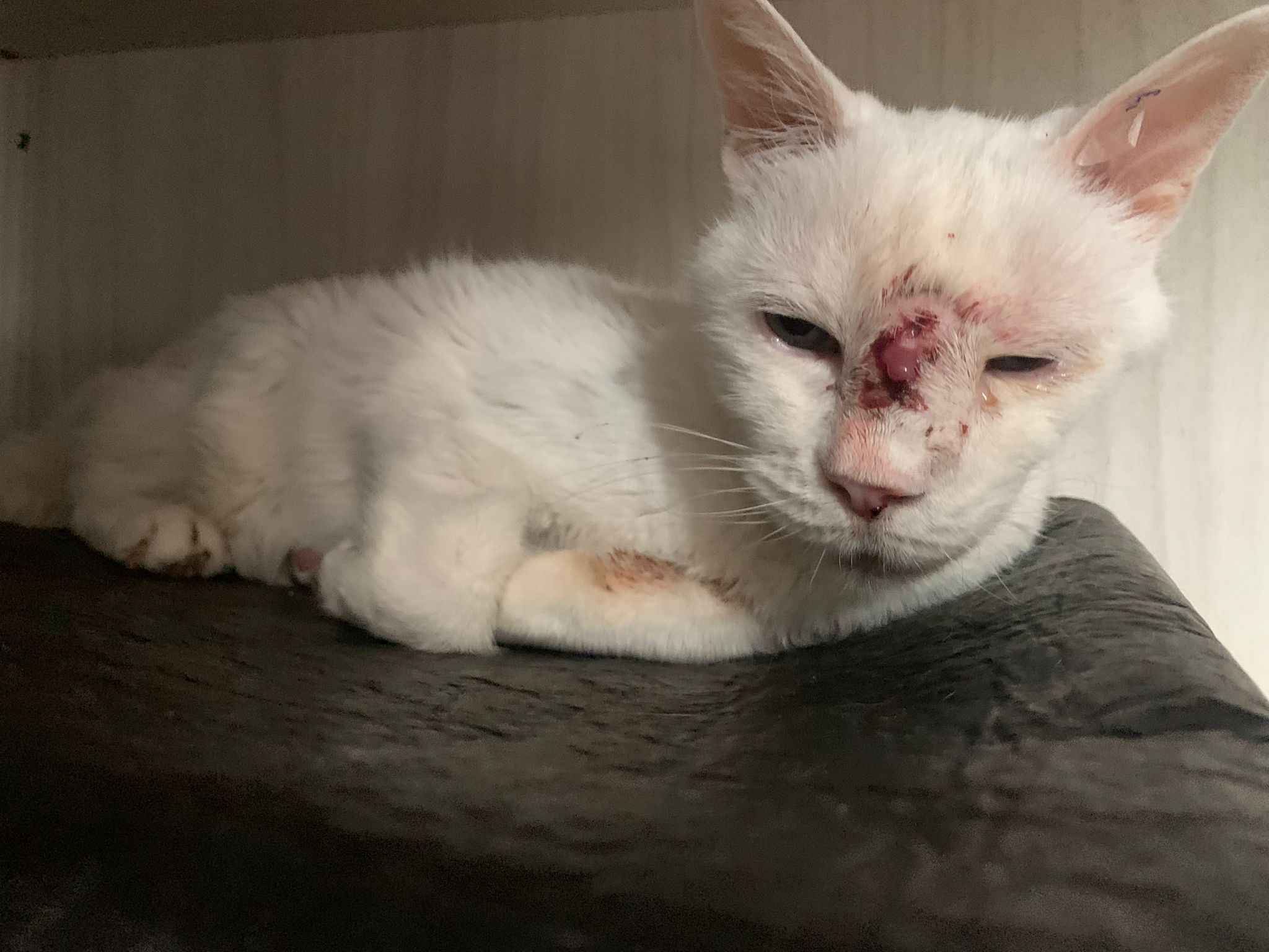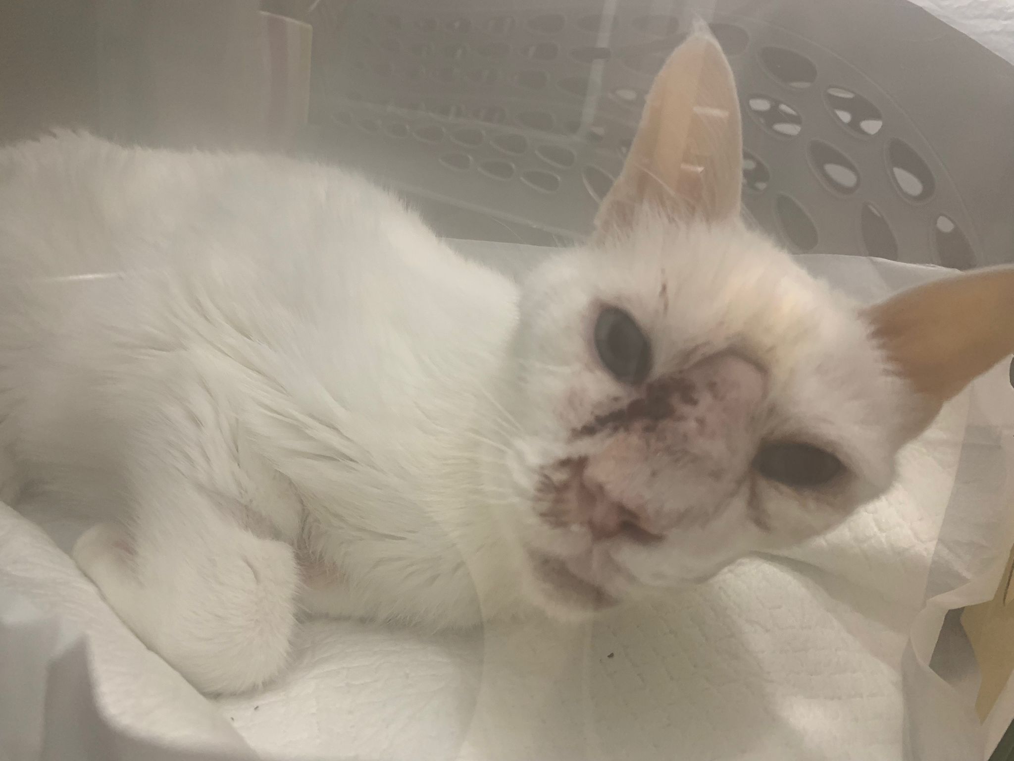 At the clinic, I look into her carrier, like red thread hanging from her left nostril. So much blood come out. Erm will monitor when she start the new treatment plan.