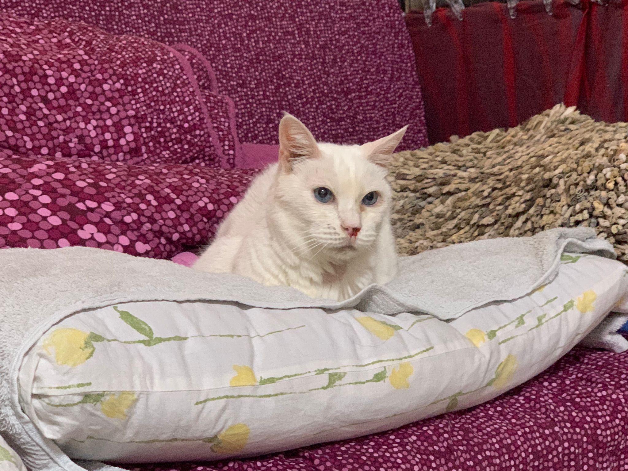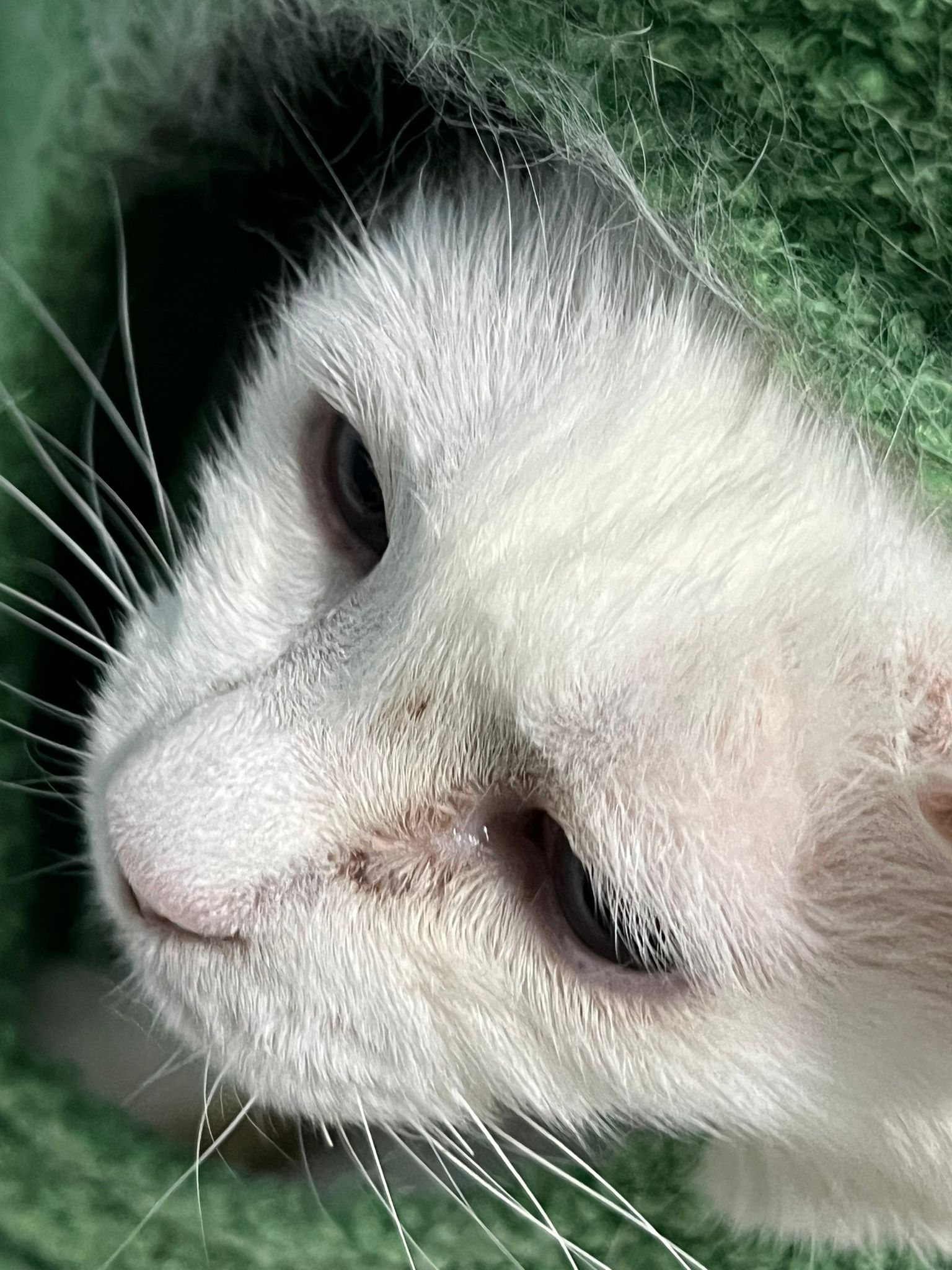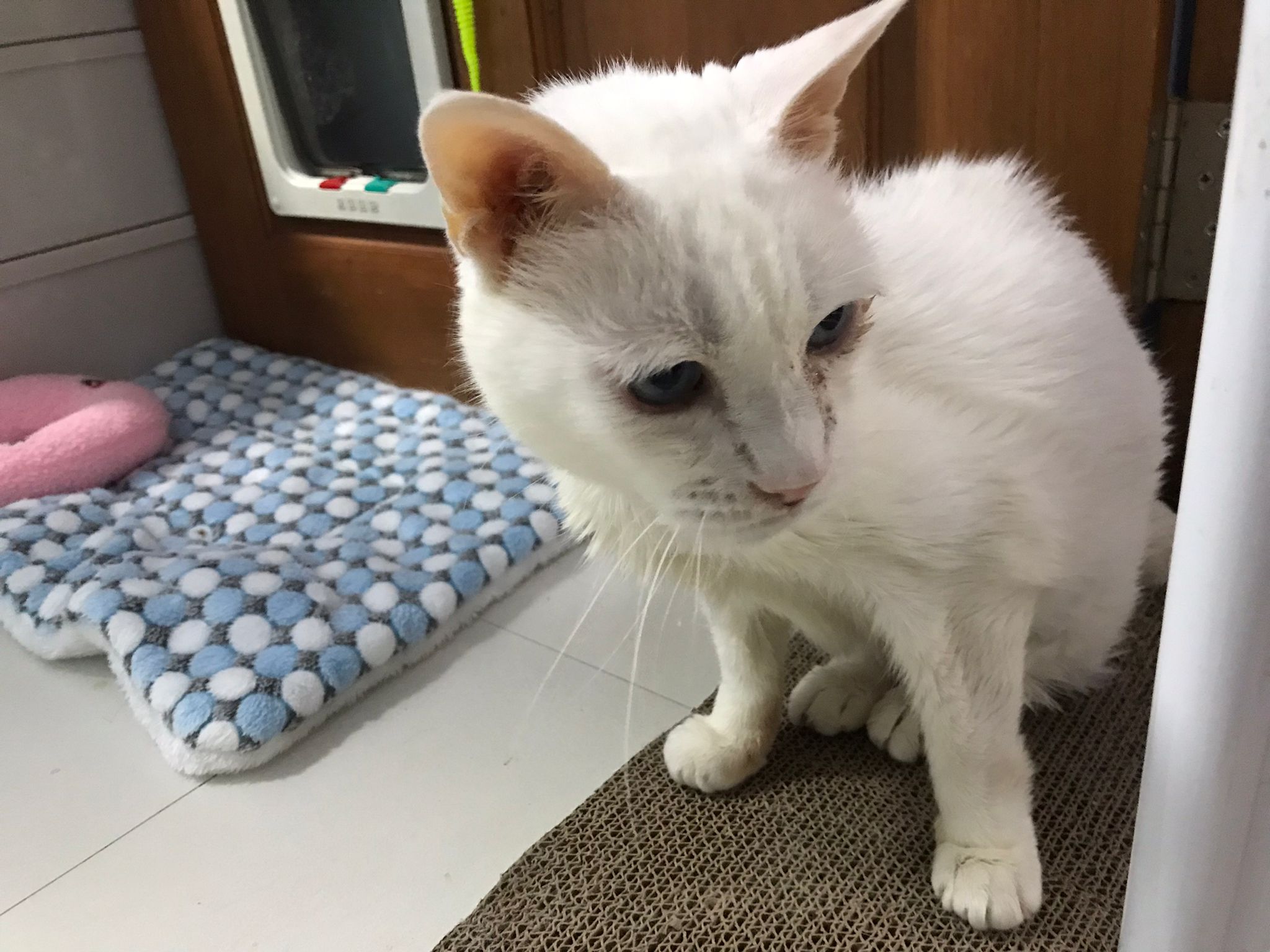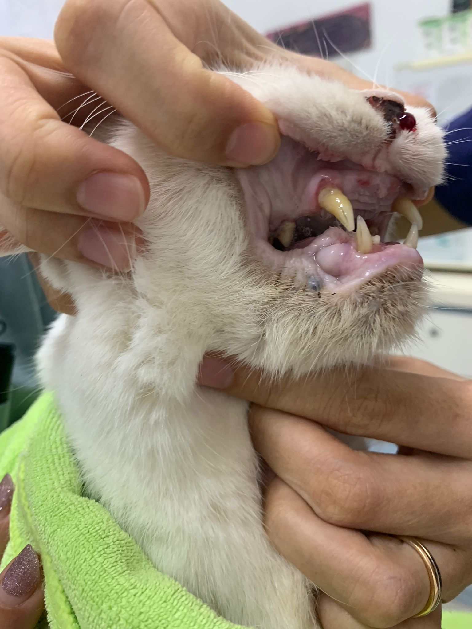 At the clinic, I look into her carrier, like red thread hanging from her left nostril. So much blood come out. Erm will monitor when she start the new treatment plan.
