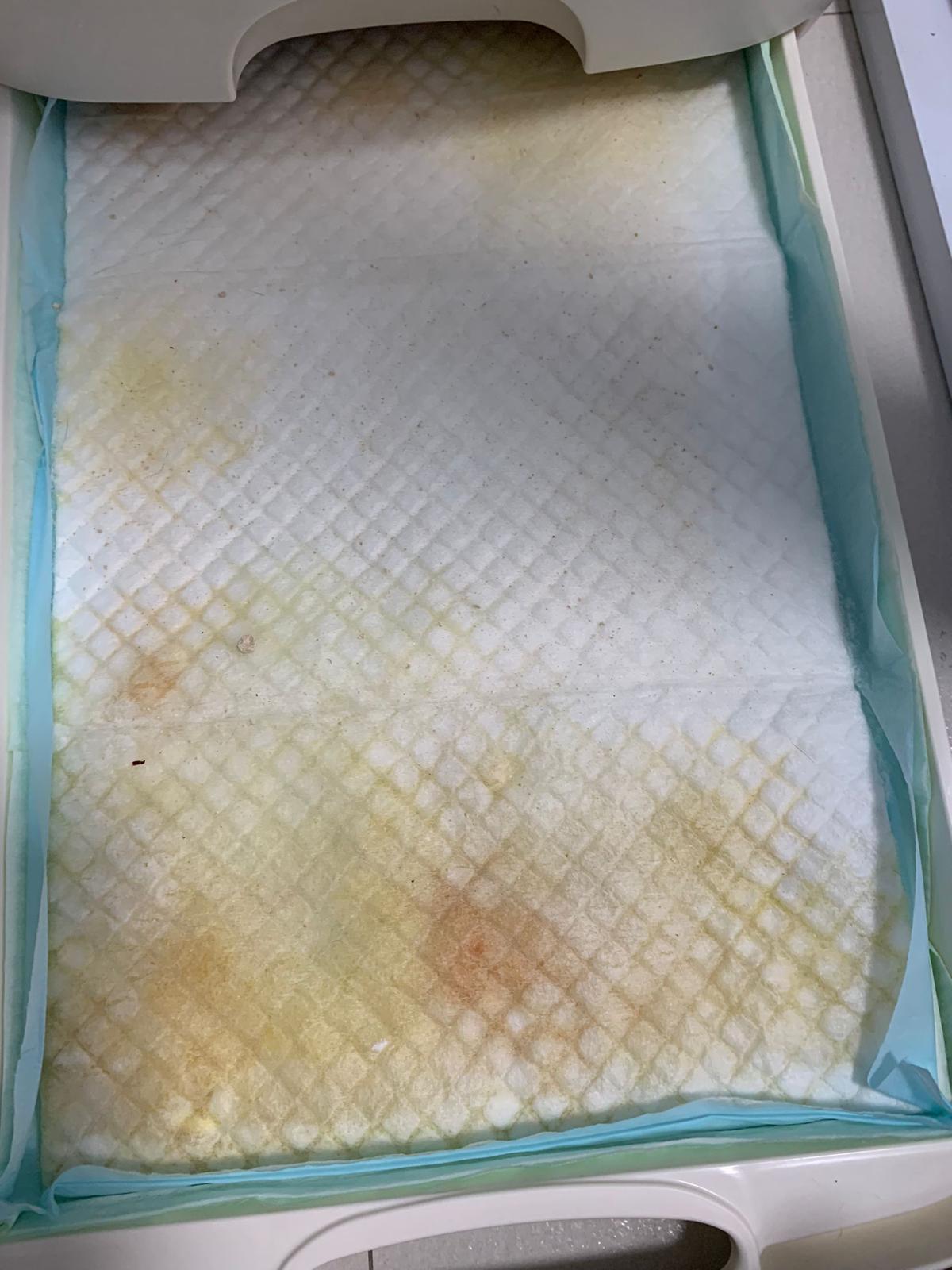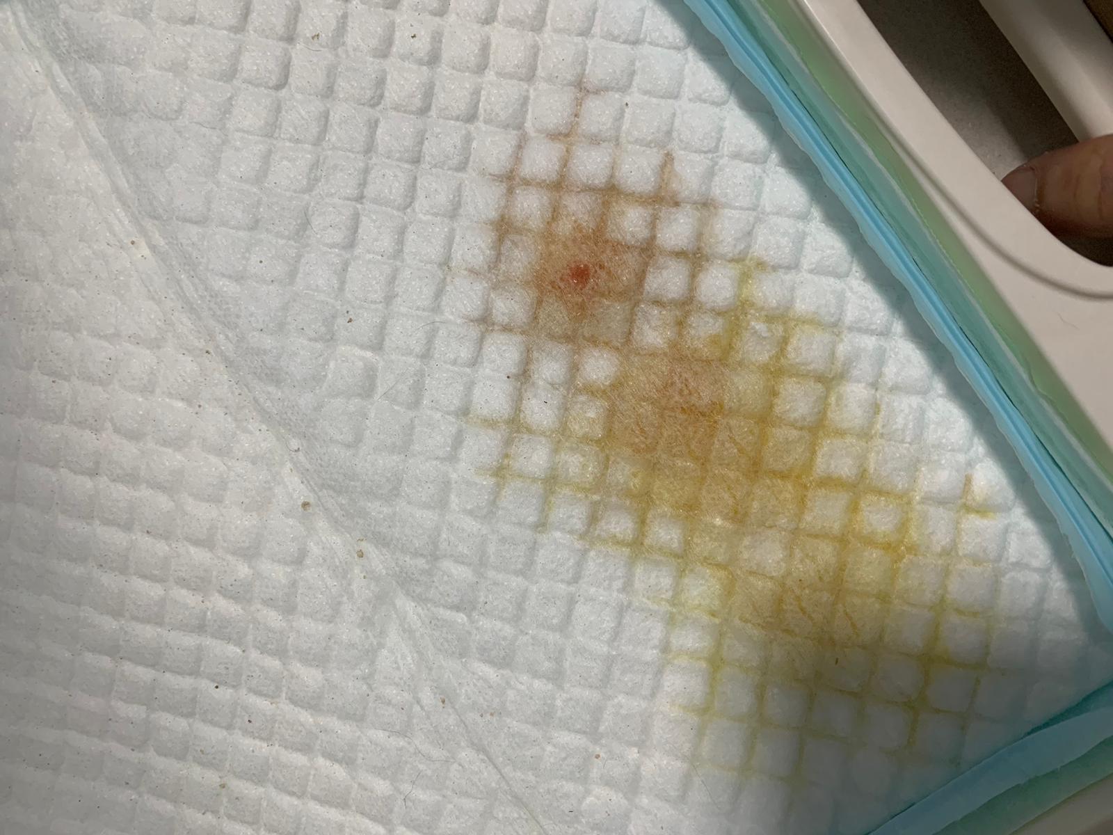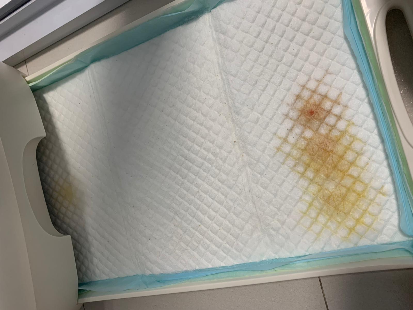 – She go bins more than 10 times n I just check – the amount on Peepad only a little and tinted blood.