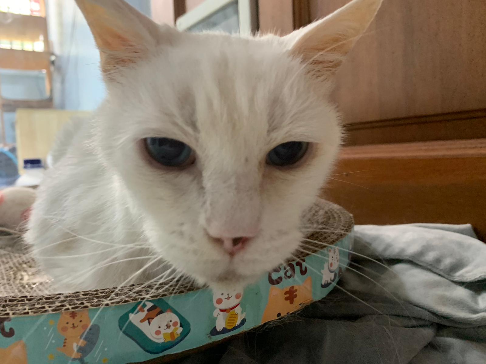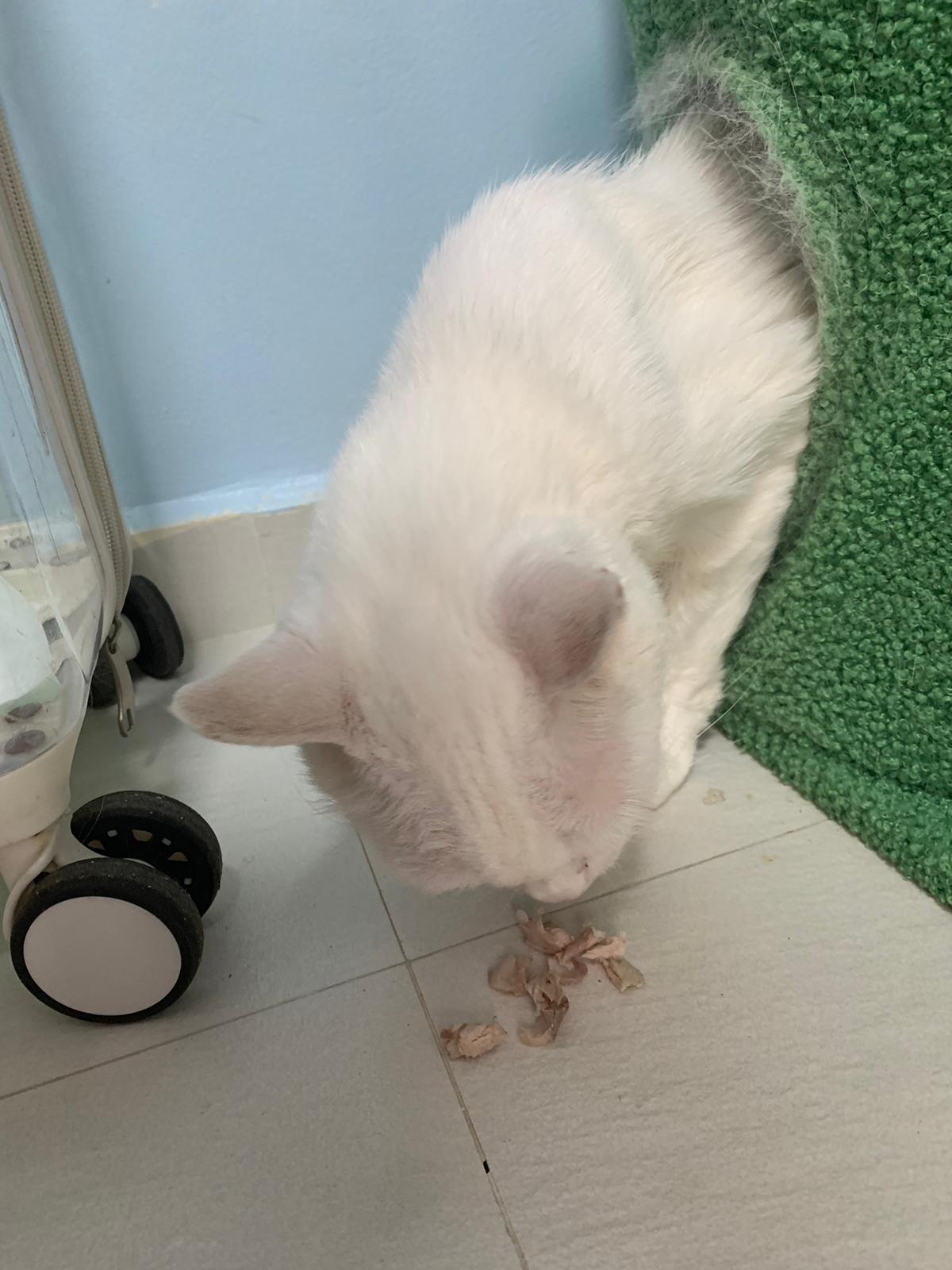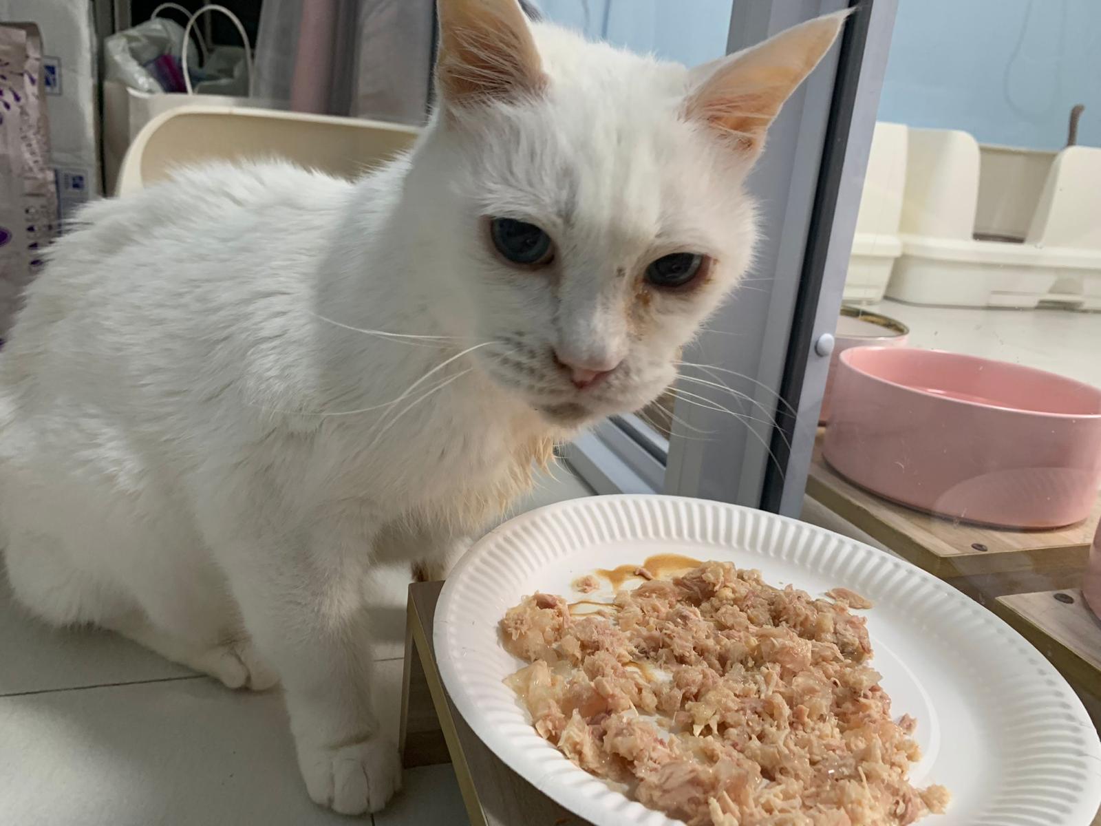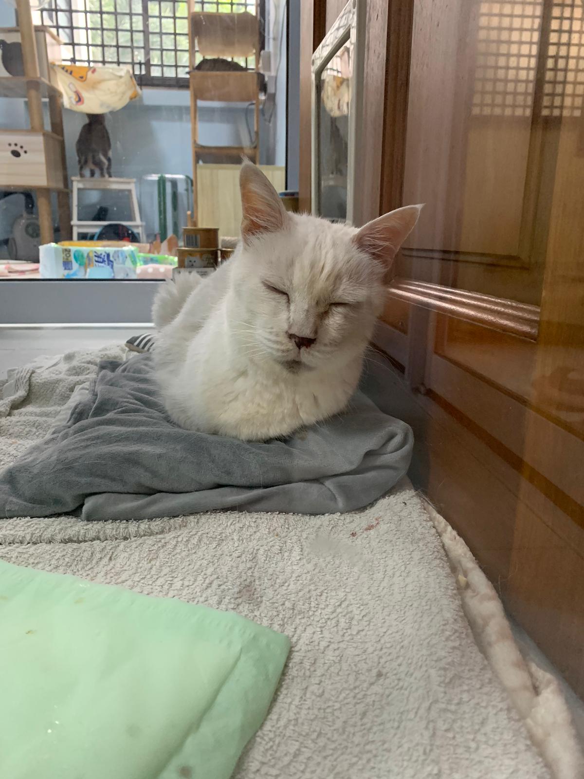 Got news that the vet who saw red says snowy got bone cancer cos something on her nose burst, got blood no pus got hole (they say can see thru the nose) so they going to Pts her. I rushed down, lucky make that choice, mummy change mind! Baby snowy can talk about, will come sayang me. I keep saying sorry to her cos her case is so diff fr all the cases that I face last time when I save those cats from being Pts. Lucky her mummy change mind. The vet don’t want help clean nose cos scare it cause non stop bleeding. scare she go home w that look, mummy may be worried n vet so negative, so lucky I make the decision to do it. Guai baby know I don’t harm her, I manage to clean more than what I thought I can. Can see the hole. Ok what. Just a hole. I didn’t manage to take b4 after photo. Snowy reach home eat Liao loh. Eat kibble then eat fish. How to kill ber like that. Visited her “home” and Subcut her and I rush back to do the morning round at 猫房. Happy to save back her life. Told Jenn standby 云南白药 in case it bleed again.