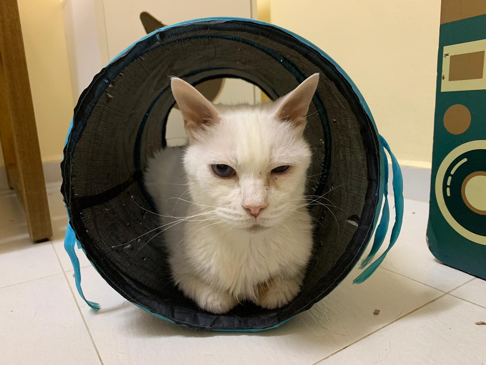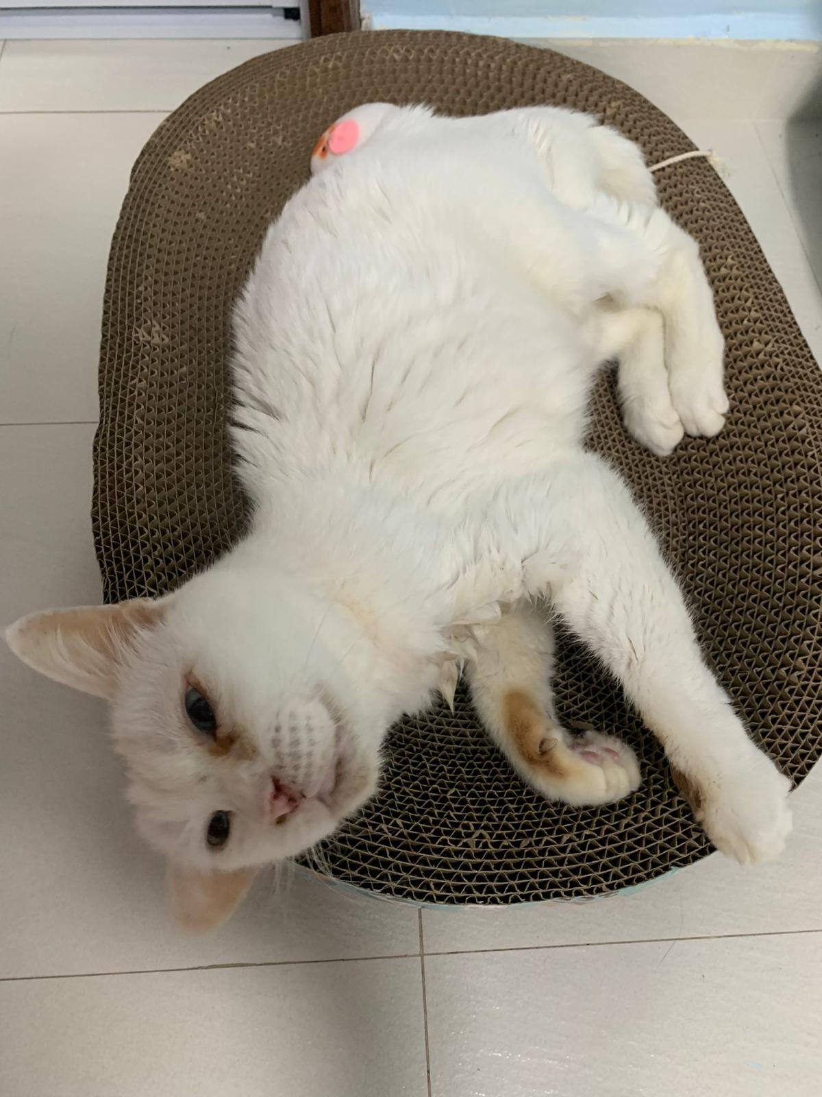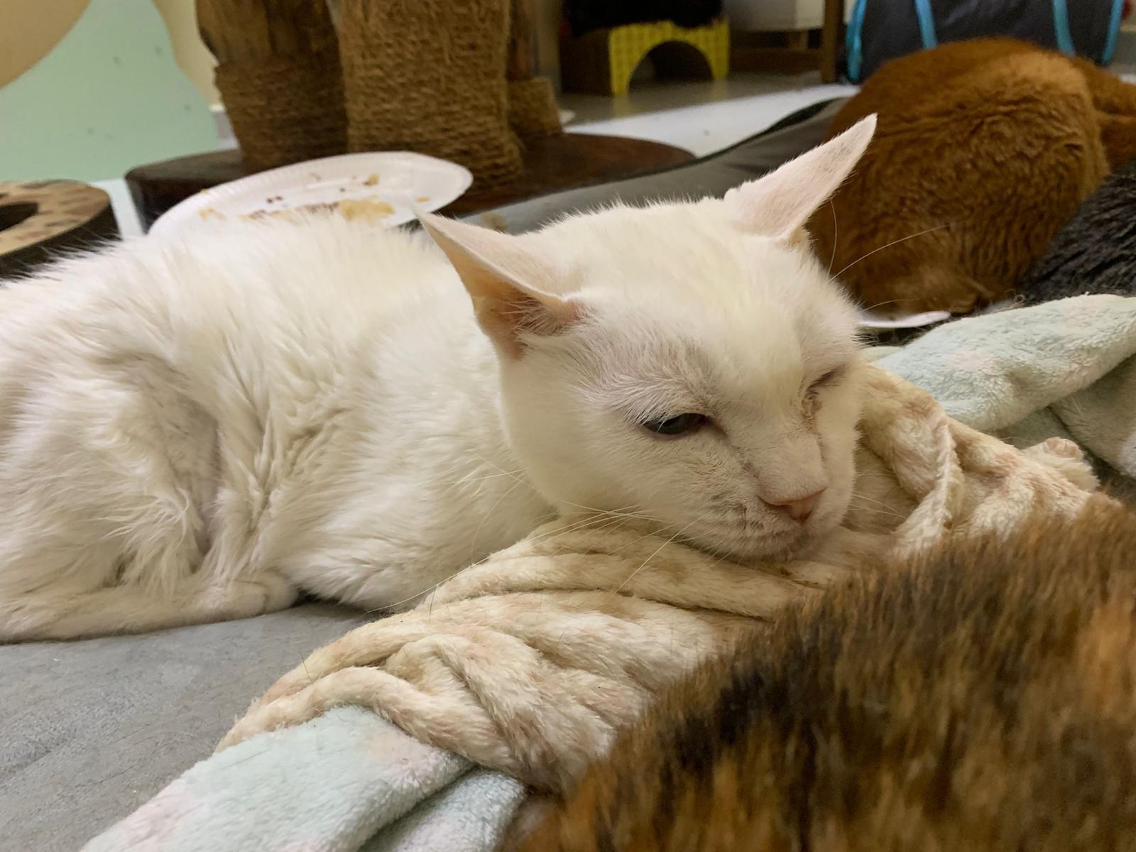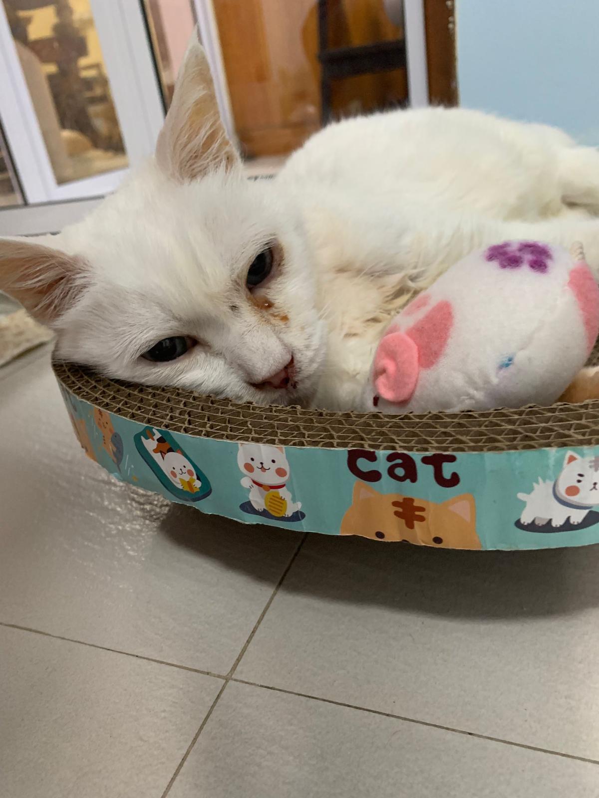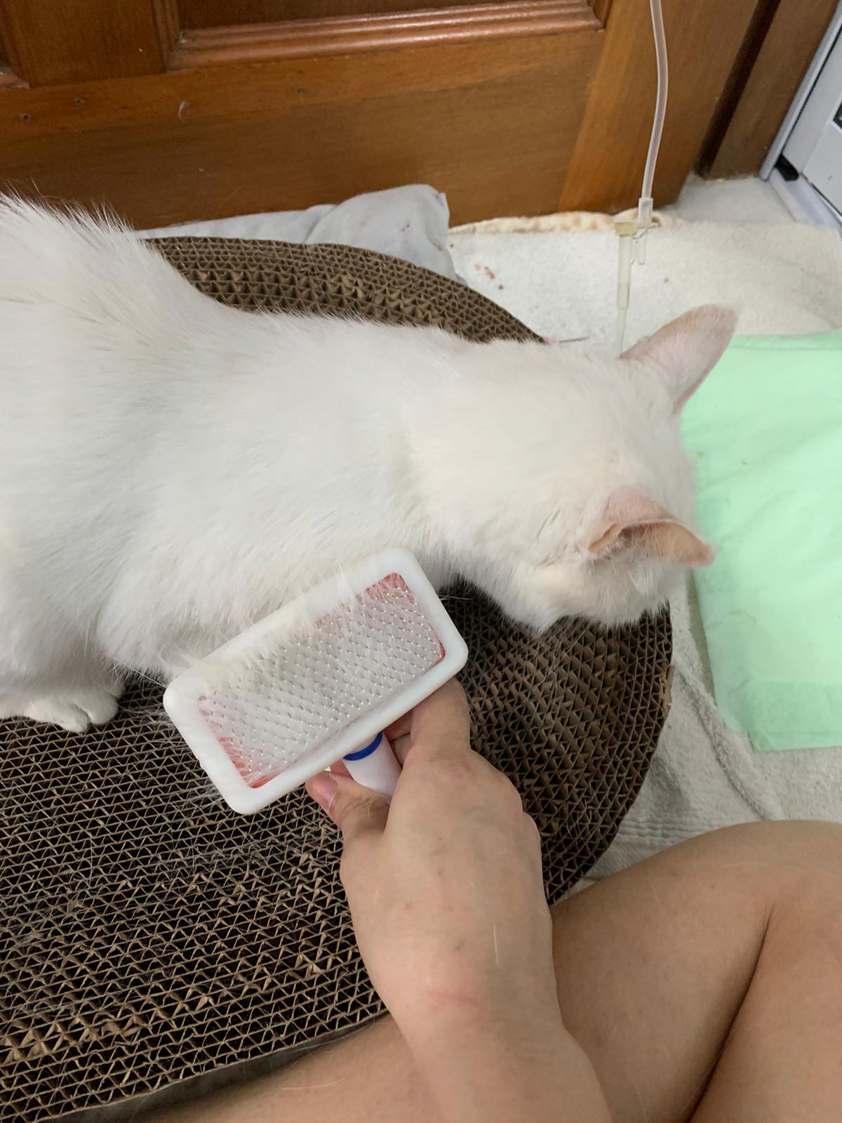 Got news that the vet who saw red says snowy got bone cancer cos something on her nose burst, got blood no pus got hole (they say can see thru the nose) so they going to Pts her. I rushed down, lucky make that choice, mummy change mind! Baby snowy can talk about, will come sayang me. I keep saying sorry to her cos her case is so diff fr all the cases that I face last time when I save those cats from being Pts. Lucky her mummy change mind. The vet don’t want help clean nose cos scare it cause non stop bleeding. scare she go home w that look, mummy may be worried n vet so negative, so lucky I make the decision to do it. Guai baby know I don’t harm her, I manage to clean more than what I thought I can. Can see the hole. Ok what. Just a hole. I didn’t manage to take b4 after photo. Snowy reach home eat Liao loh. Eat kibble then eat fish. How to kill ber like that. Visited her “home” and Subcut her and I rush back to do the morning round at 猫房. Happy to save back her life. Told Jenn standby 云南白药 in case it bleed again.
