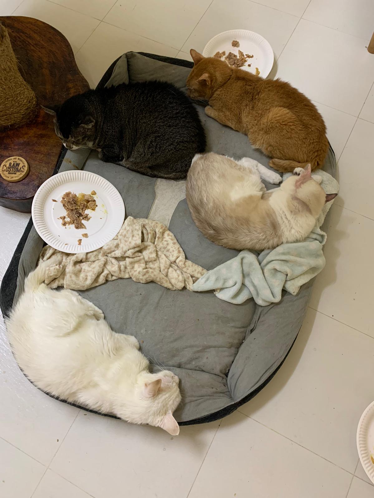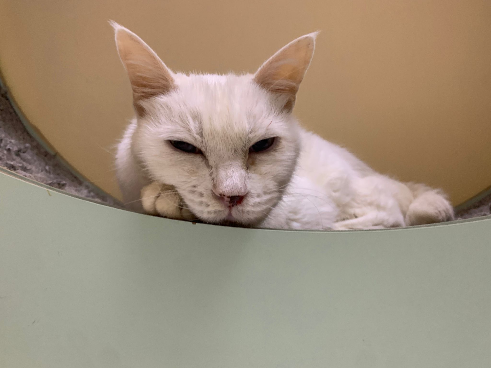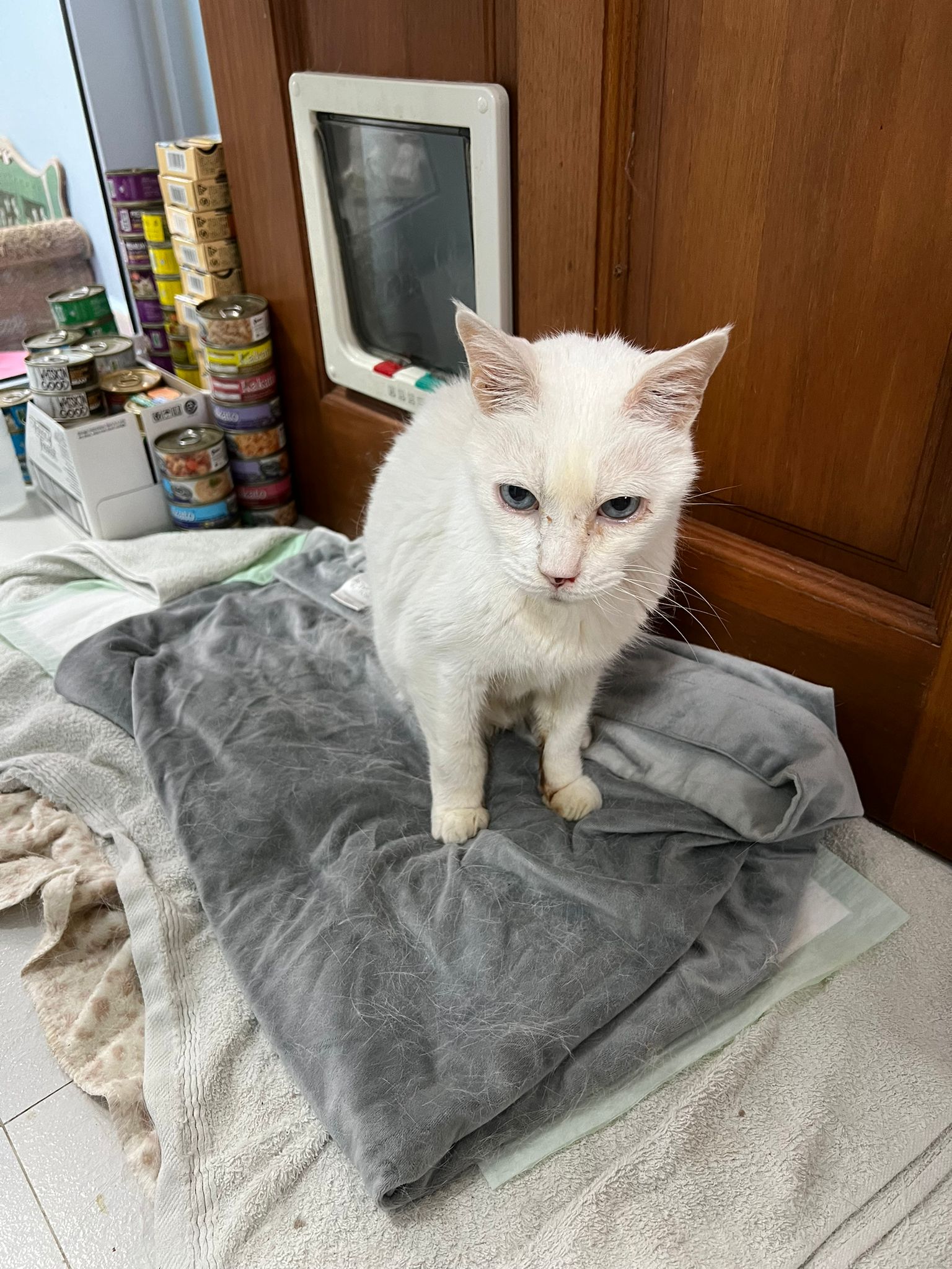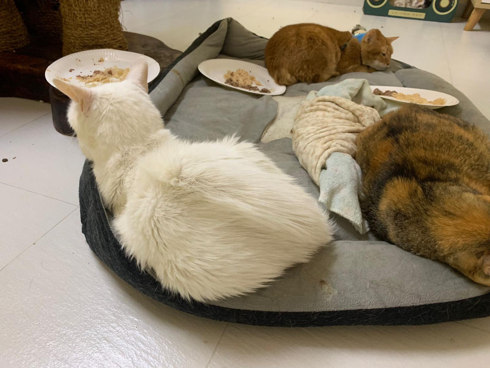 Got news that the vet who saw red says snowy got bone cancer cos something on her nose burst, got blood no pus got hole (they say can see thru the nose) so they going to Pts her. I rushed down, lucky make that choice, mummy change mind! Baby snowy can talk about, will come sayang me. I keep saying sorry to her cos her case is so diff fr all the cases that I face last time when I save those cats from being Pts. Lucky her mummy change mind. The vet don’t want help clean nose cos scare it cause non stop bleeding. scare she go home w that look, mummy may be worried n vet so negative, so lucky I make the decision to do it. Guai baby know I don’t harm her, I manage to clean more than what I thought I can. Can see the hole. Ok what. Just a hole. I didn’t manage to take b4 after photo. Snowy reach home eat Liao loh. Eat kibble then eat fish. How to kill ber like that. Visited her “home” and Subcut her and I rush back to do the morning round at 猫房. Happy to save back her life. Told Jenn standby 云南白药 in case it bleed again.
