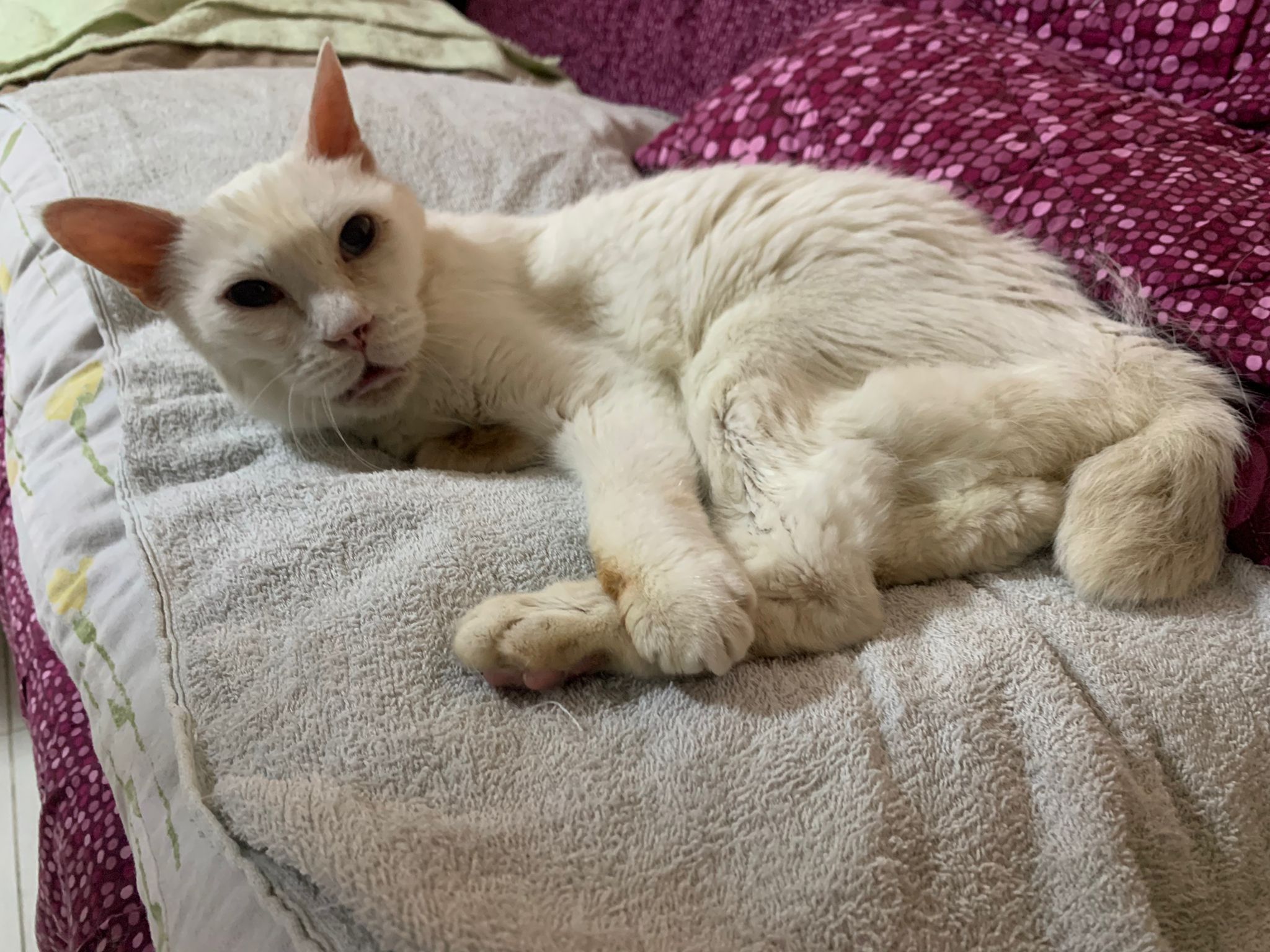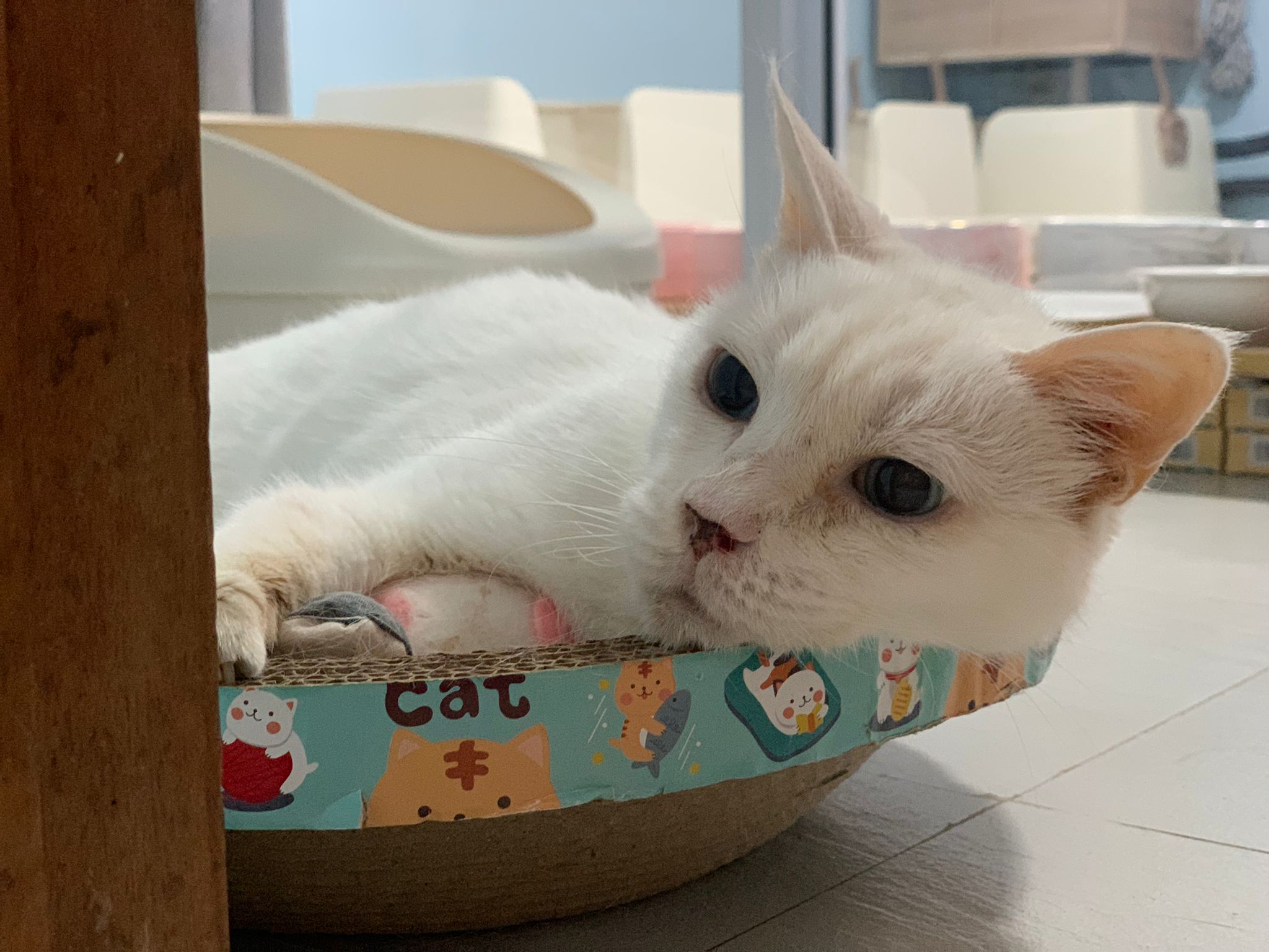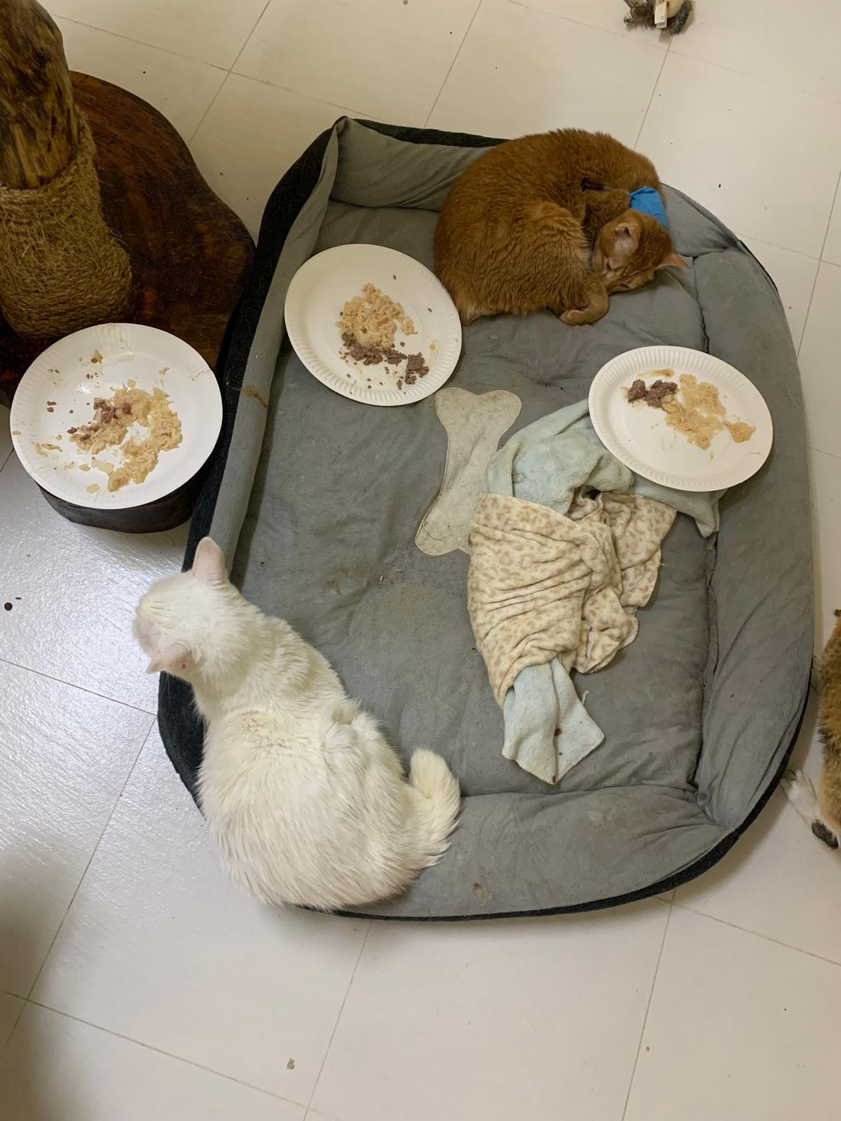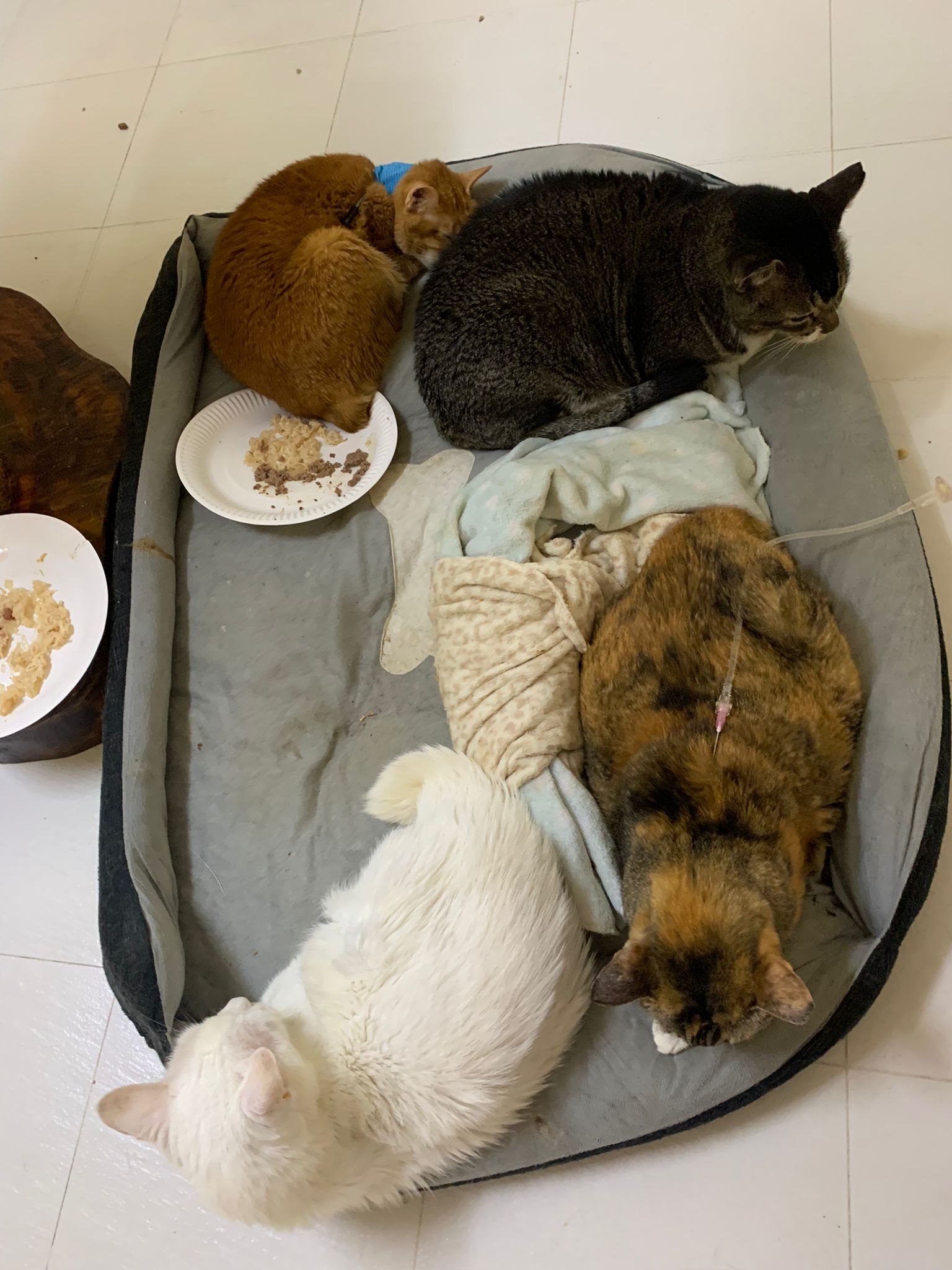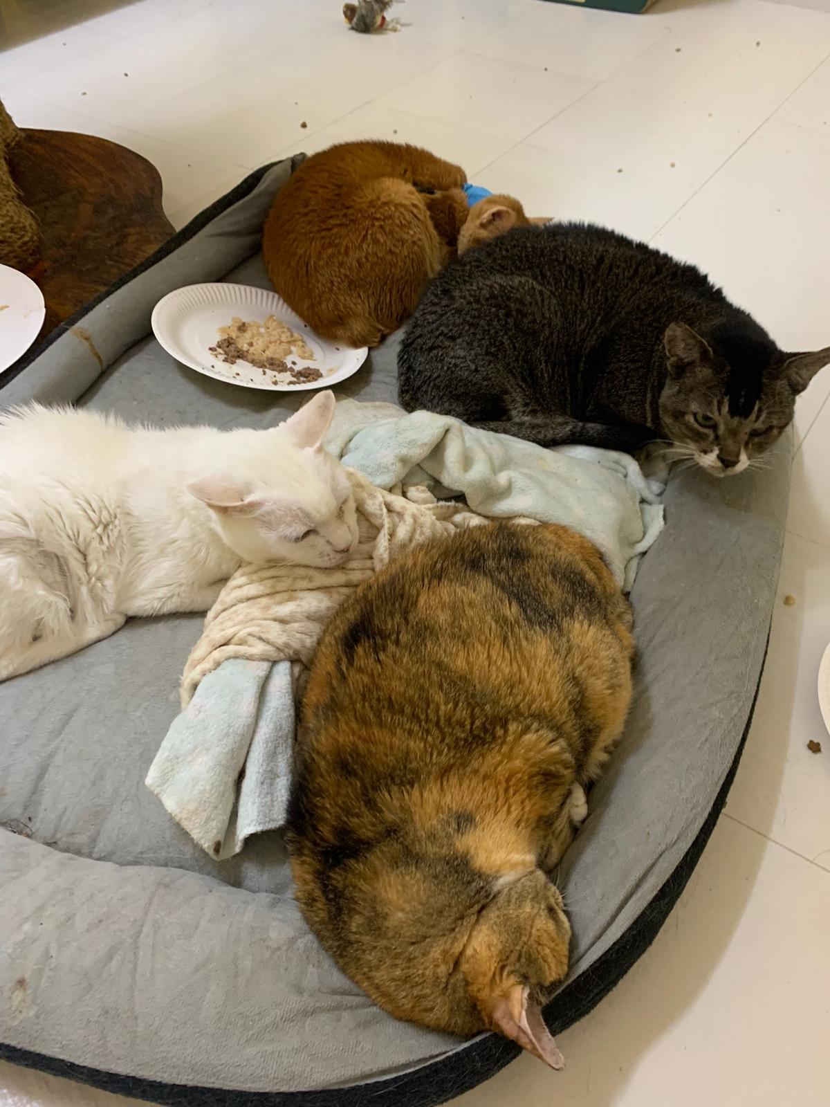 Got news that the vet who saw red says snowy got bone cancer cos something on her nose burst, got blood no pus got hole (they say can see thru the nose) so they going to Pts her. I rushed down, lucky make that choice, mummy change mind! Baby snowy can talk about, will come sayang me. I keep saying sorry to her cos her case is so diff fr all the cases that I face last time when I save those cats from being Pts. Lucky her mummy change mind. The vet don’t want help clean nose cos scare it cause non stop bleeding. scare she go home w that look, mummy may be worried n vet so negative, so lucky I make the decision to do it. Guai baby know I don’t harm her, I manage to clean more than what I thought I can. Can see the hole. Ok what. Just a hole. I didn’t manage to take b4 after photo. Snowy reach home eat Liao loh. Eat kibble then eat fish. How to kill ber like that. Visited her “home” and Subcut her and I rush back to do the morning round at 猫房. Happy to save back her life. Told Jenn standby 云南白药 in case it bleed again.