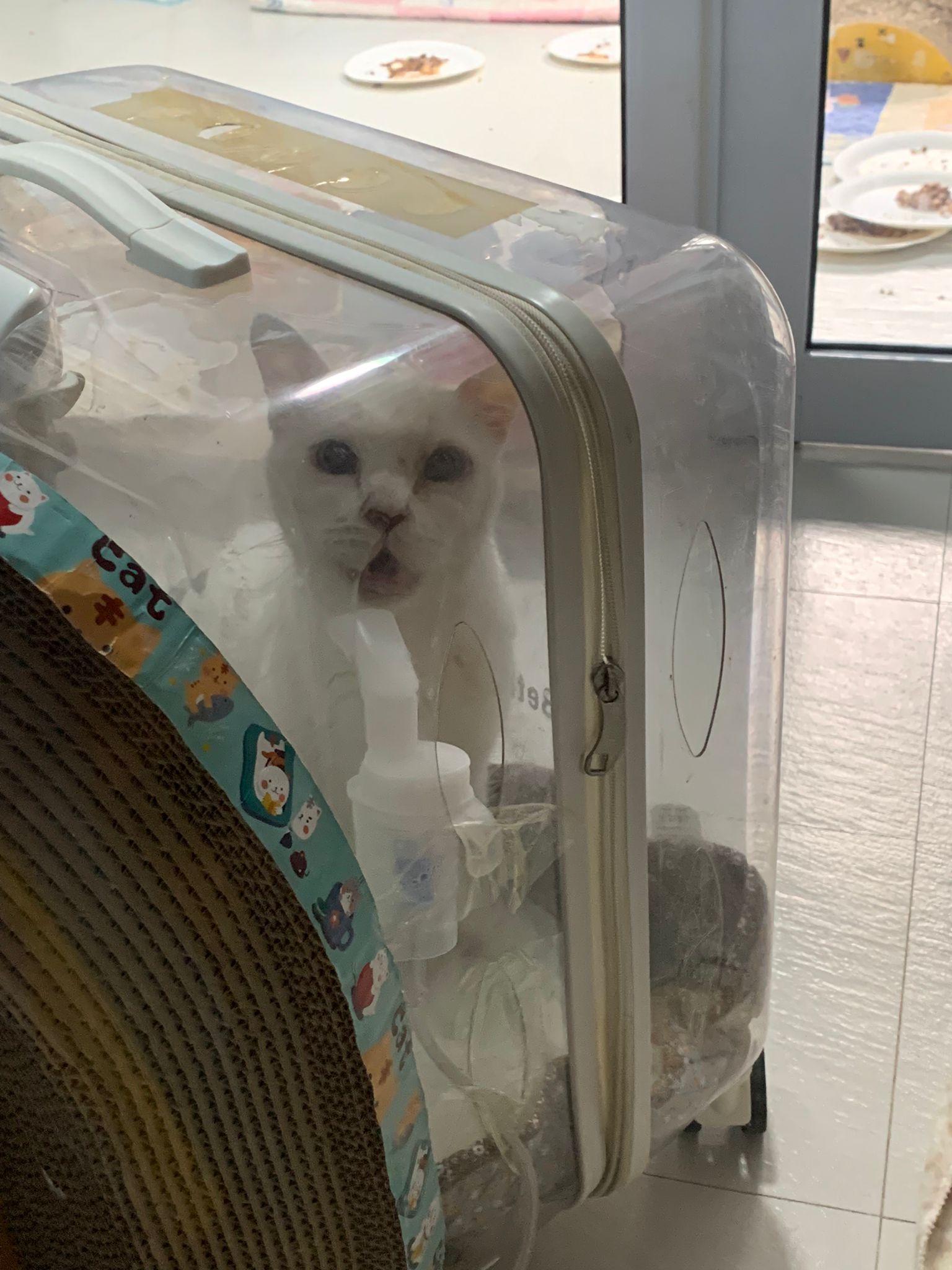 7pm+: she is happy see me? Told her nubulise again. She ok. While I pack new food into the room.