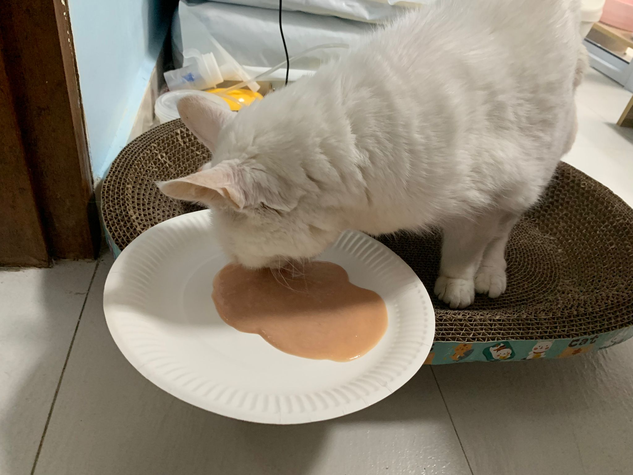 10.19am: out from nubulization and go eat kibble (I add on nutripro chicken other than indoor)