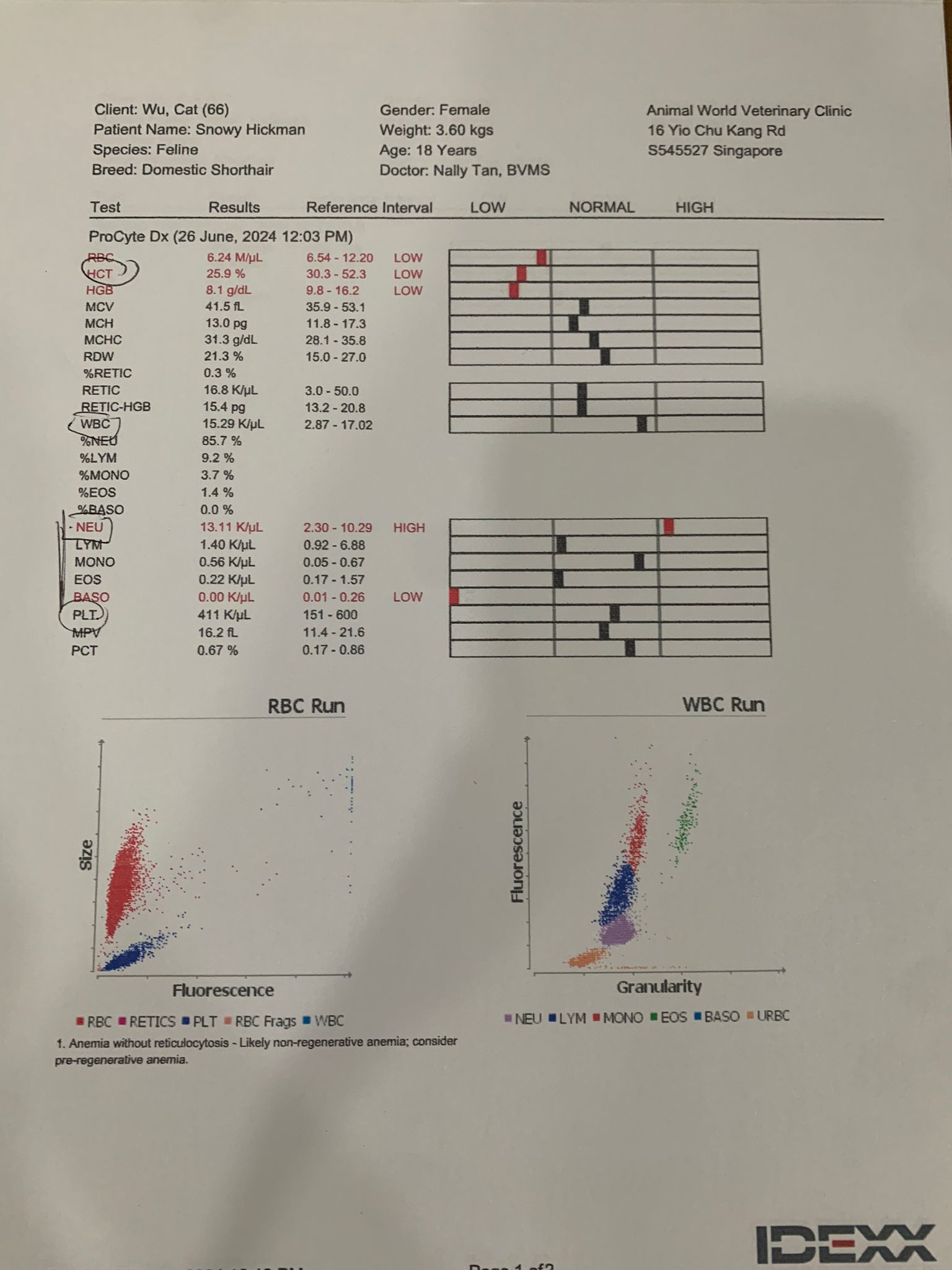 Taken Cbc only, not anemic is all I know based on 4.6 bw.