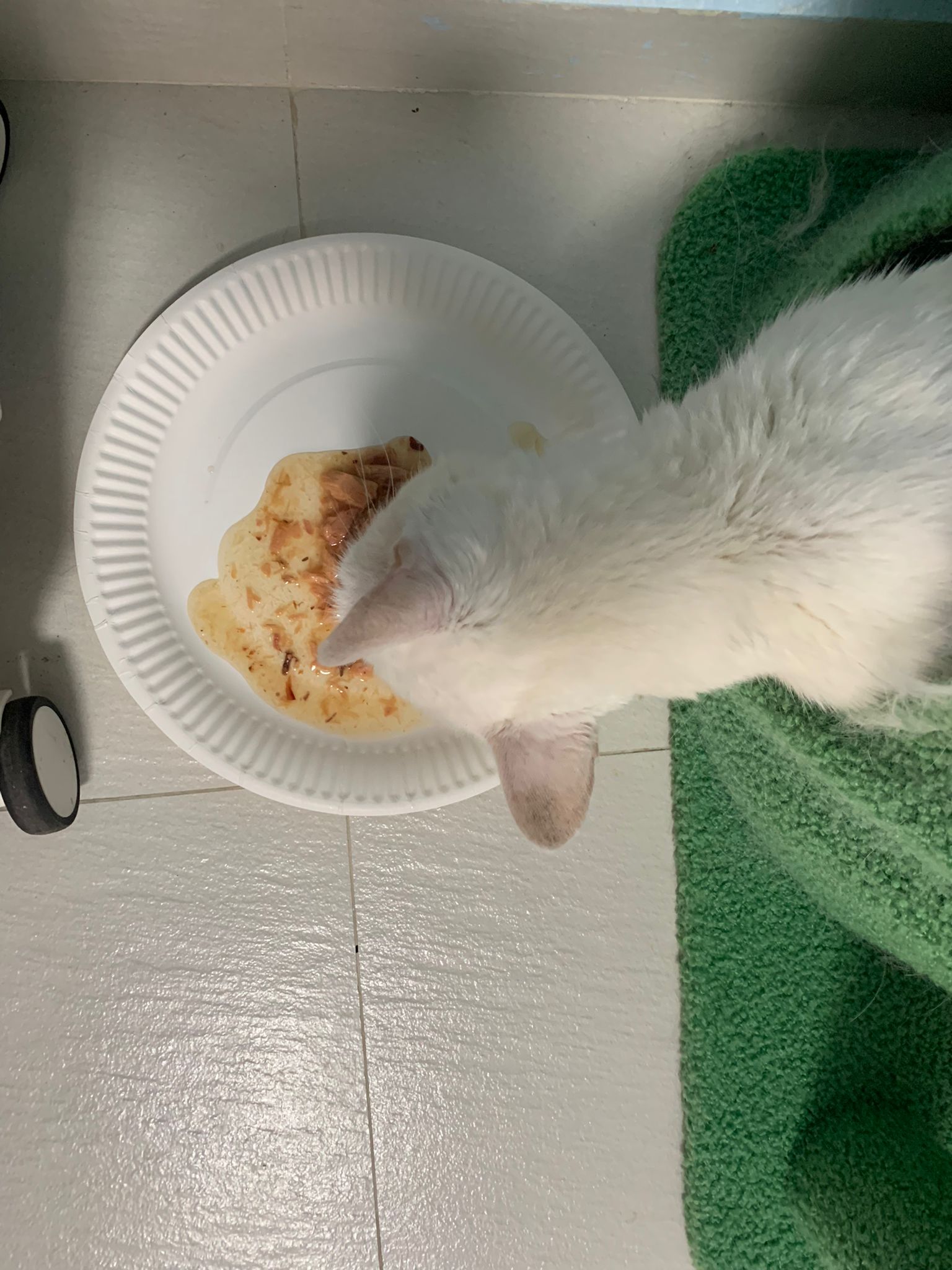7.22pm: mmm”snowy threw up” – kibble