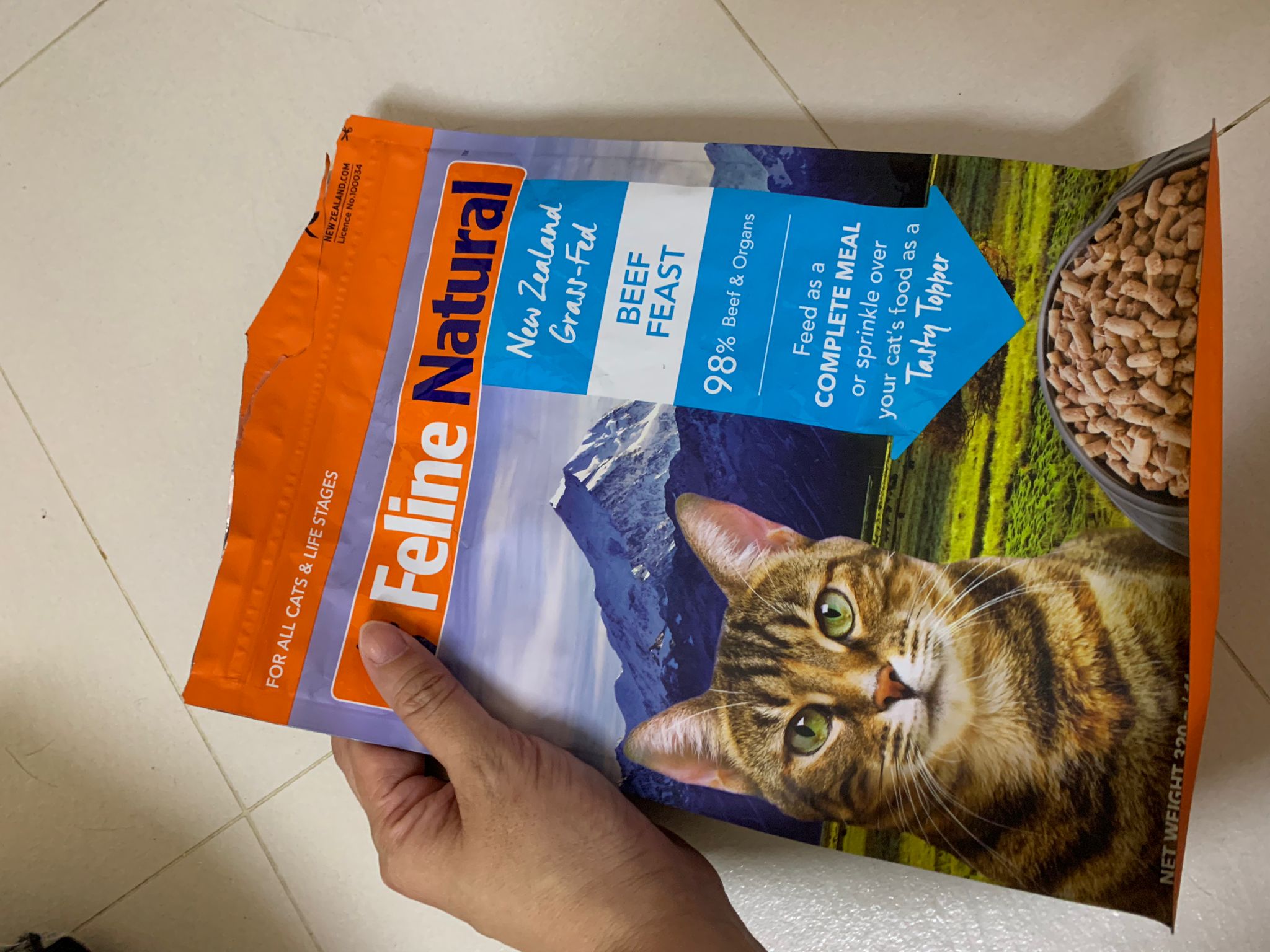Then I pack some stuff n found feline beef feast – serve to her she like