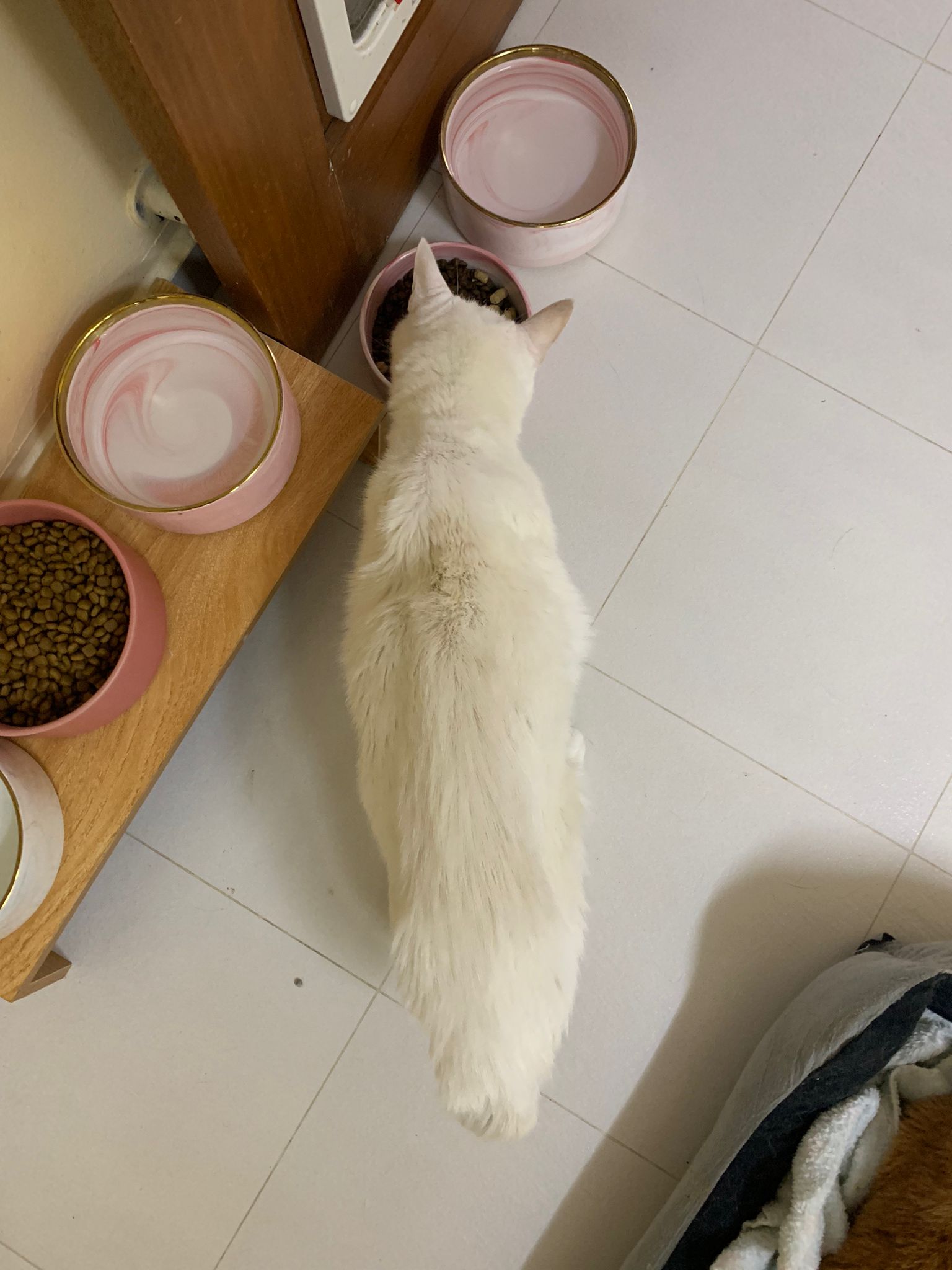 9.13am: she is resting on sb. Kibble half gone. I’m decide to top up or not. Maybe top up a little n see how. – top up. She ate quite a lot.