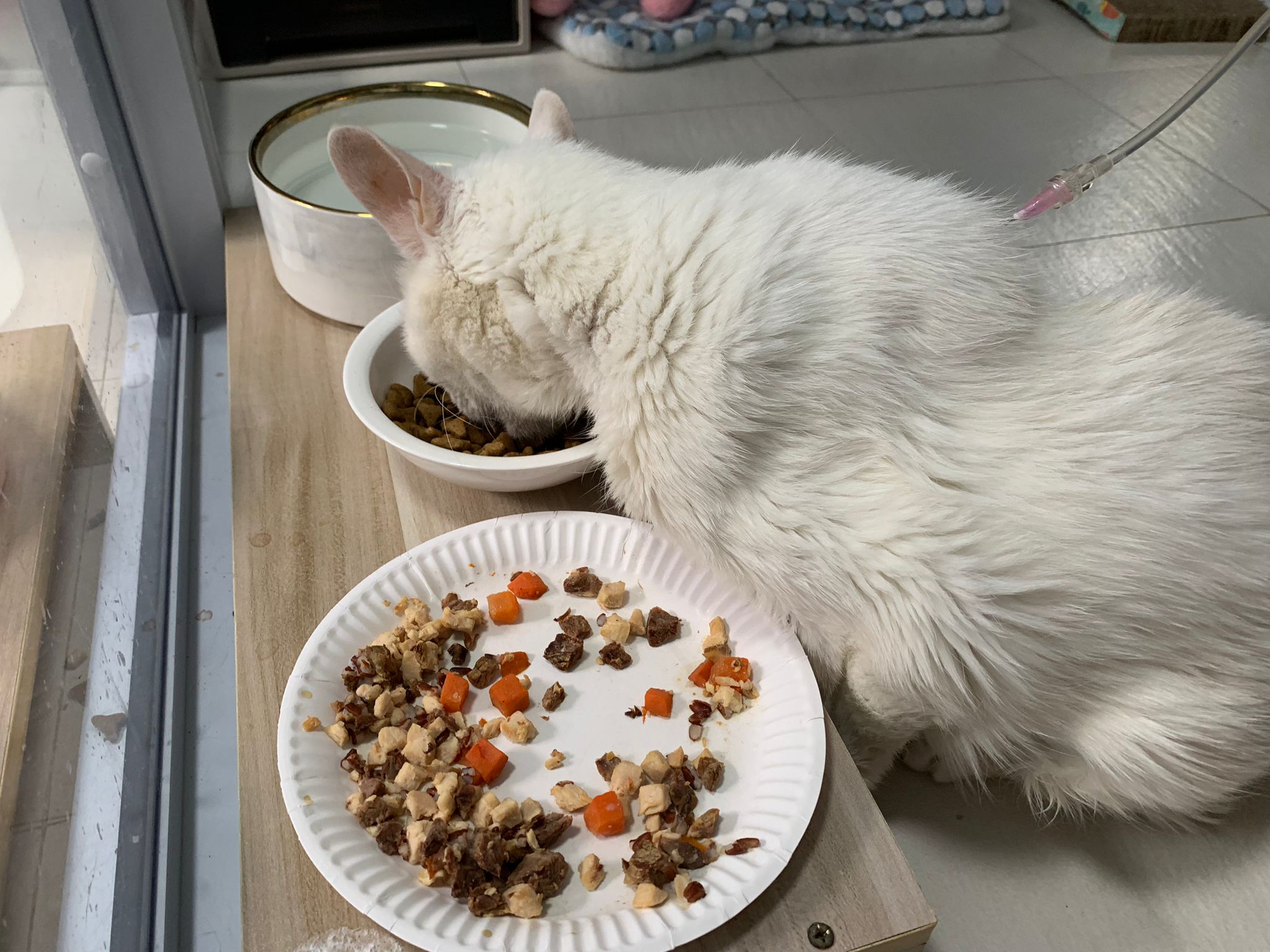 Got eat some kibble then wait at the door i food her I get ready needle and bupre we go back