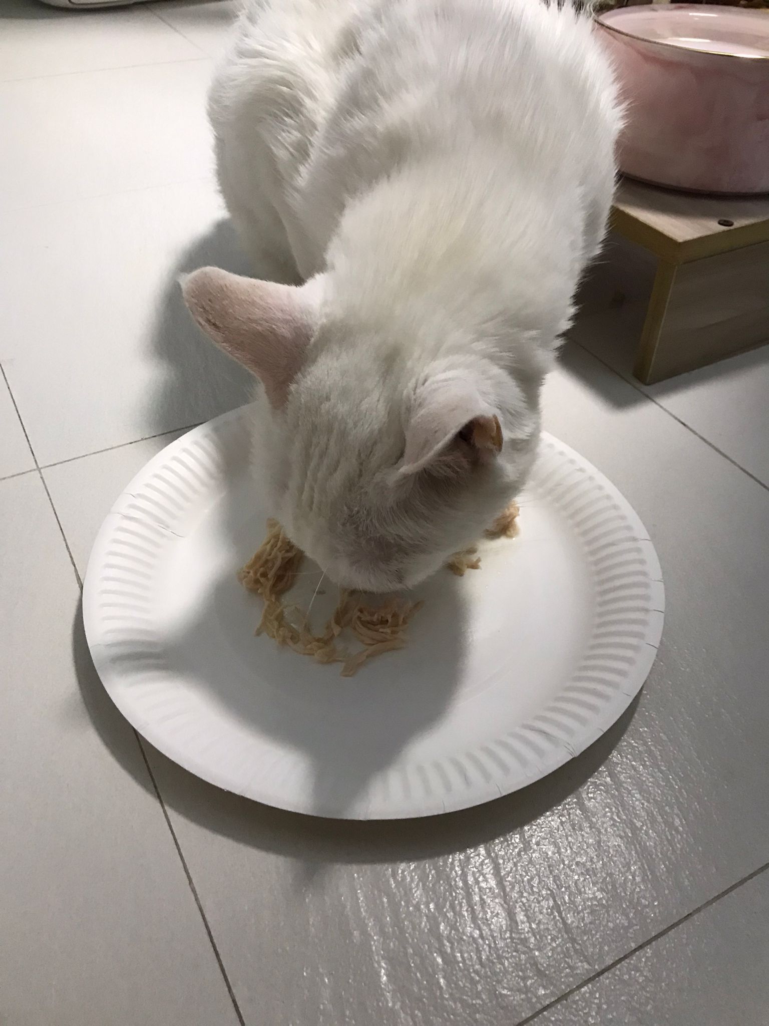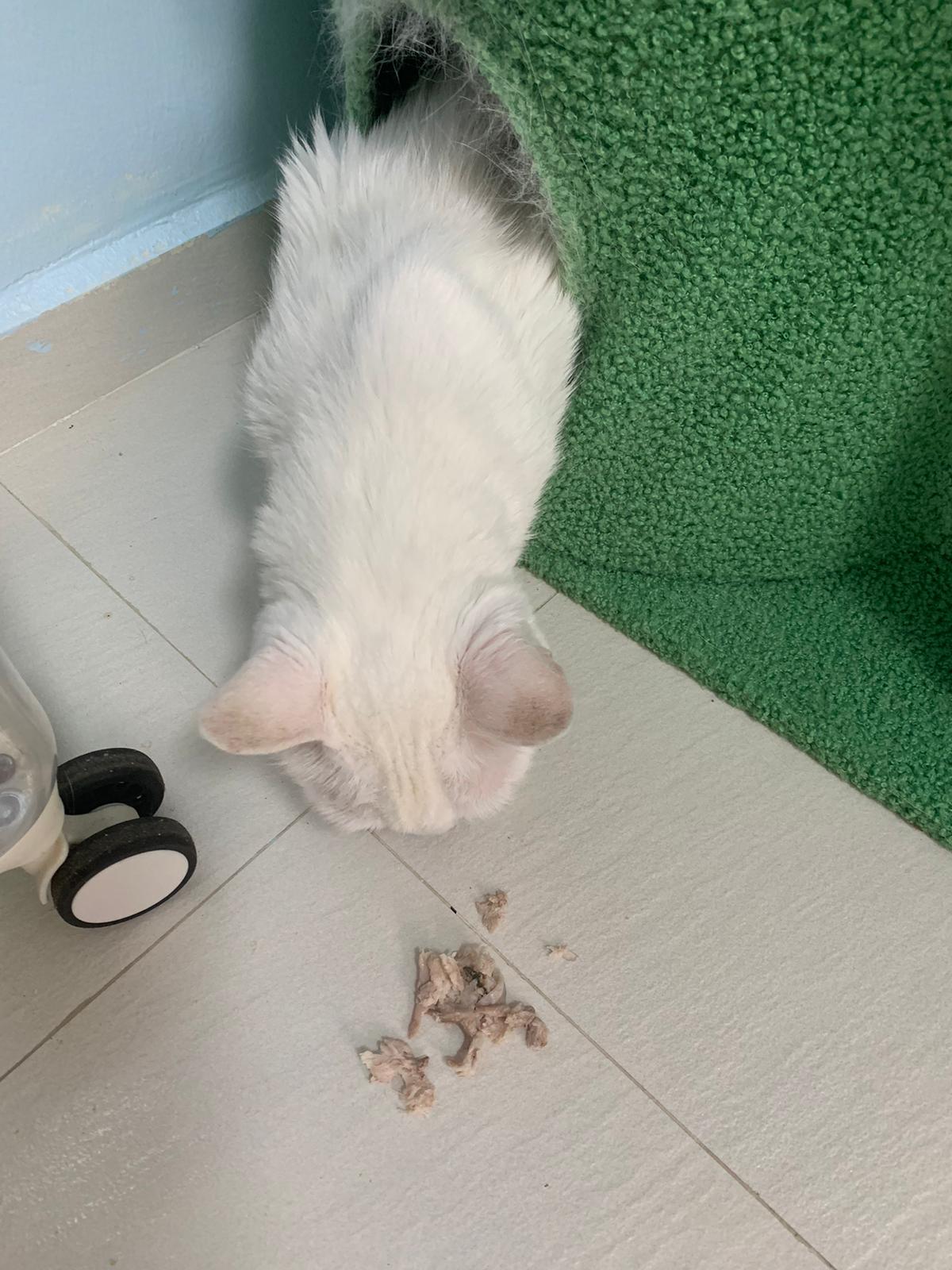 12pm: done all meds. Give her bistro chicken. Can see she is a more fish cat. But I told her is the cats fav, she still give face try some.