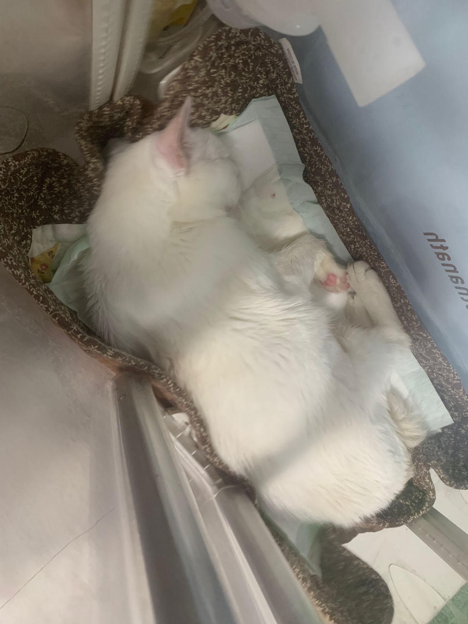 I sayang her, take her out from bin, Awake, can move about.