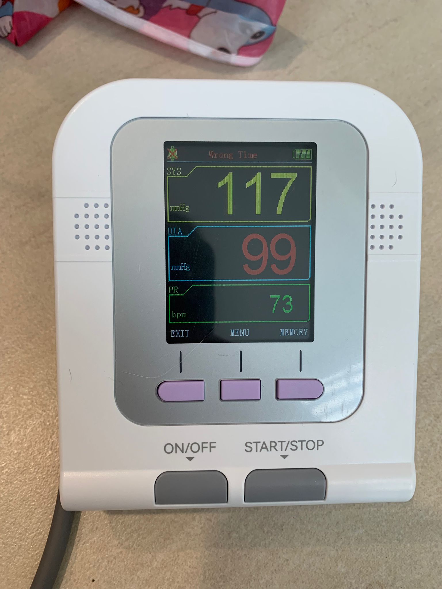 Taken her bp. 117/99, pr 73.