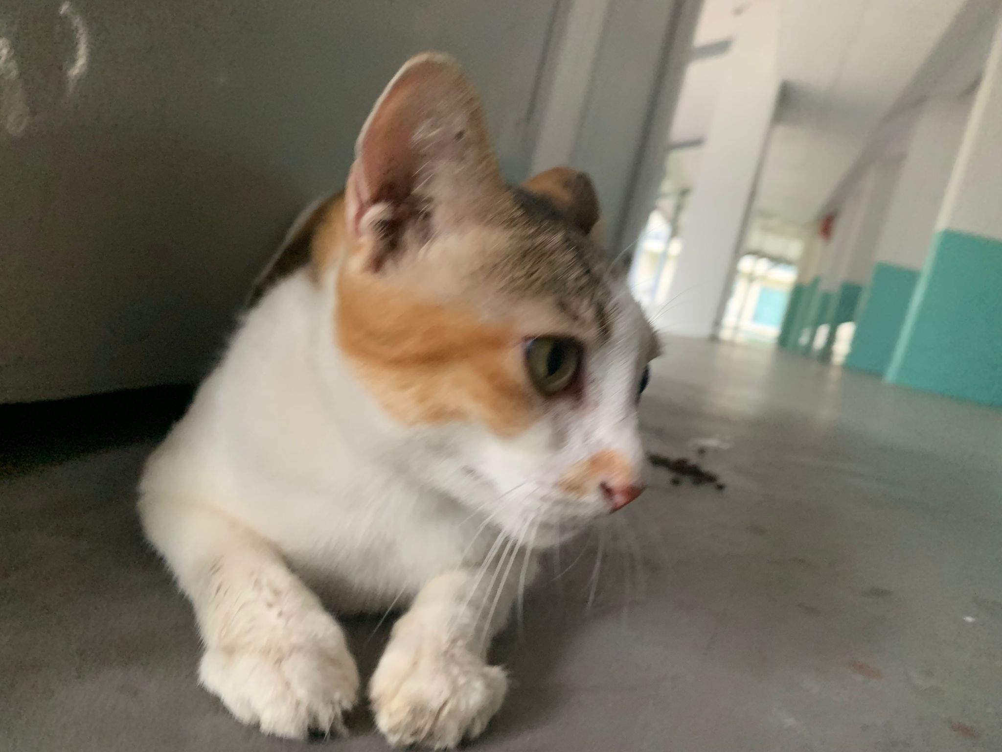 First time I see her pic. Named her snowy. Ears untipped so means? J:”Didnt see any poster for lost cat. She seems young. Keep meow meow when see me“ – Jie like worry that snowy will become a Comm cat, posted on lost and found no news. Highly abandoned.