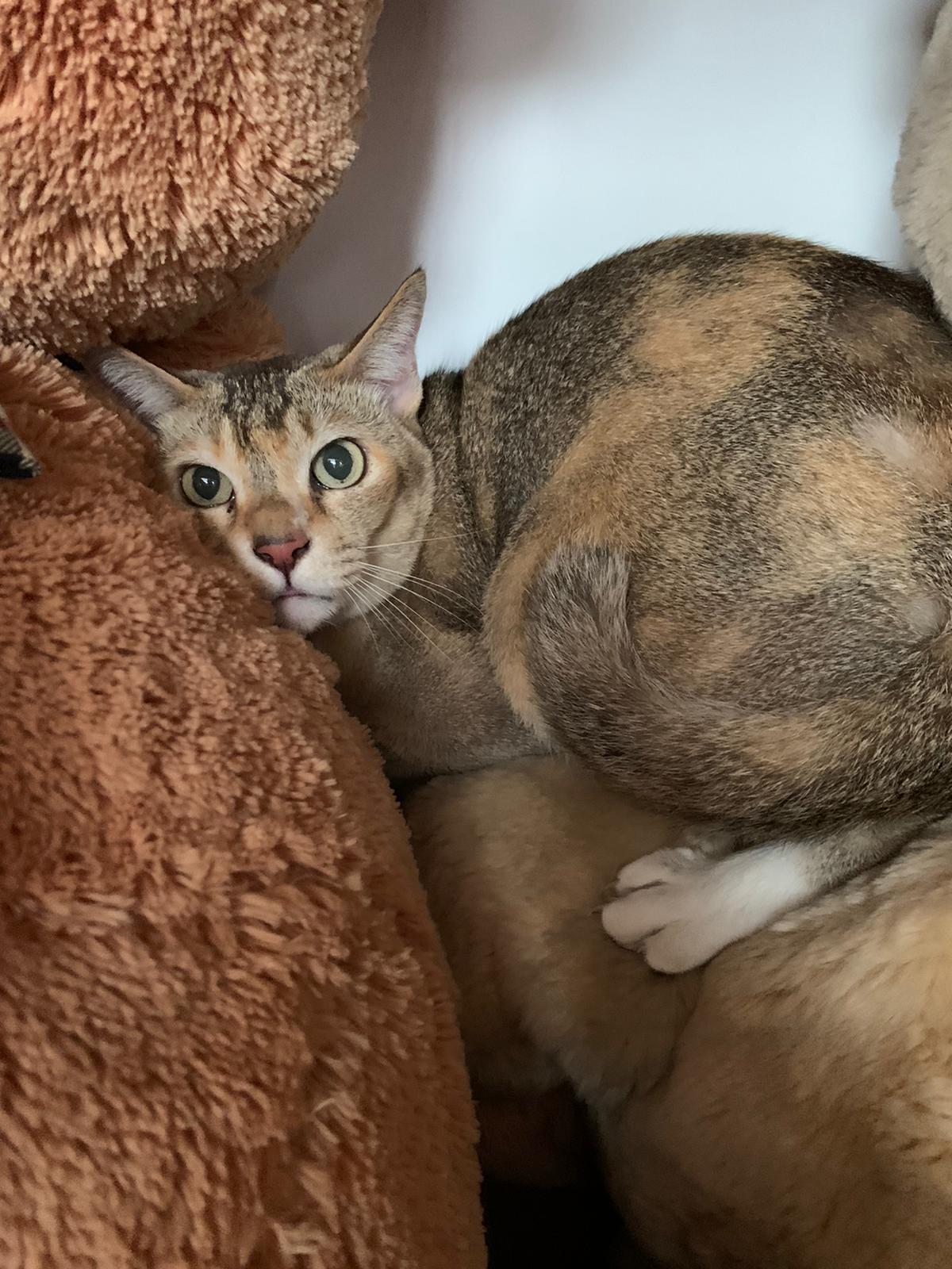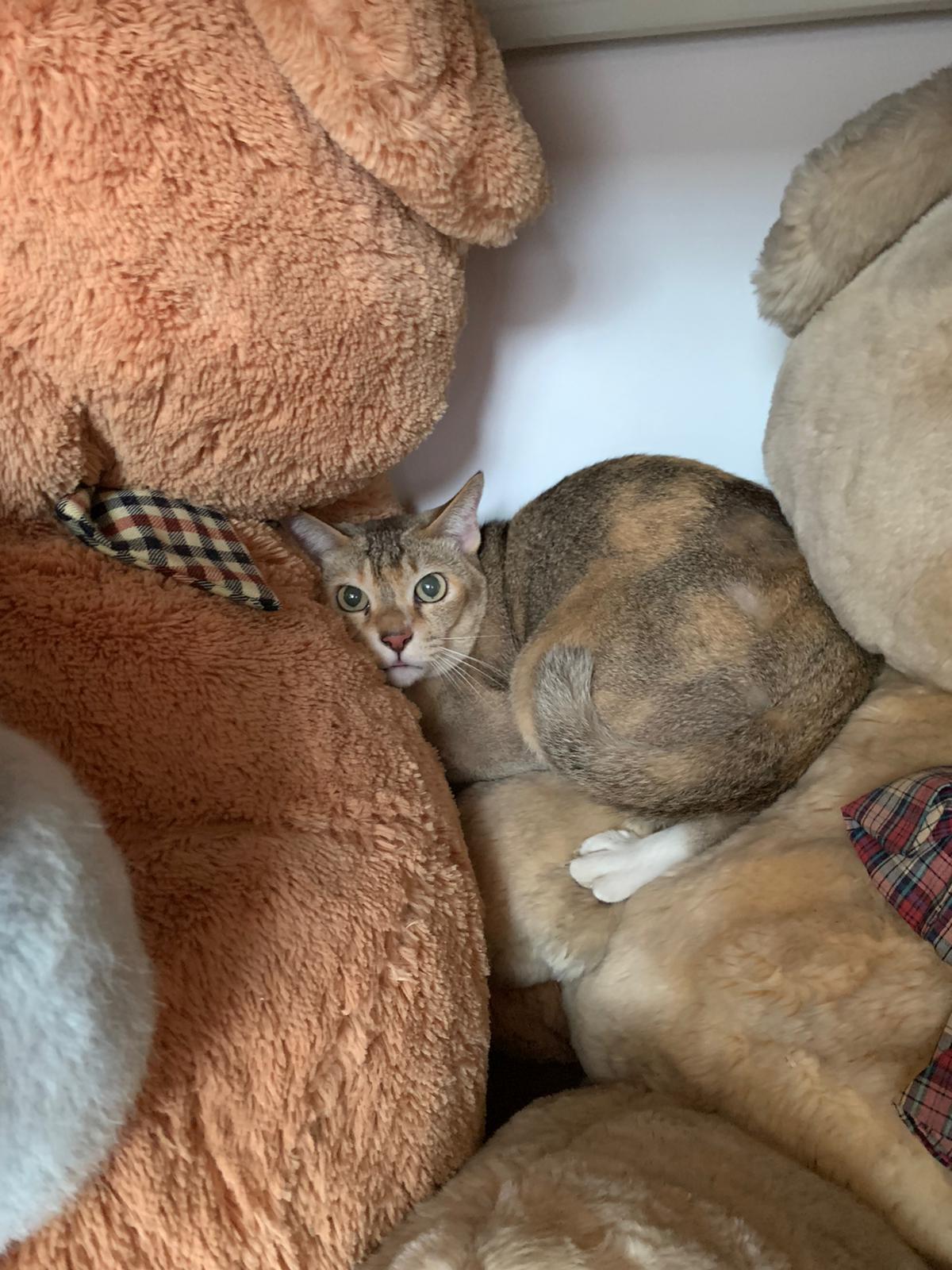 She go to my bear bear to hide, taken photos of her. Didn’t show aggression to me but last time she is the random attack one. Many years ago.