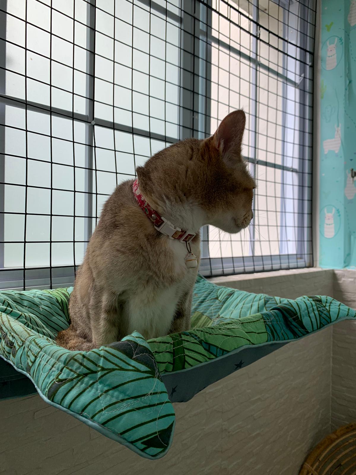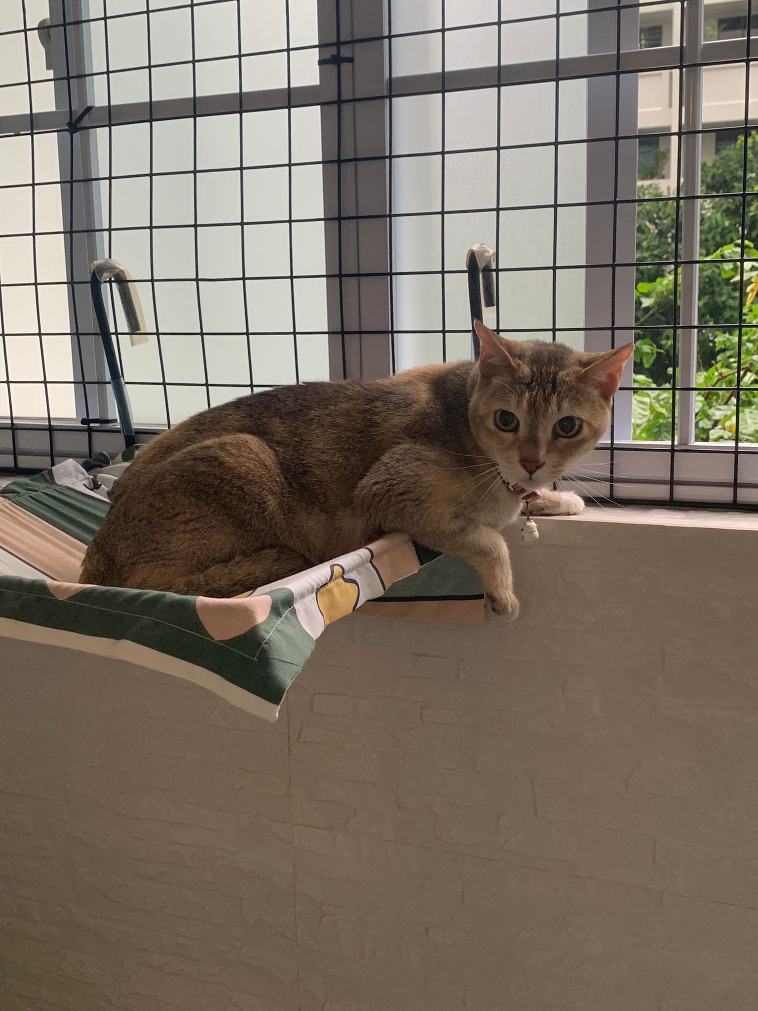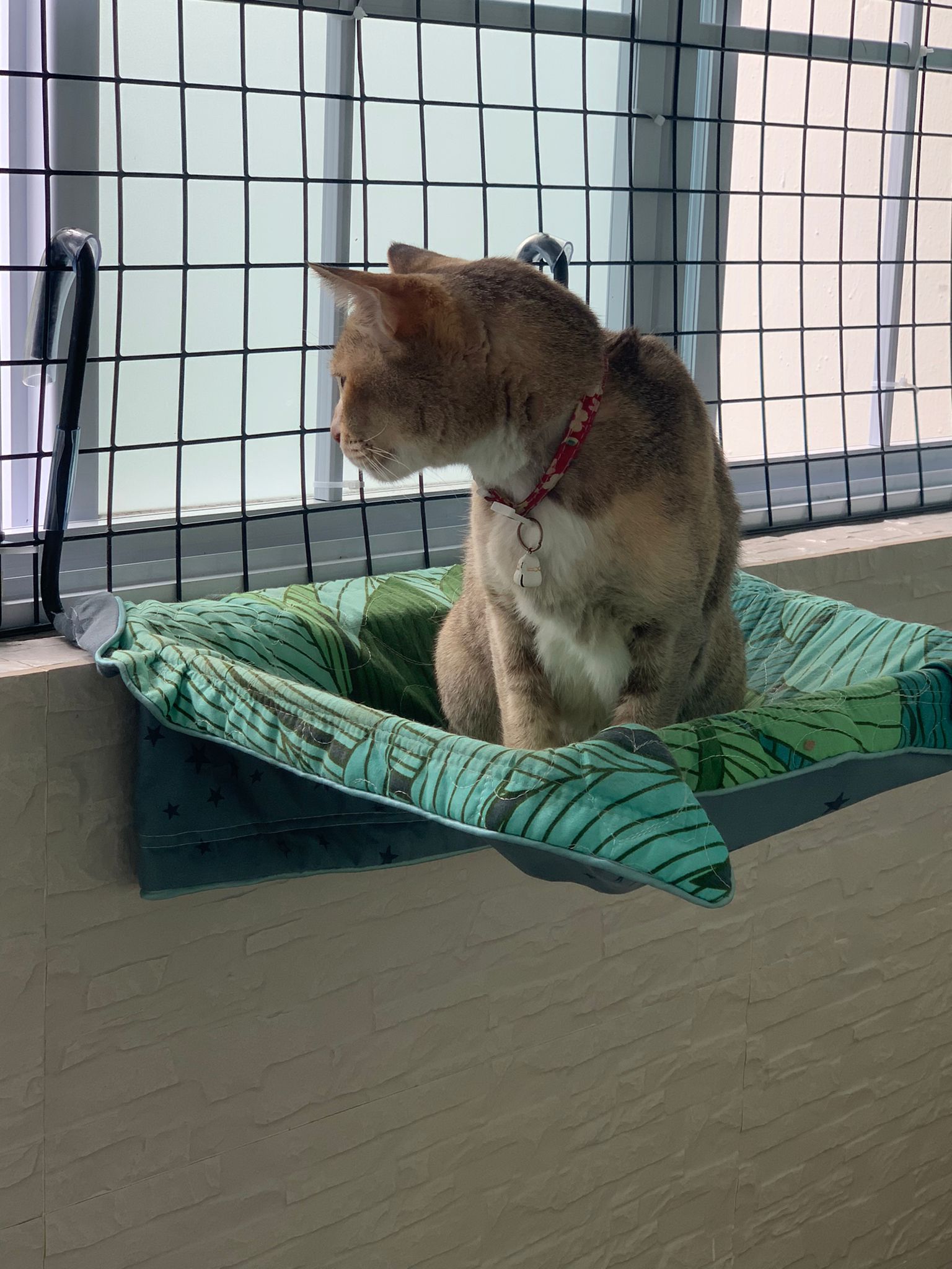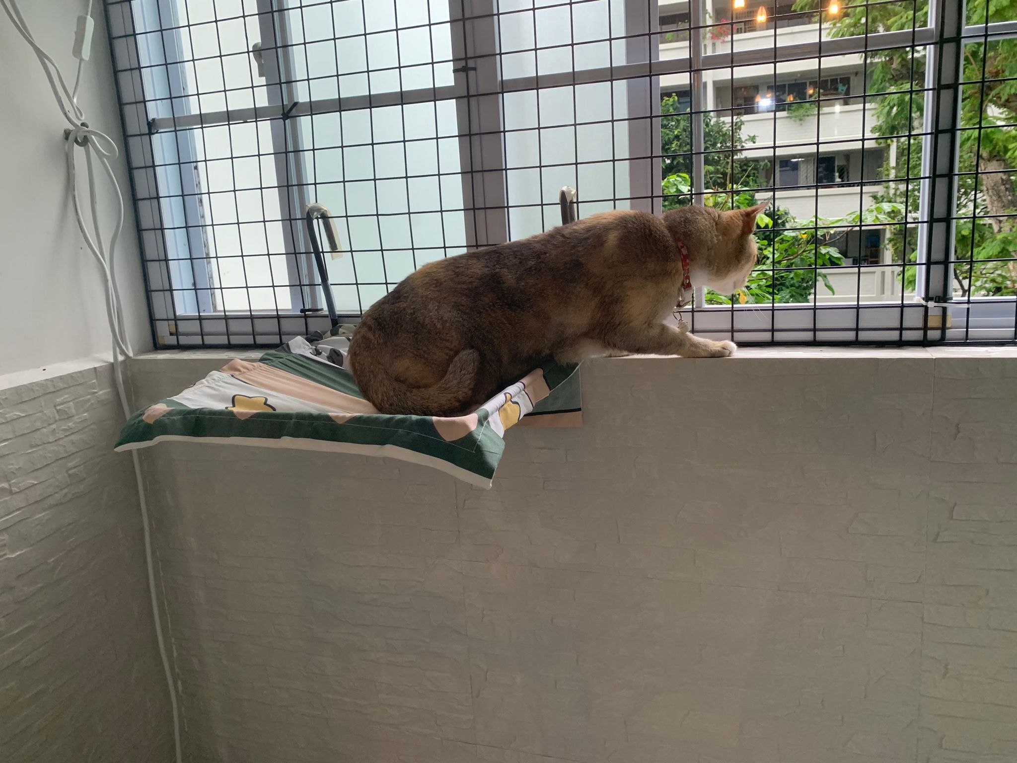 4.20am+: meow v loudly, can’t confirm is Tammy or Simba. I checked, Tammy is indeed walking on floor n looking at me. N I sit at sofa for some time no sound. Cos she like the hanging bed, I scare she is meowing out at the window