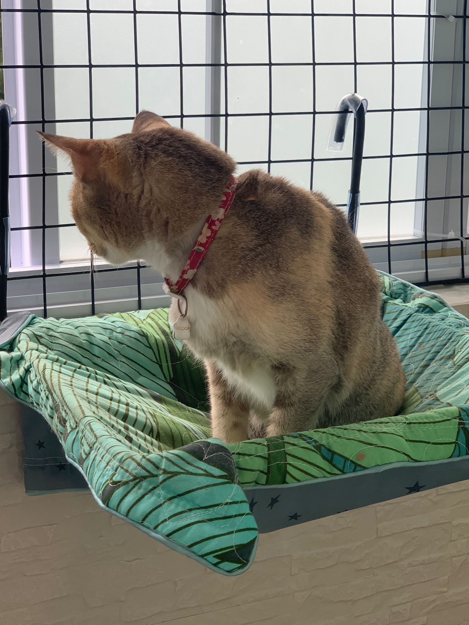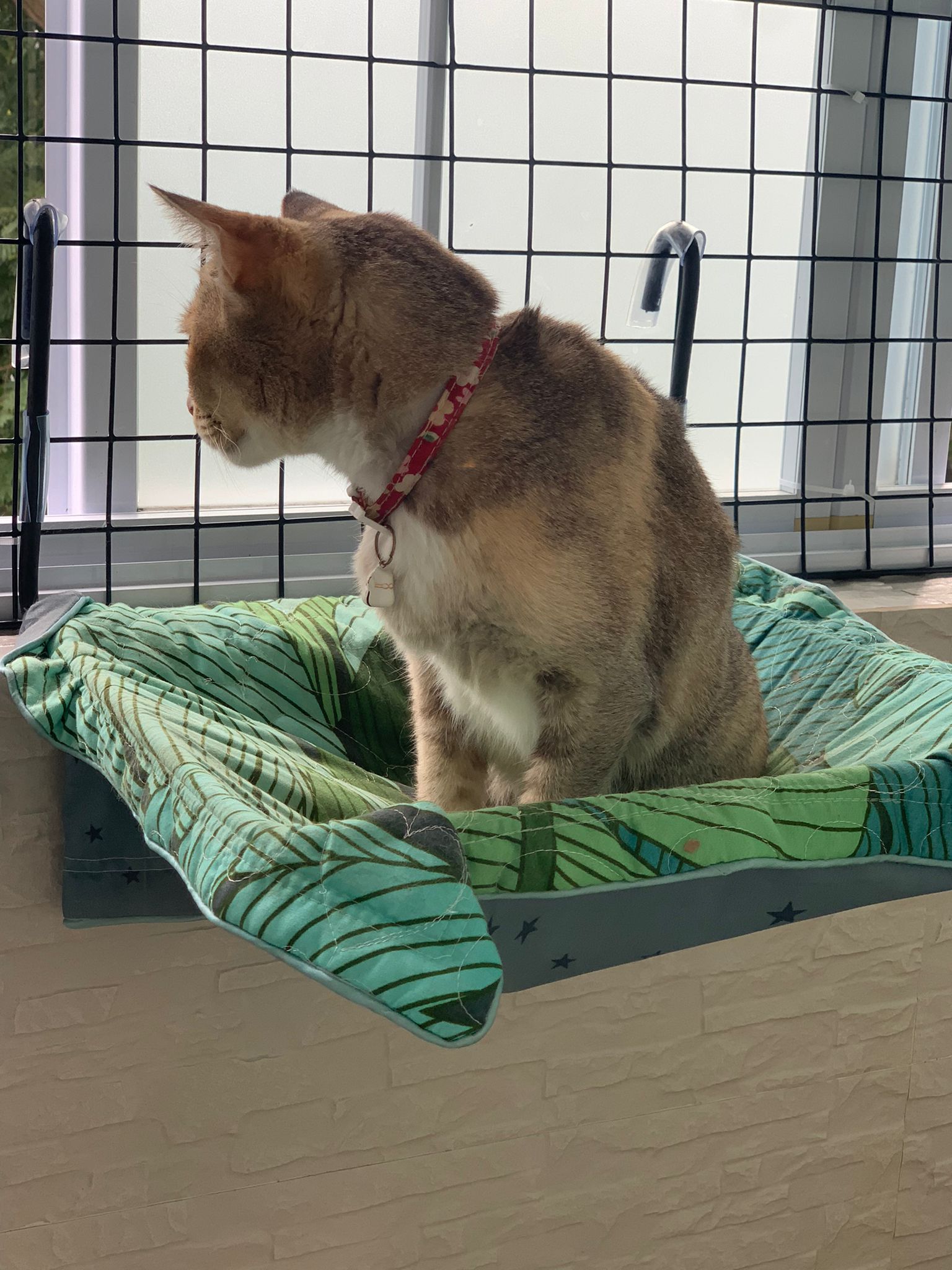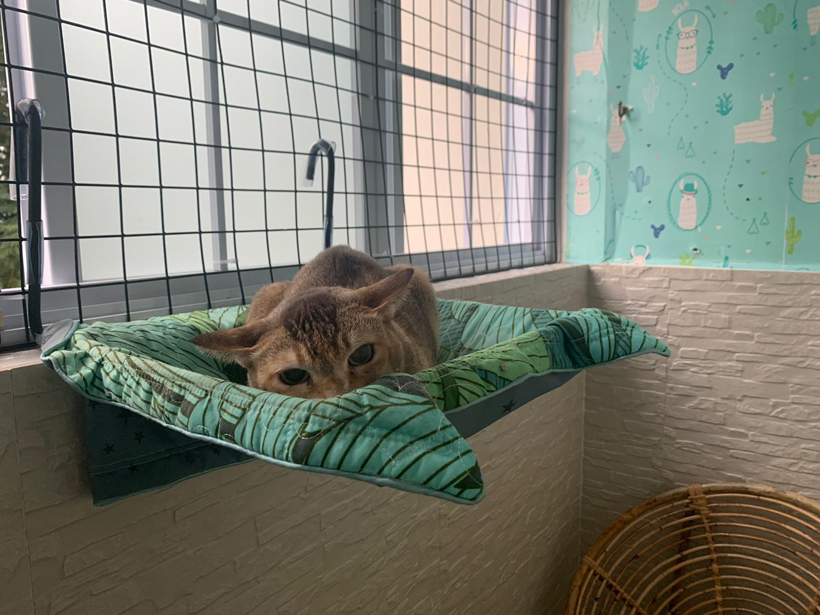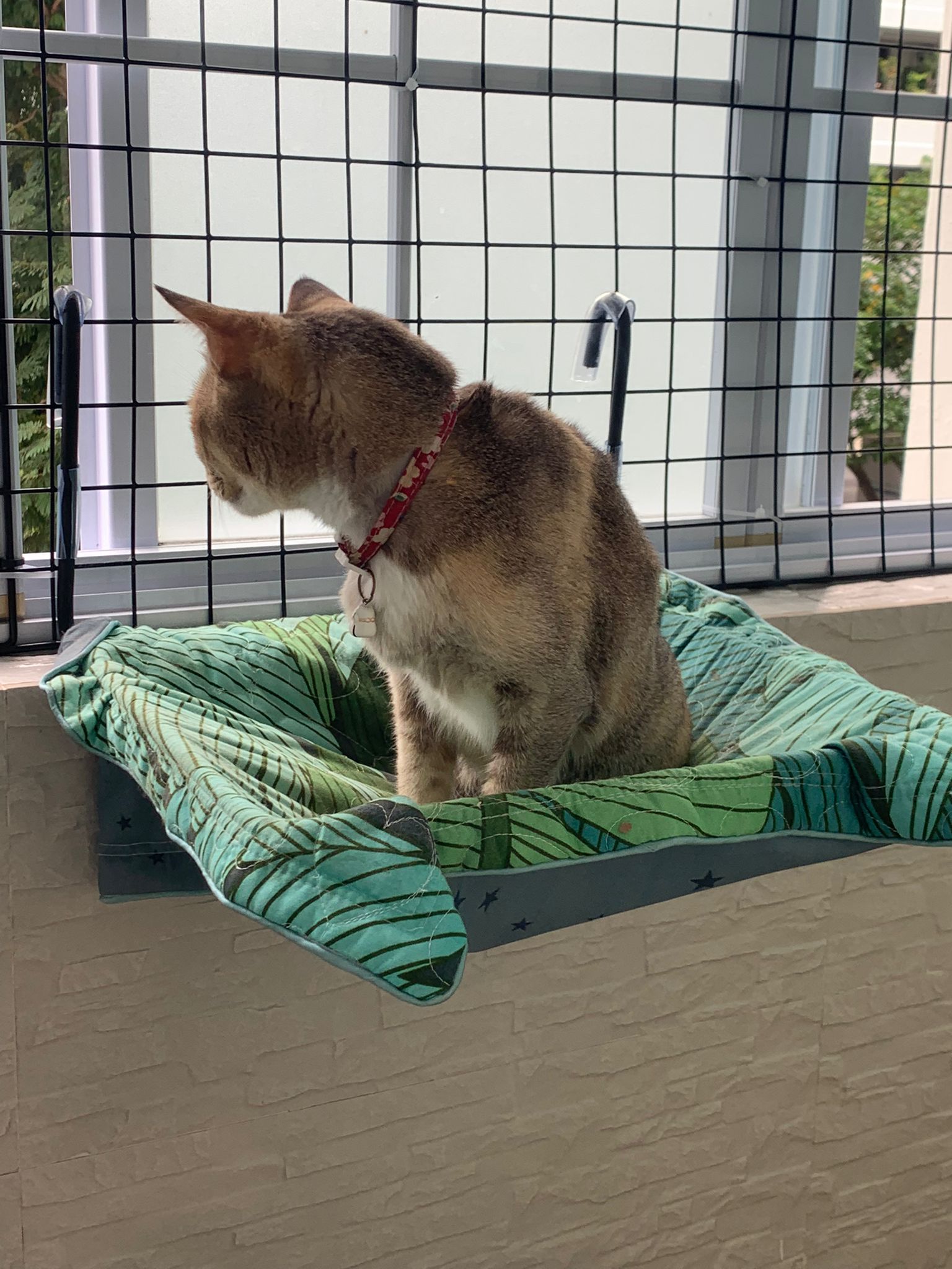 4.20am+: meow v loudly, can’t confirm is Tammy or Simba. I checked, Tammy is indeed walking on floor n looking at me. N I sit at sofa for some time no sound. Cos she like the hanging bed, I scare she is meowing out at the window