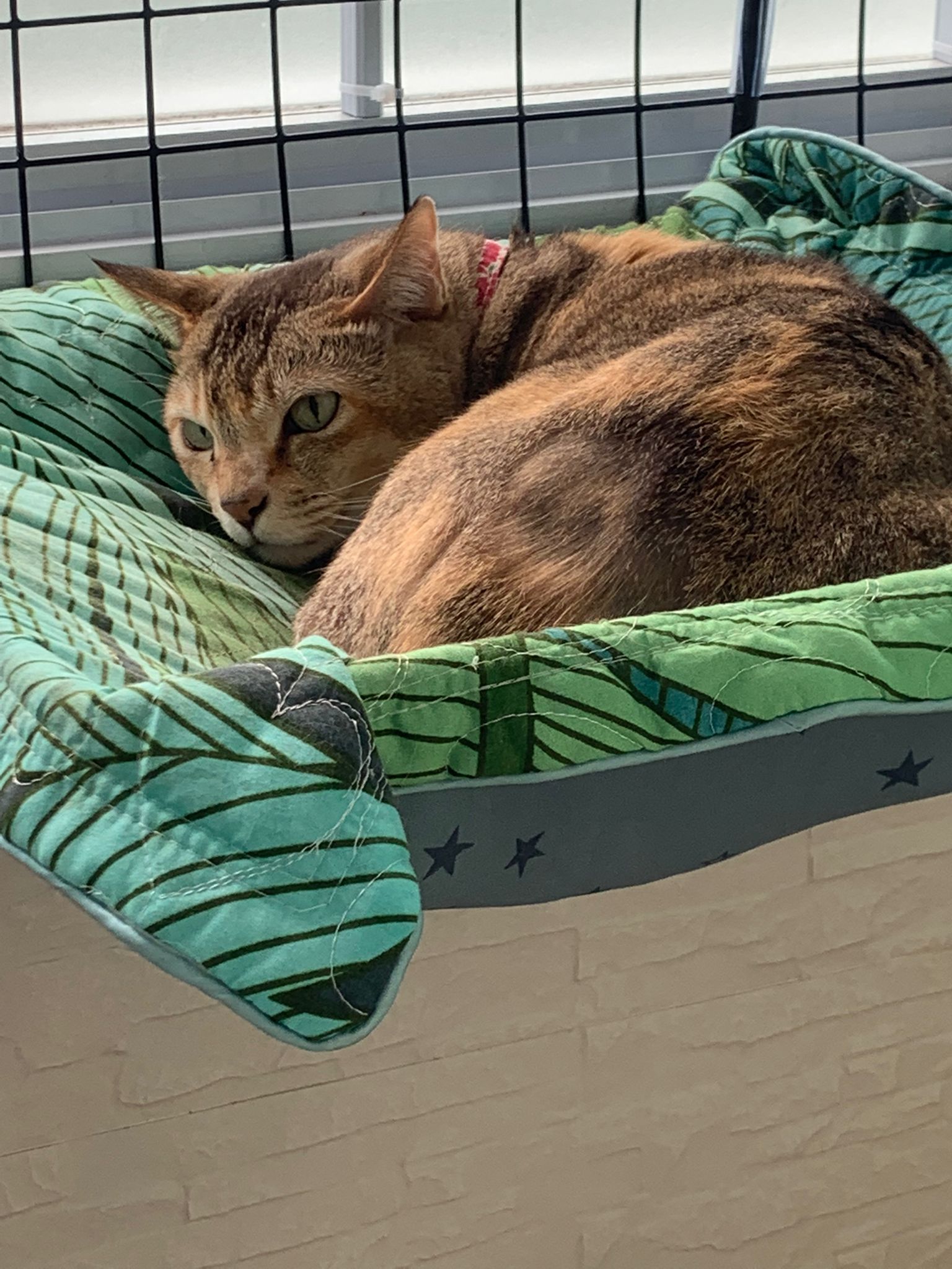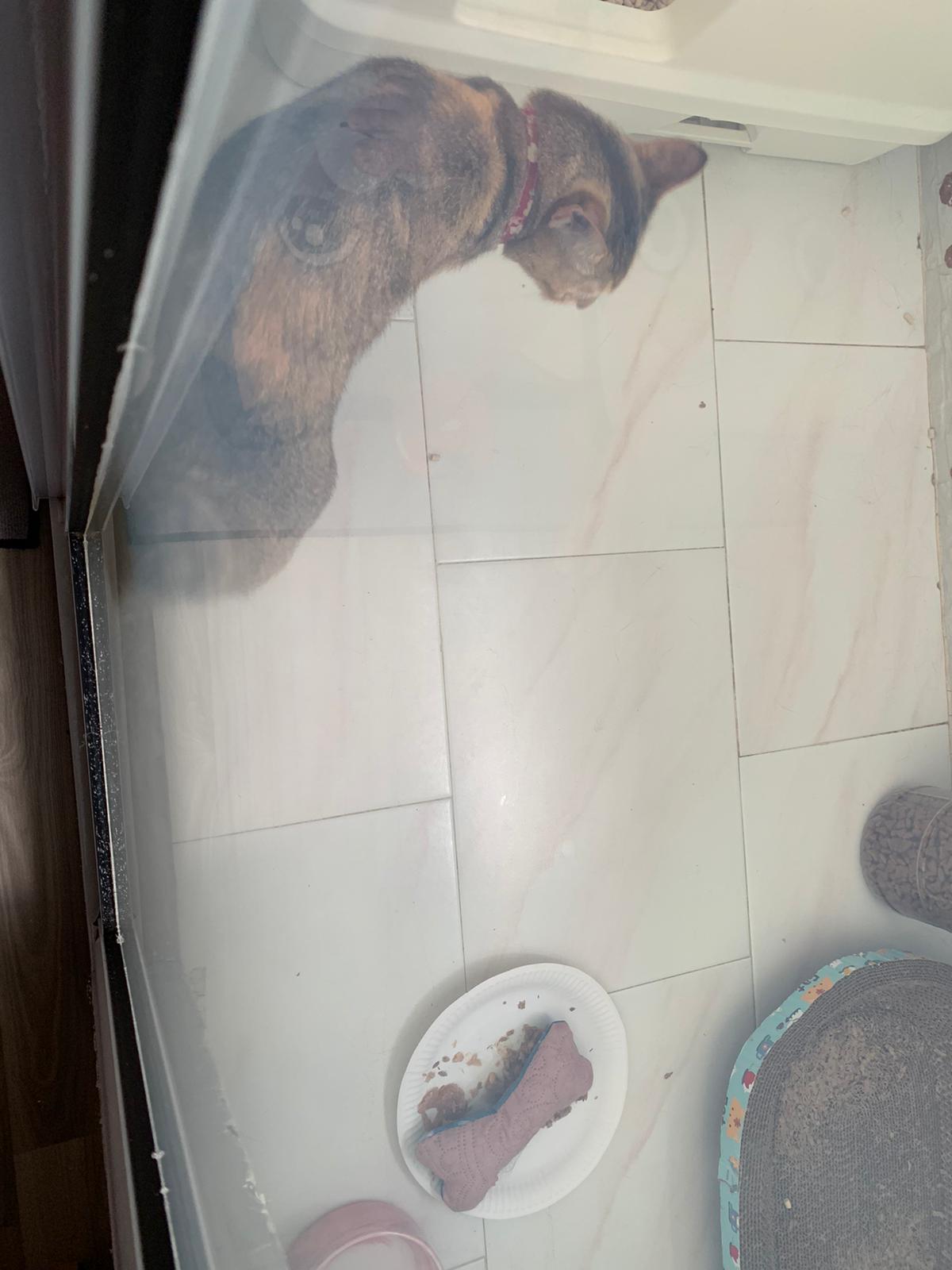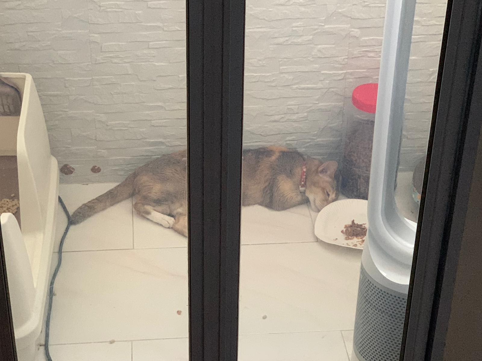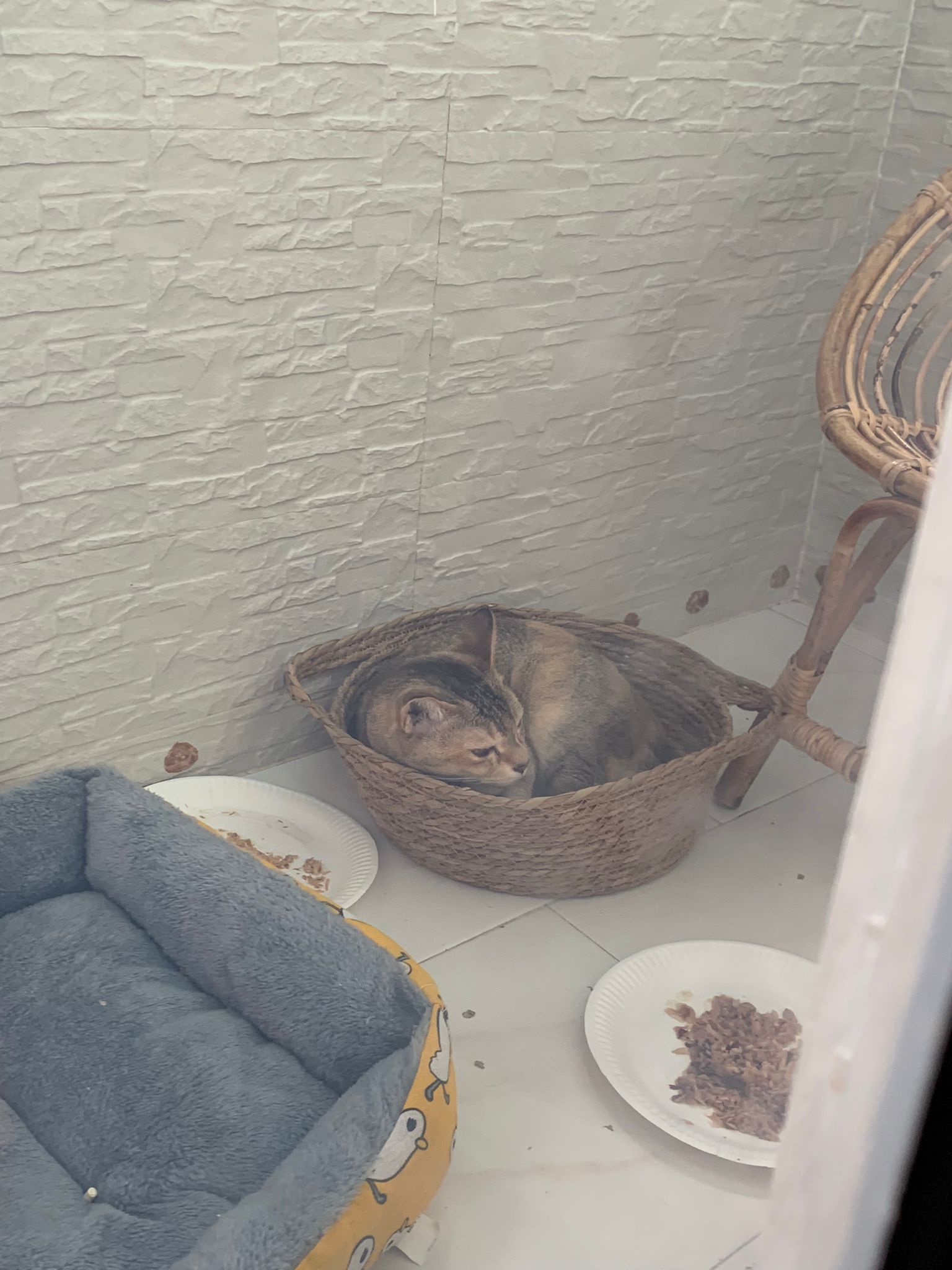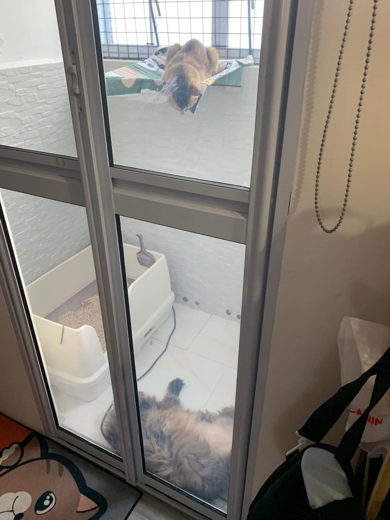 1230pm: when I’m back again, Tammy is on floor near door, surprisingly more calm but I don’t know … ha I want to open door top up kibble, maybe she ate kibble but she keep rubbing. Suddenly so calm? She choose basket to sleep in.
