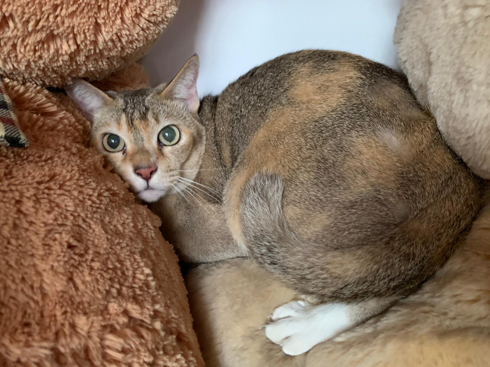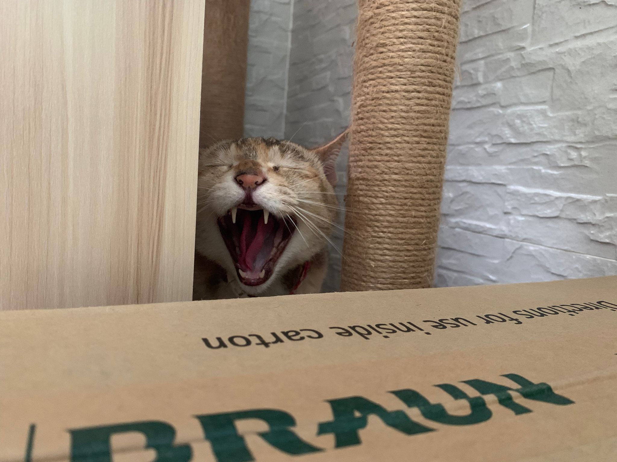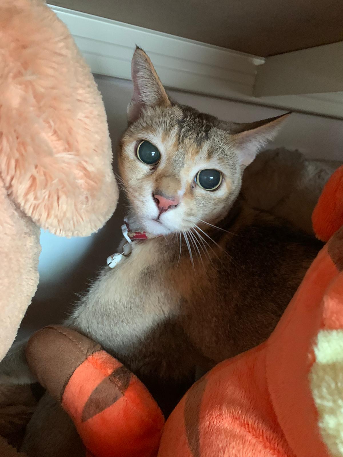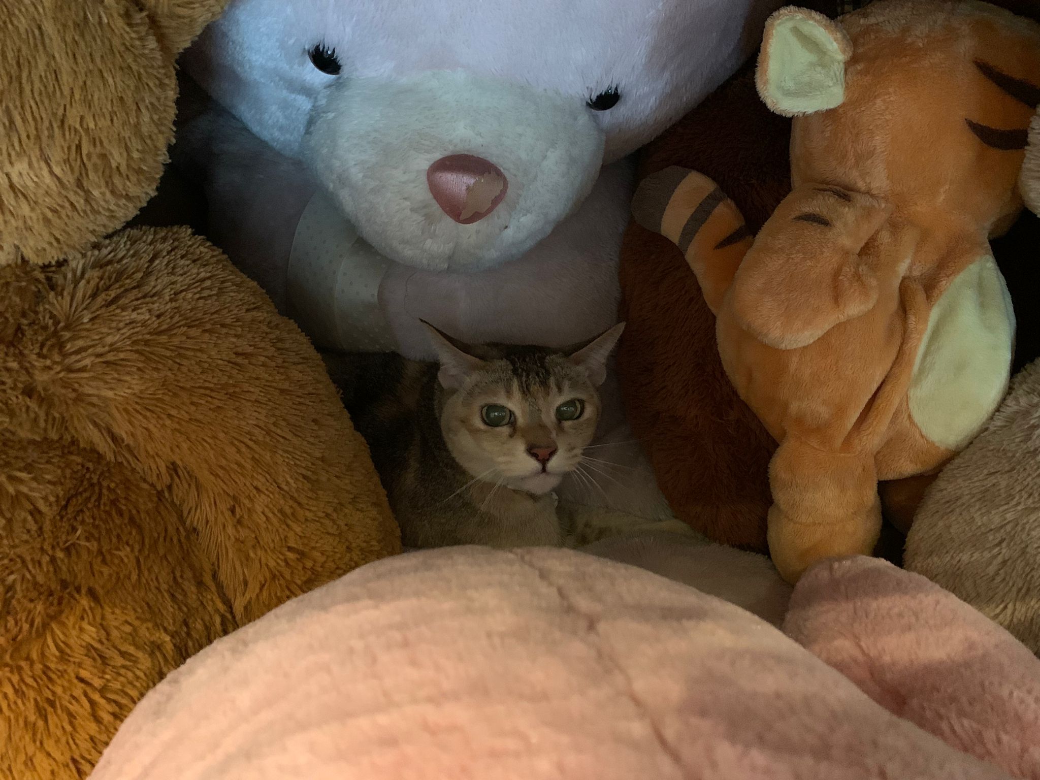Wa they play 躲猫猫 w me. I find Tammy for v long loh then she hiss me siak. this girl can’t predict properly. She hiss mama also but didn’t attack man.