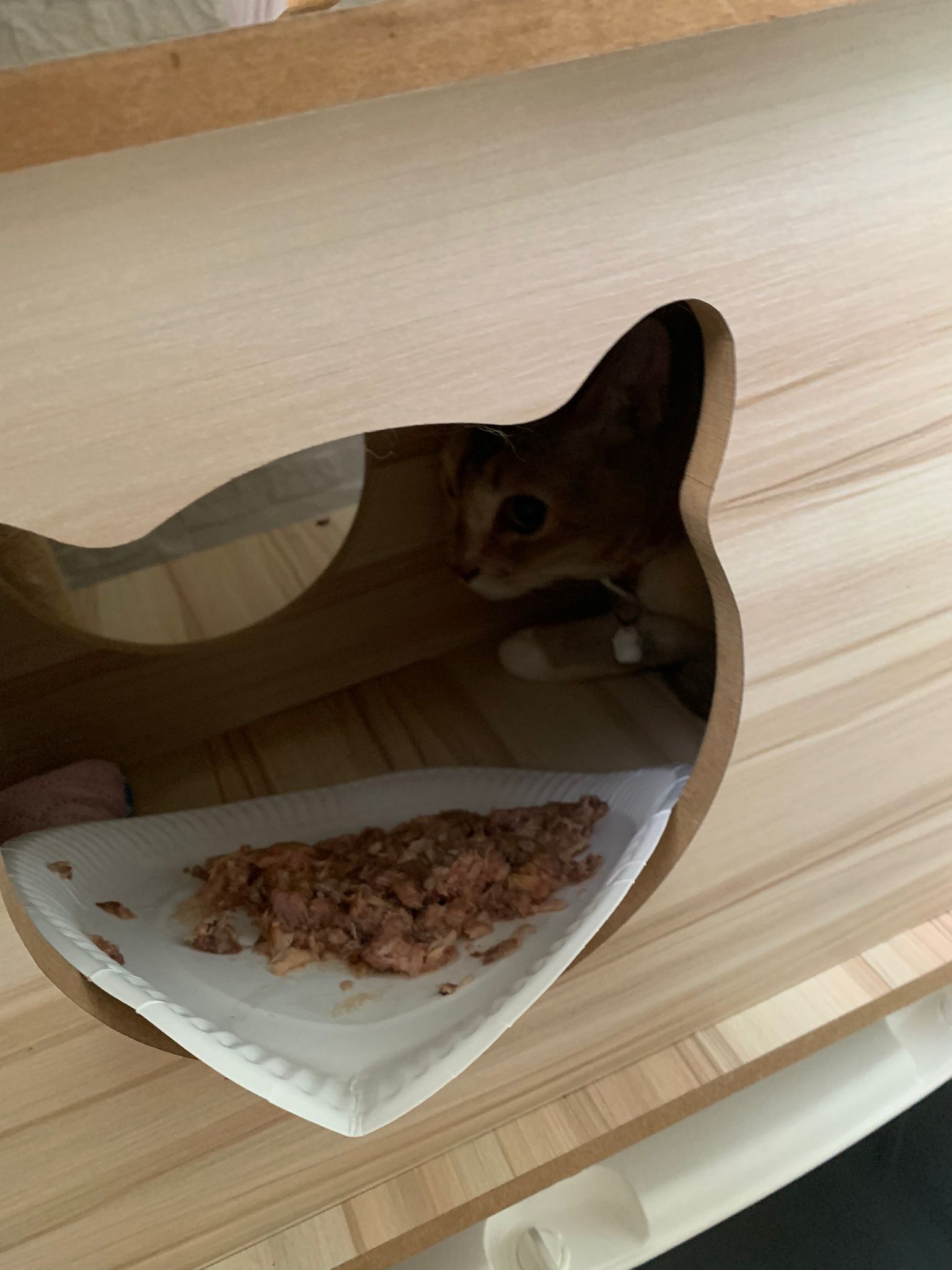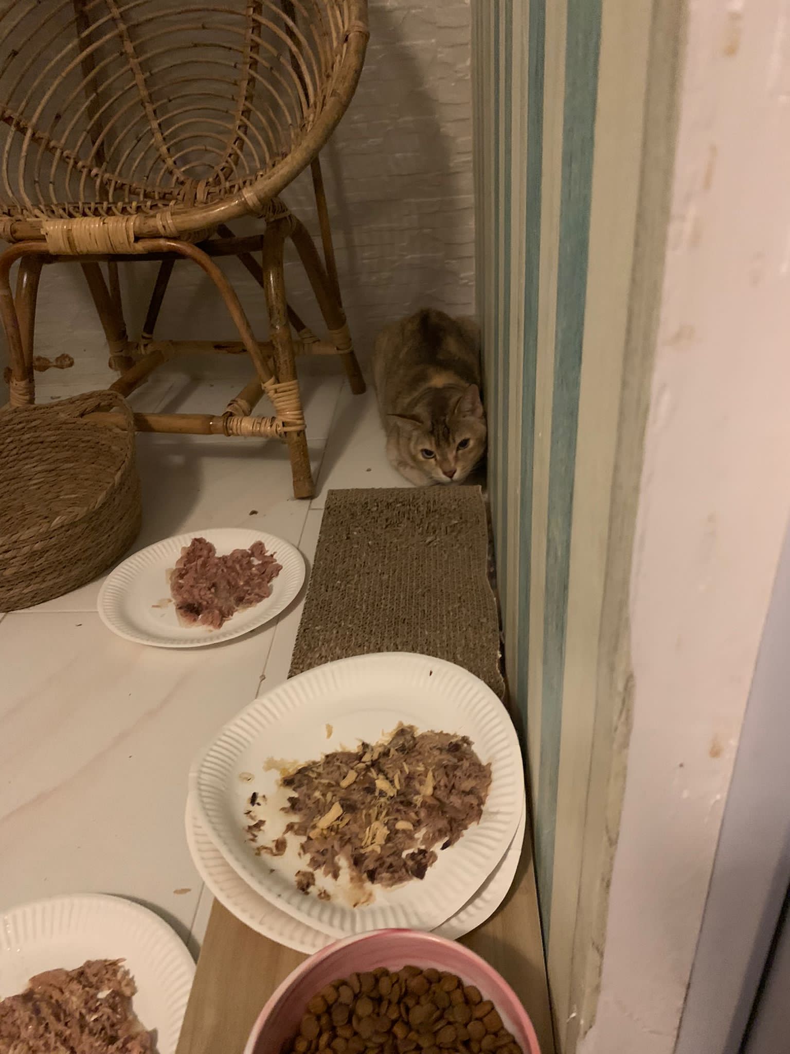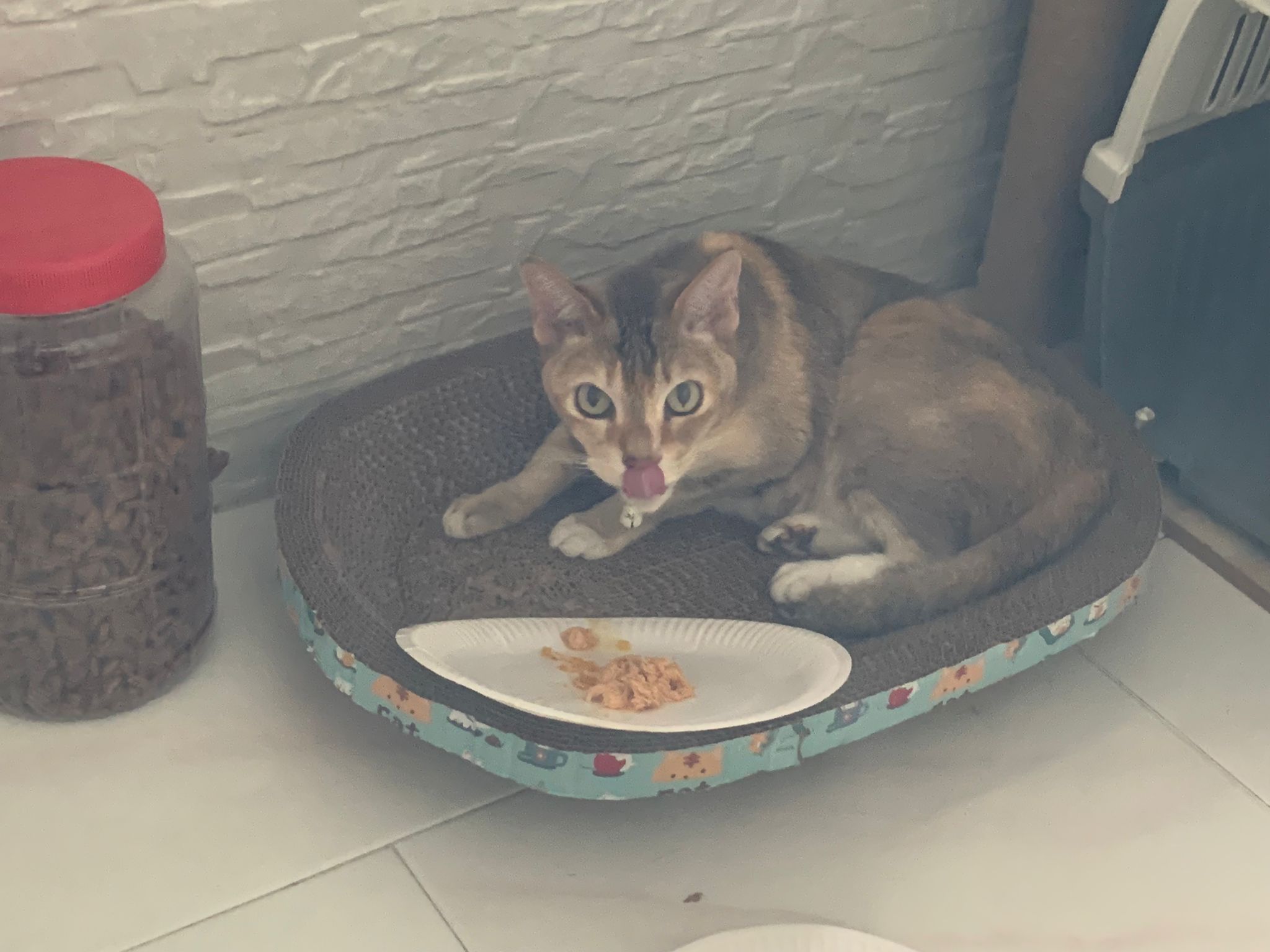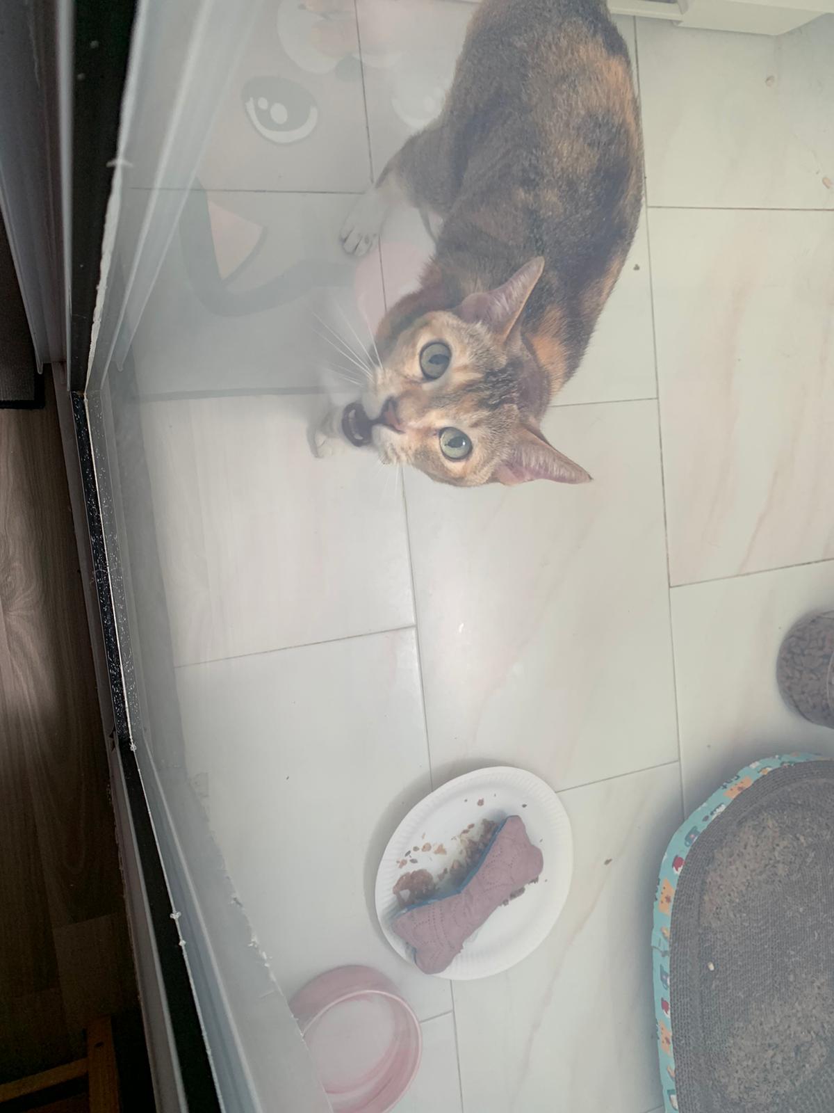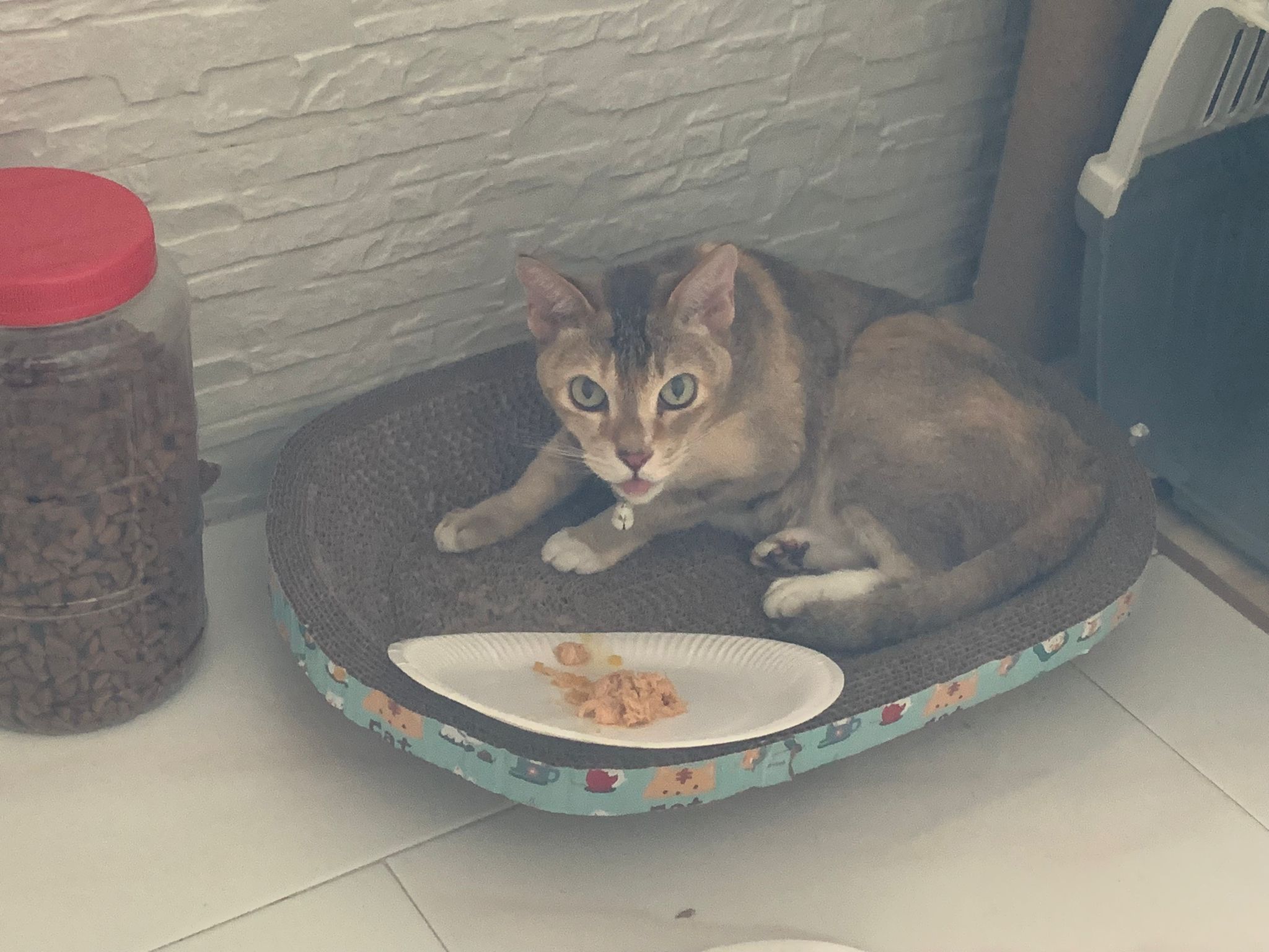 11Am+: I’m back from 5G, she pop her head out looking at me curiously leh. I talked to her n she hiss at leh. food didn’t touch much.