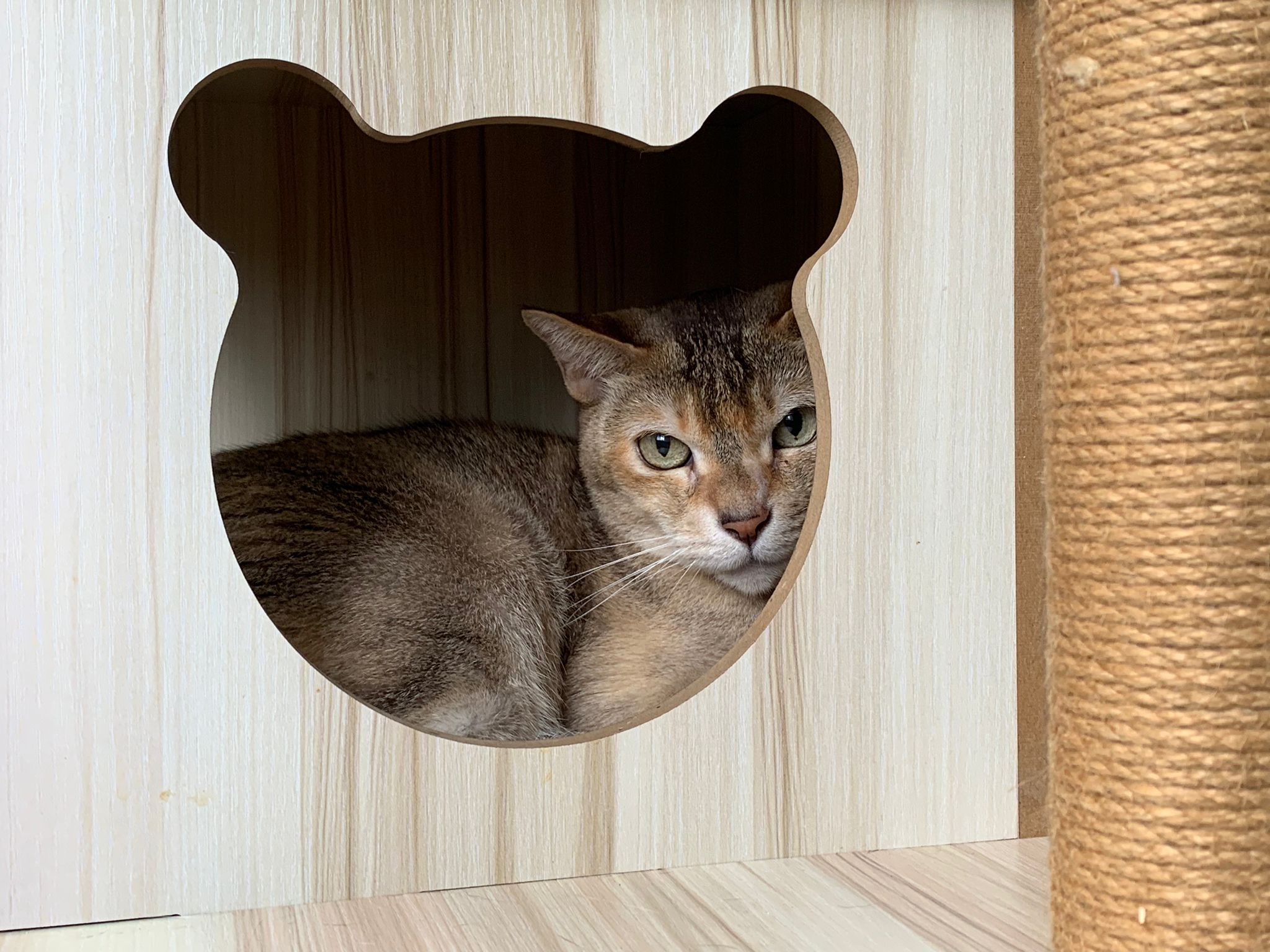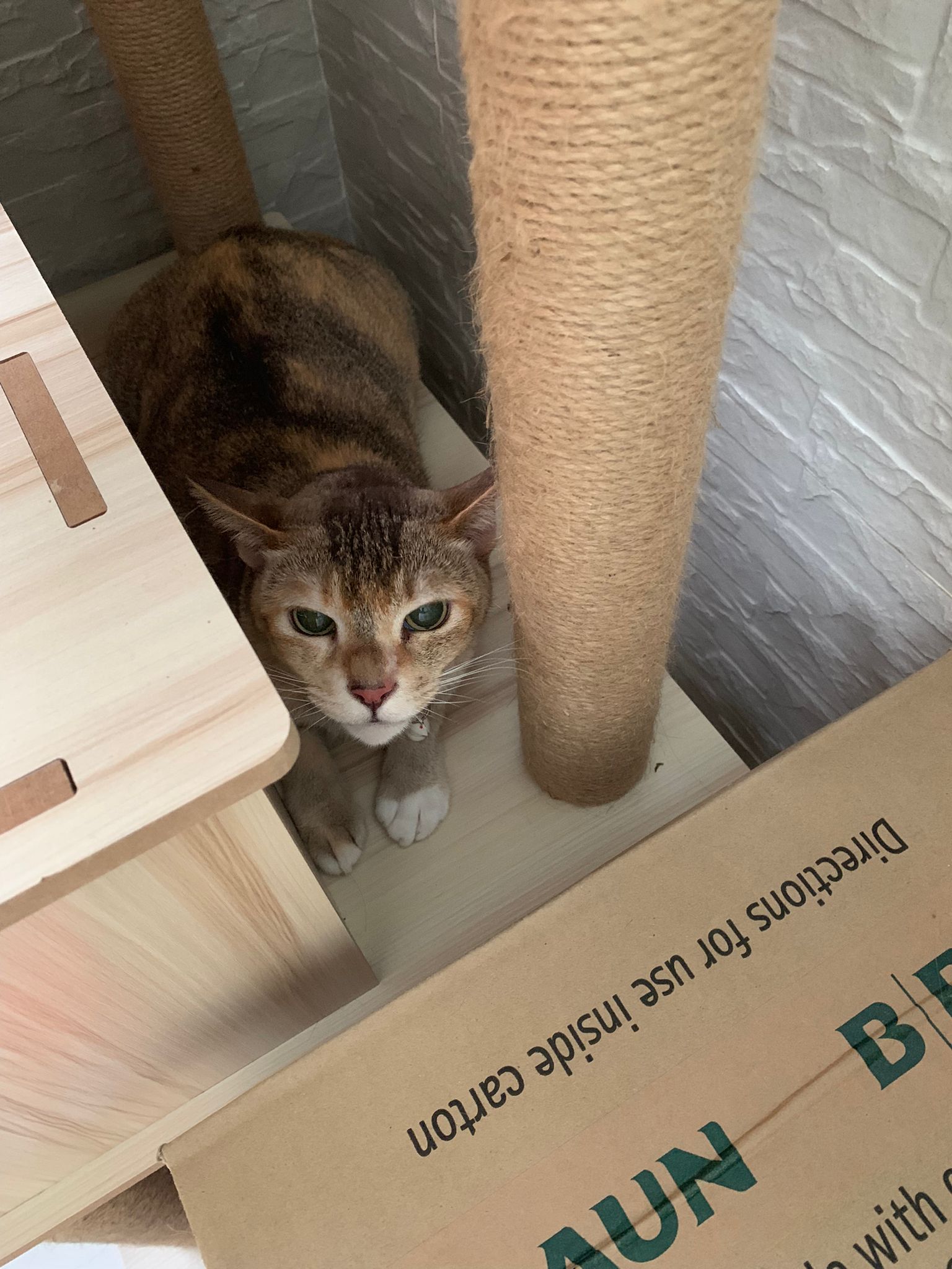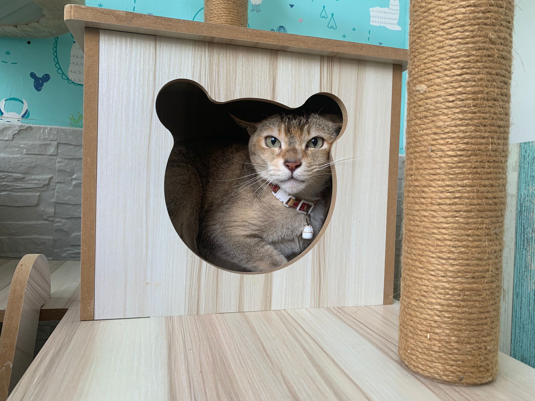 As usual, i can sayang her normal ok but once merge room w Bella she will change. Aiya she is behind the cat tree I only put phone to take photo of her she whack me.