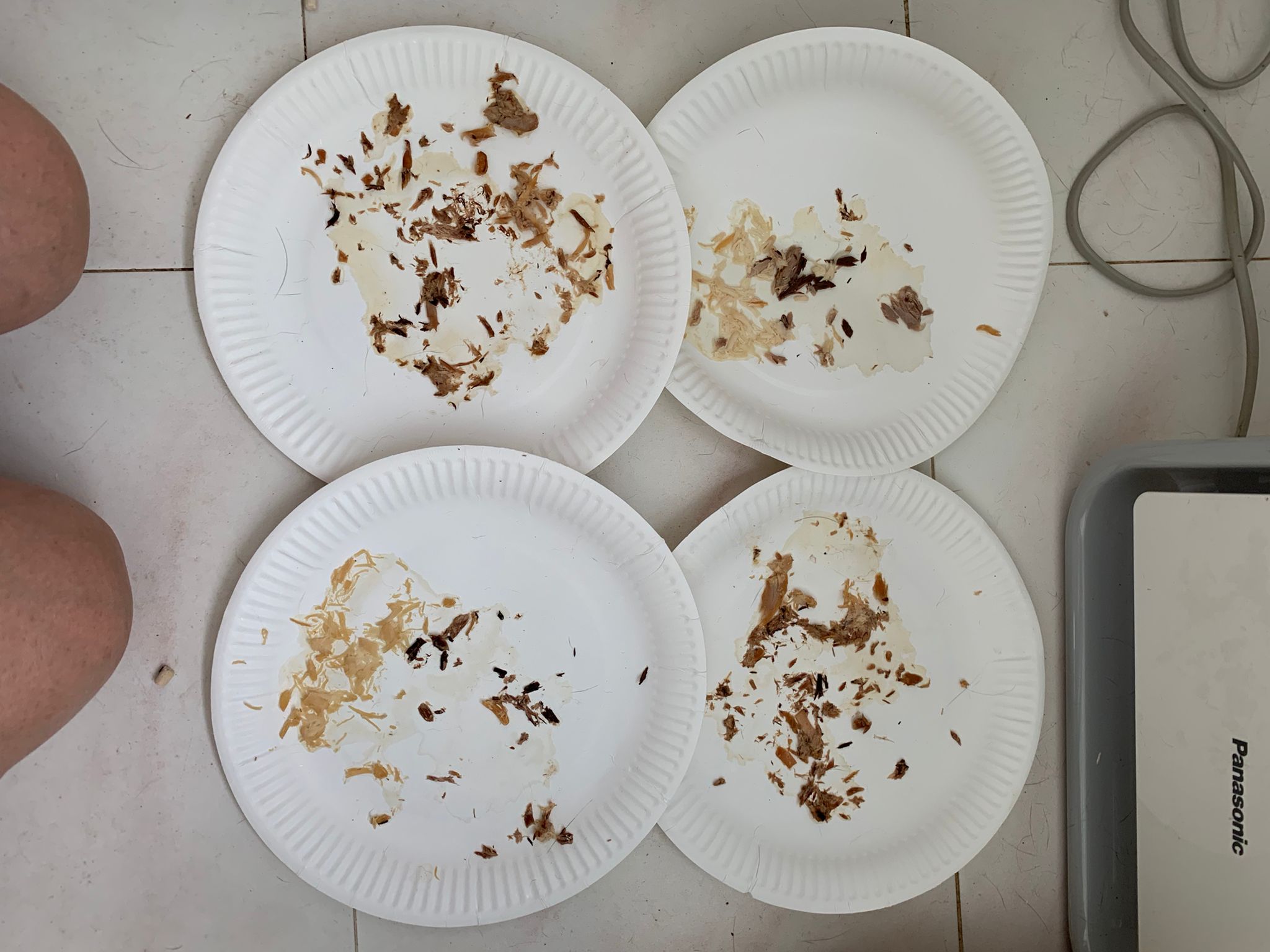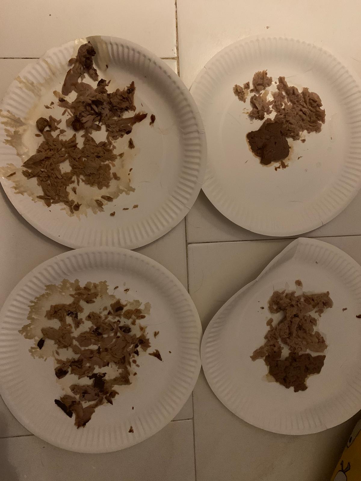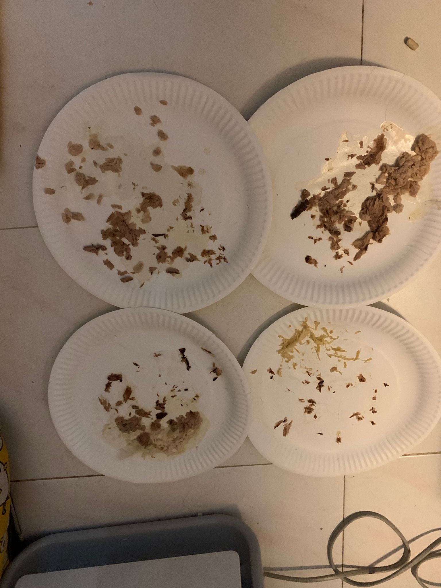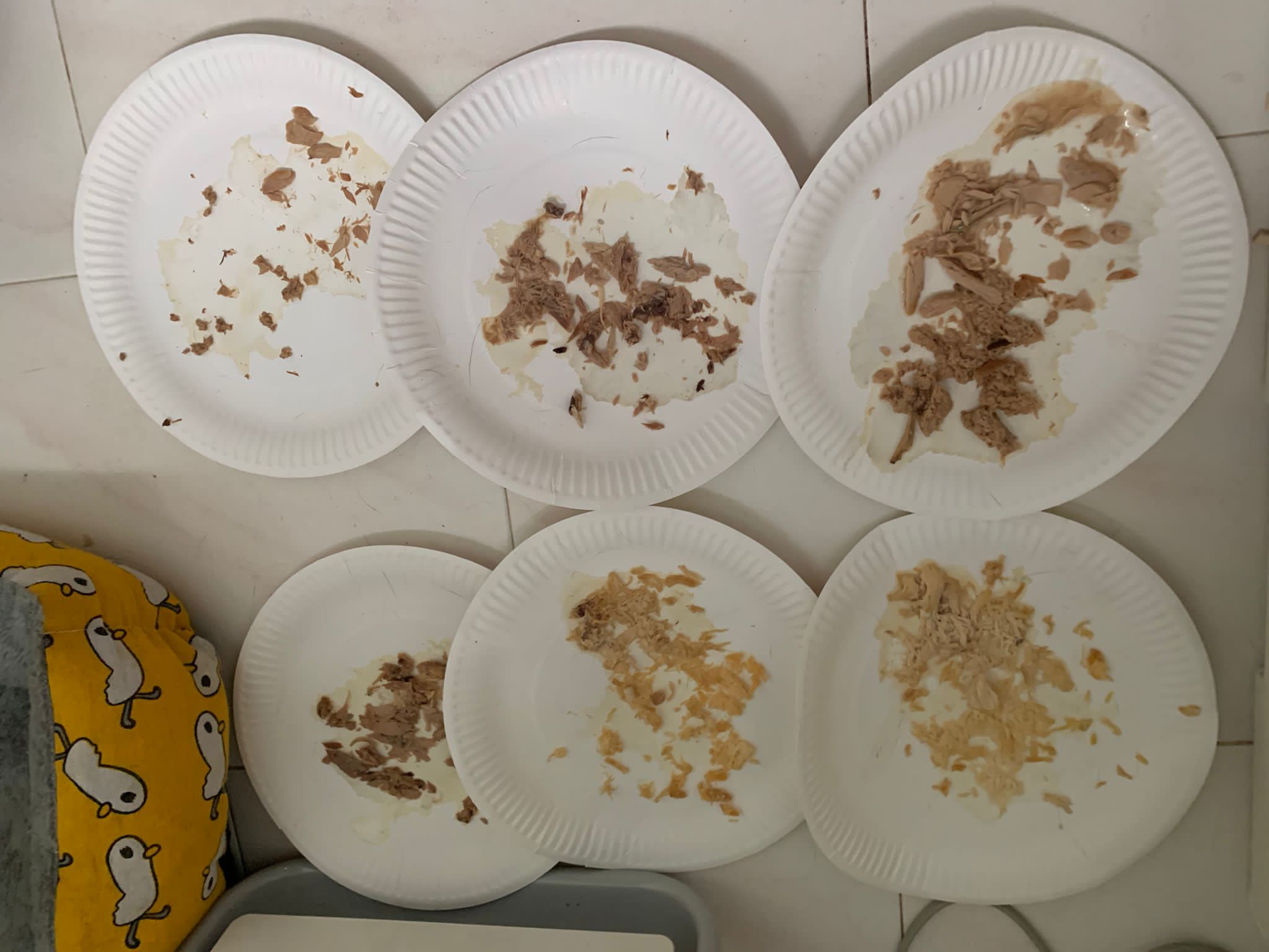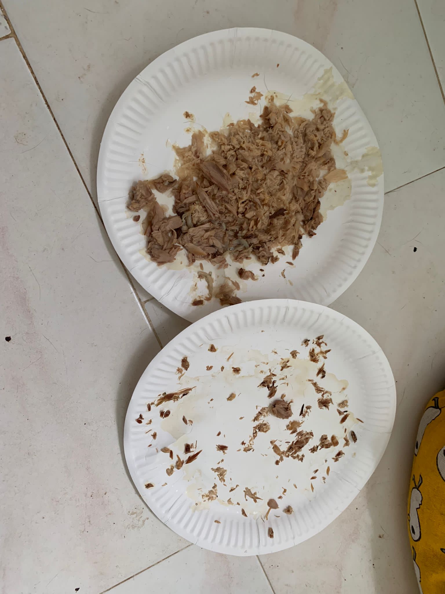 1030am: wa all plates almost finish. So yesterday combo got clear. kibble also got eat so far didn’t skip any round of top up. means they remember me la, they got eat.