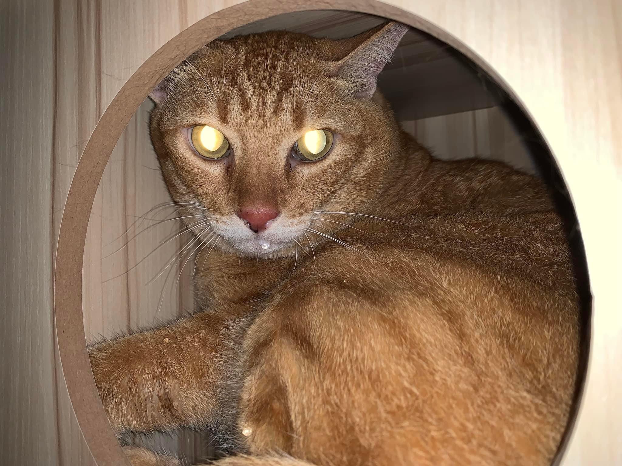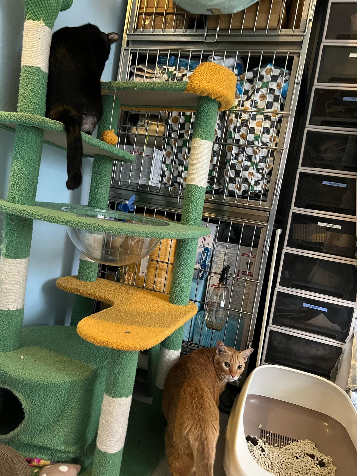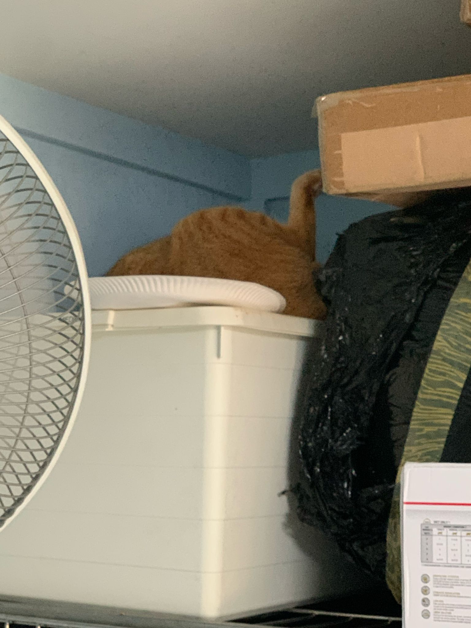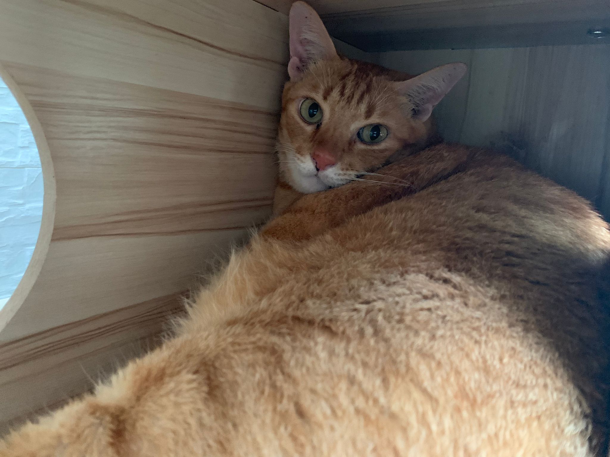 He is out and up on cat tree. Sayang her. Told him be good boy but I can’t give them more snack today the poo so bad