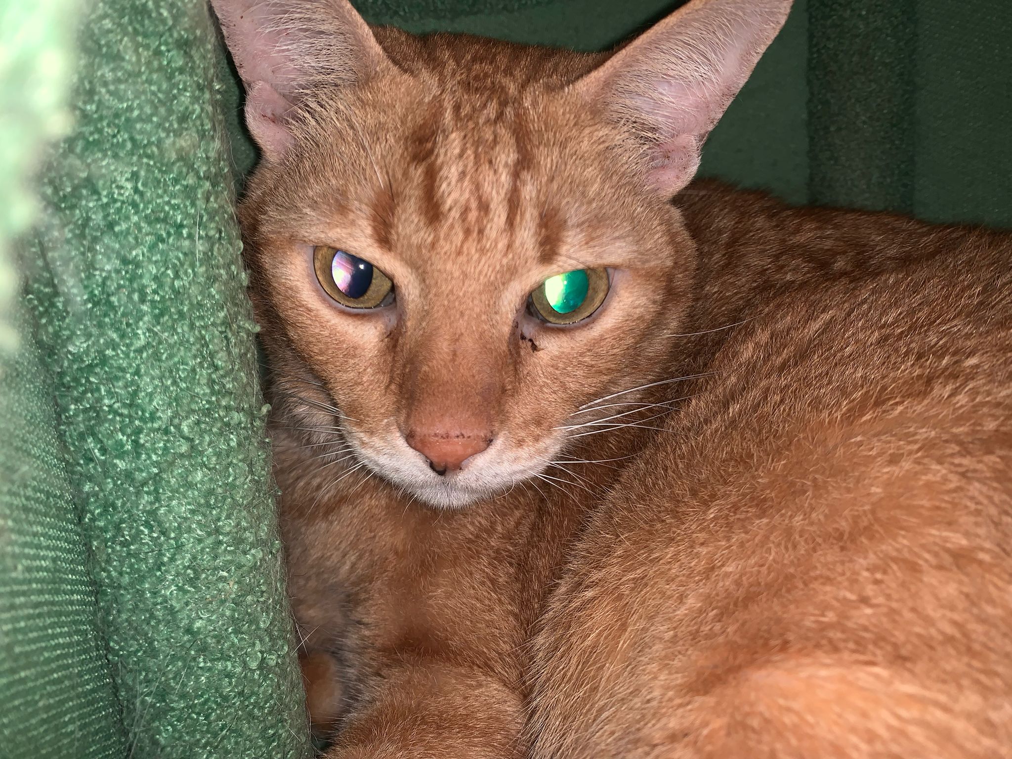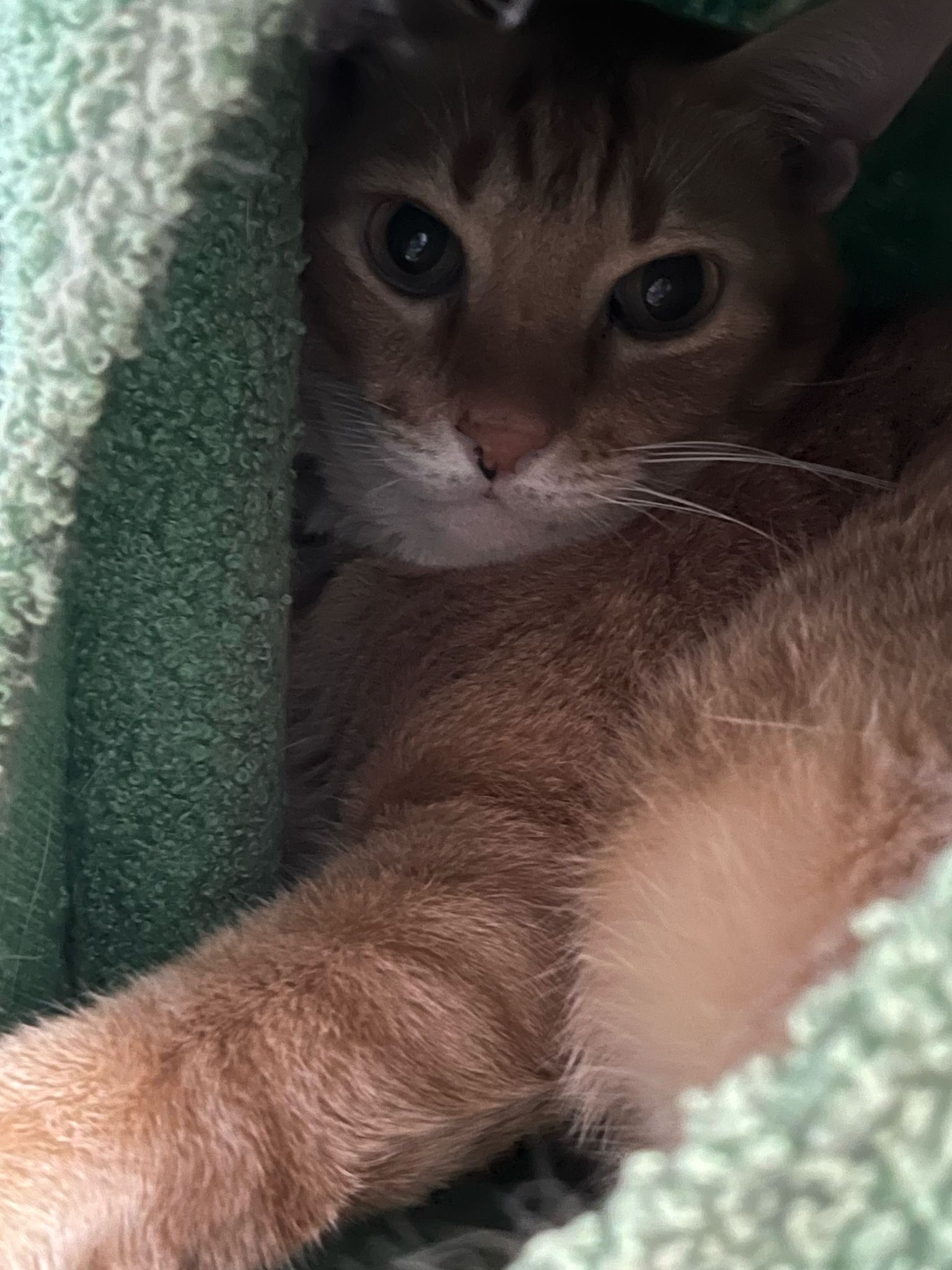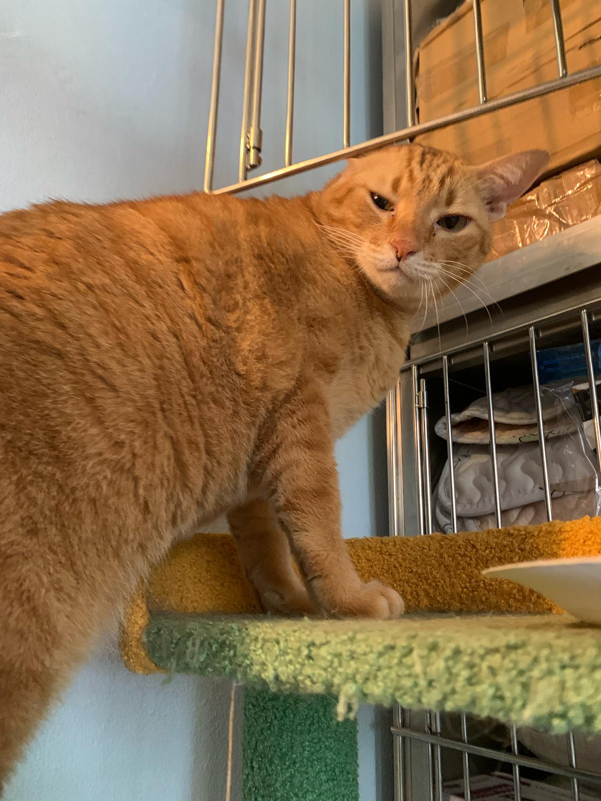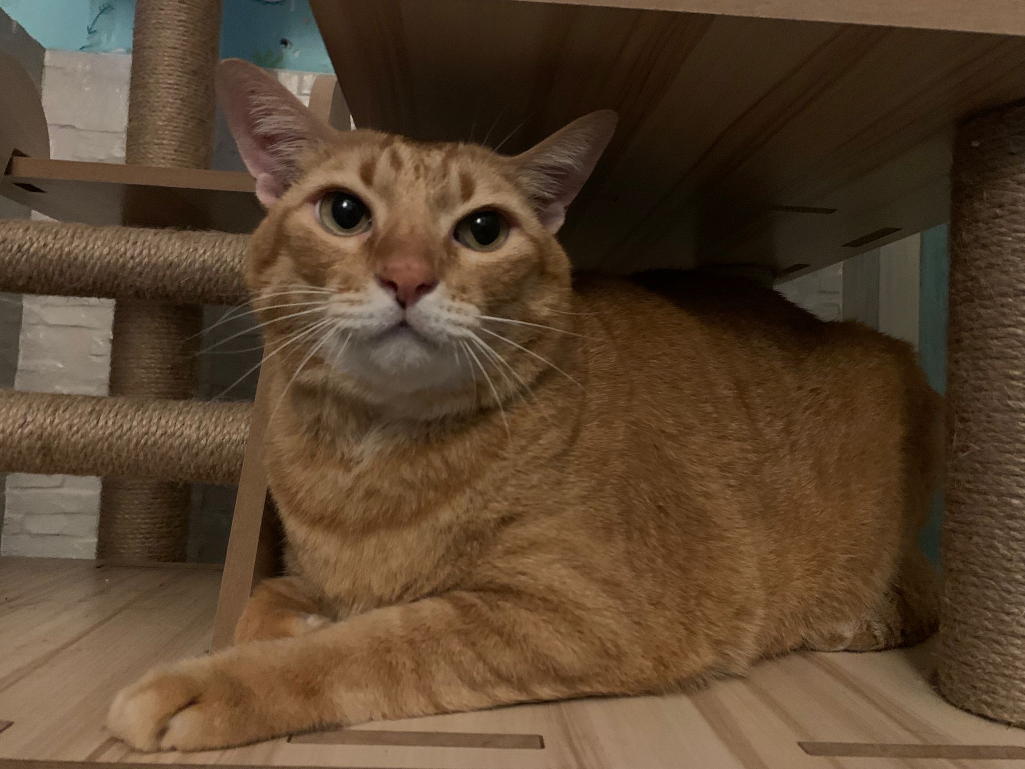 He is out and up on cat tree. Sayang her. Told him be good boy but I can’t give them more snack today the poo so bad