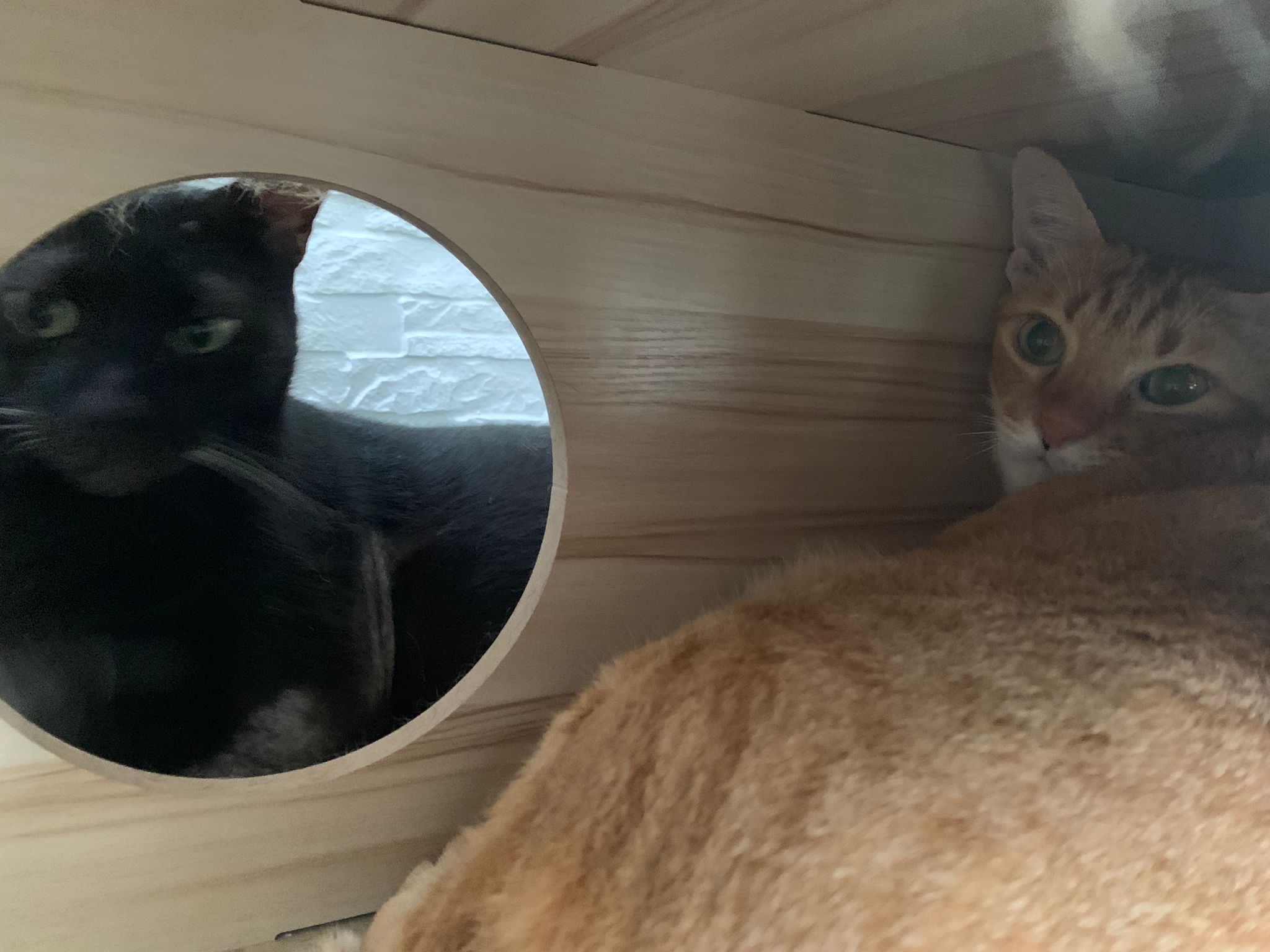 Got one point The 2 of them squeeze in the cat condo hole to rest tgt.