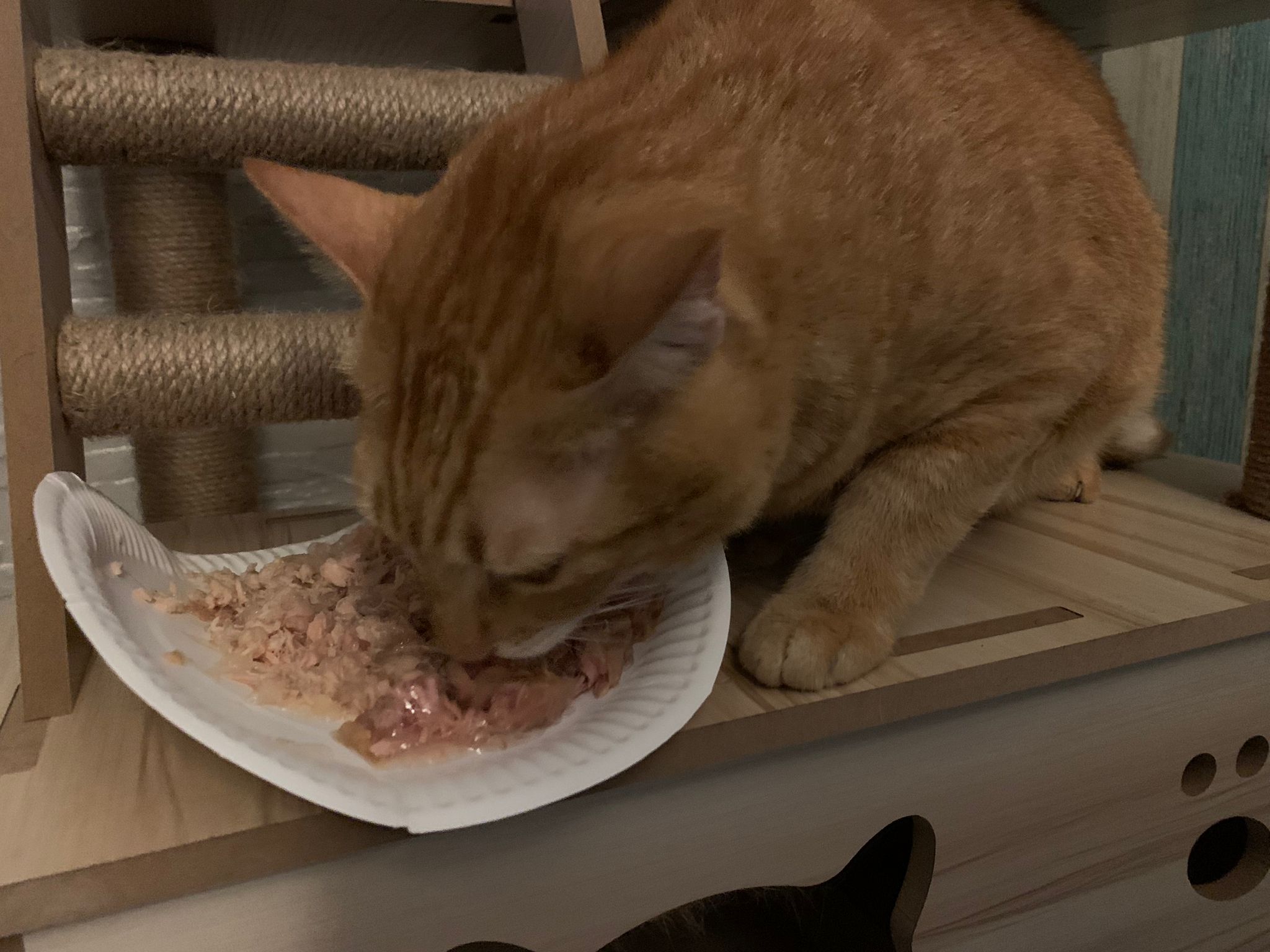 4pm: They confirm like tuna w salmon, both plates eaten, I serve another serving.