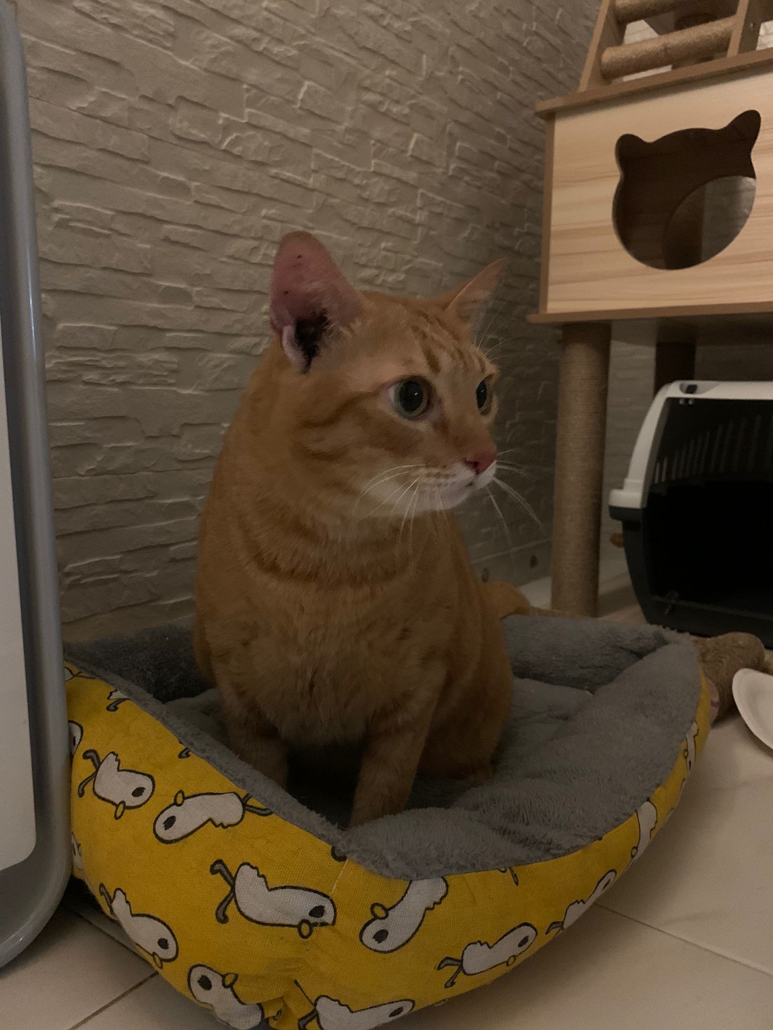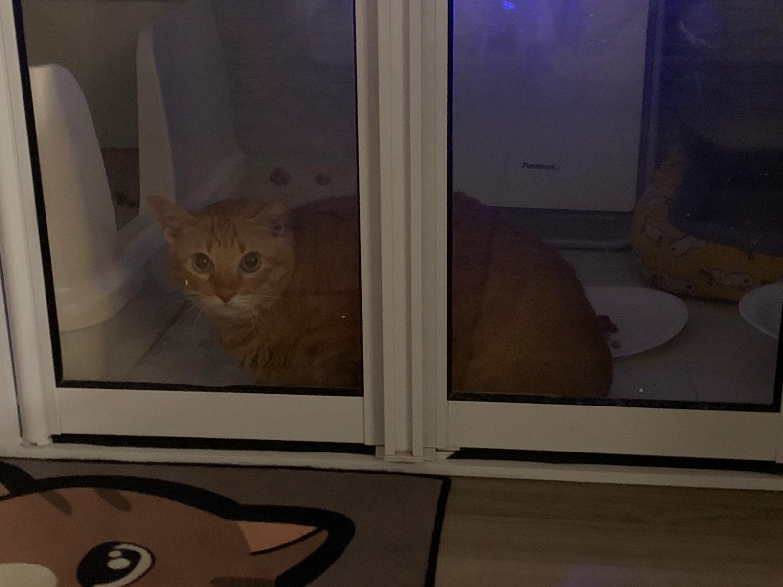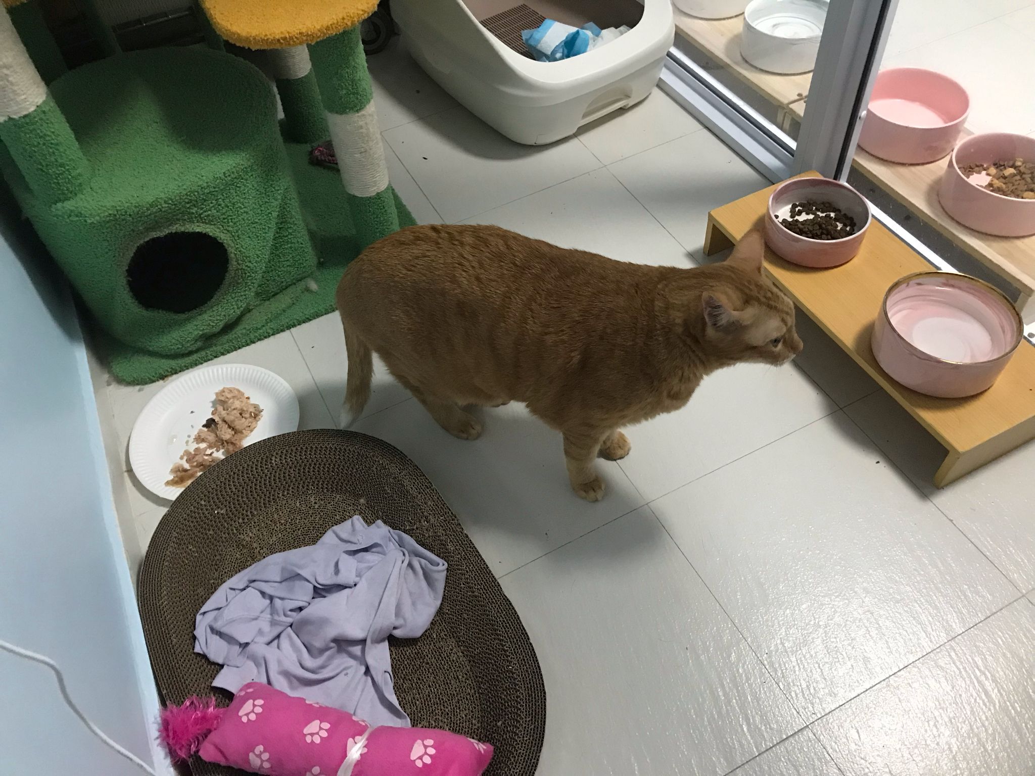 One point when I went in without my phone, he is out again I sayang pat him and belly rub him loh. Ha he want food.