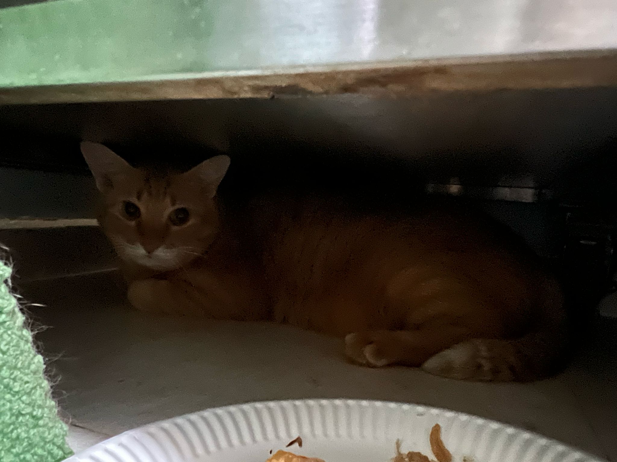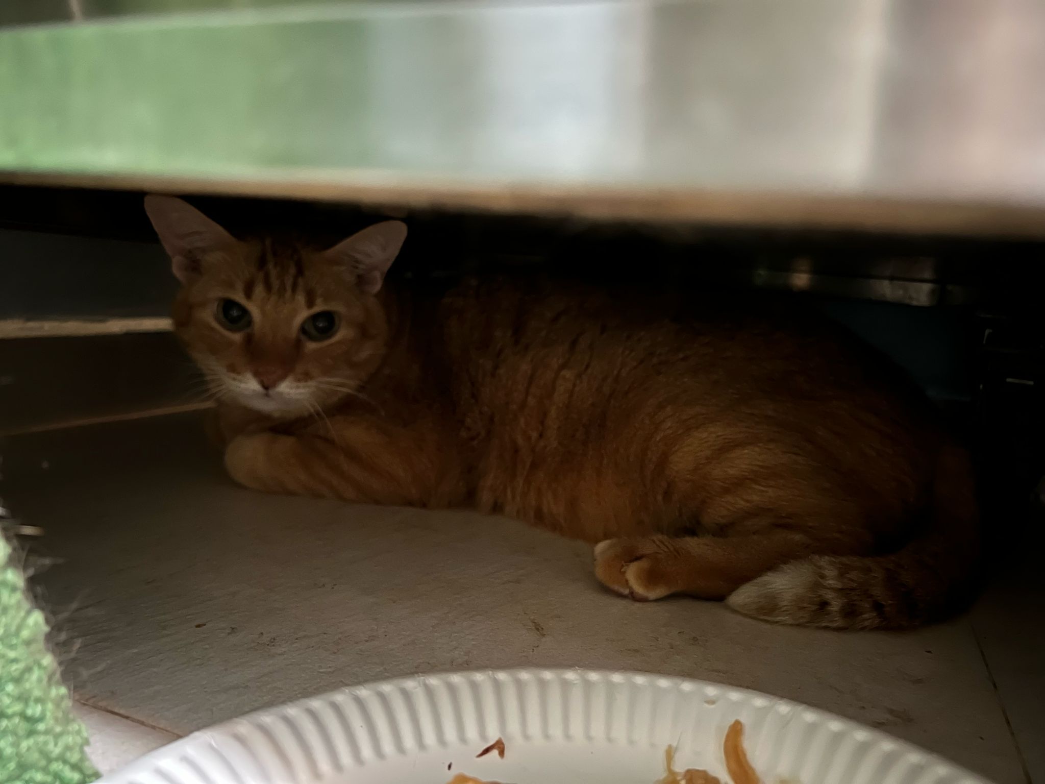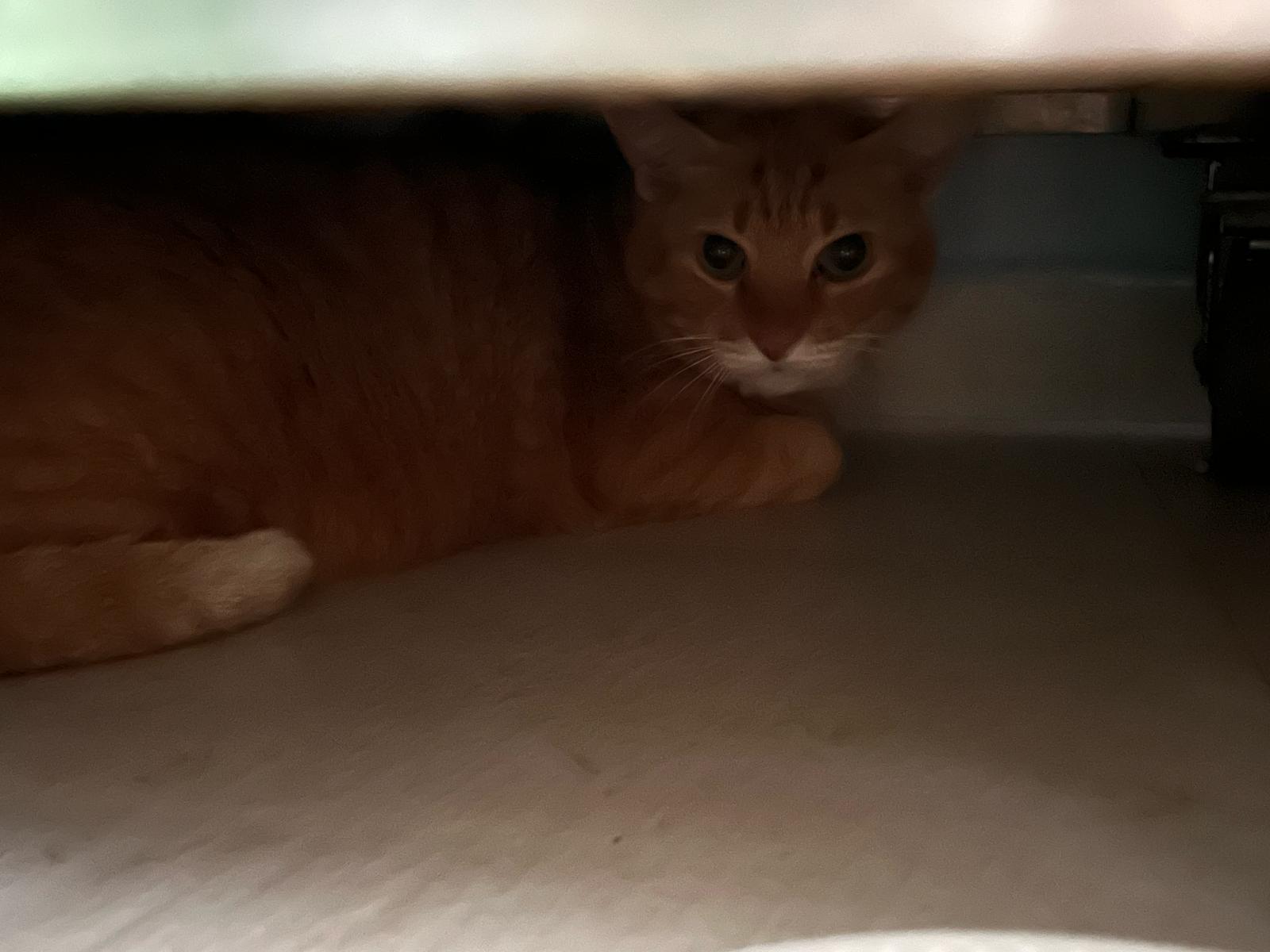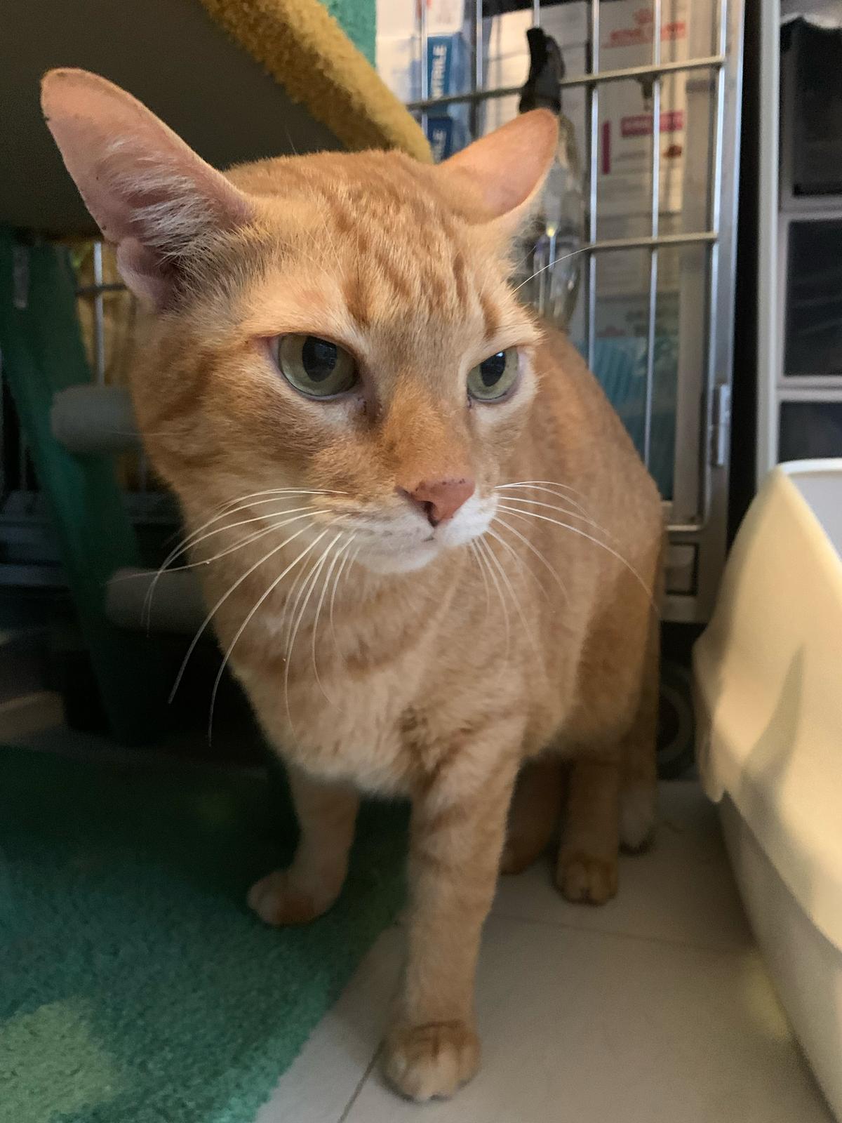11.00am: enter 猫房. First to weigh. 7.33kg. Lose 990g from feb 2023. go straight to under cage, can’t even take any pic of him.