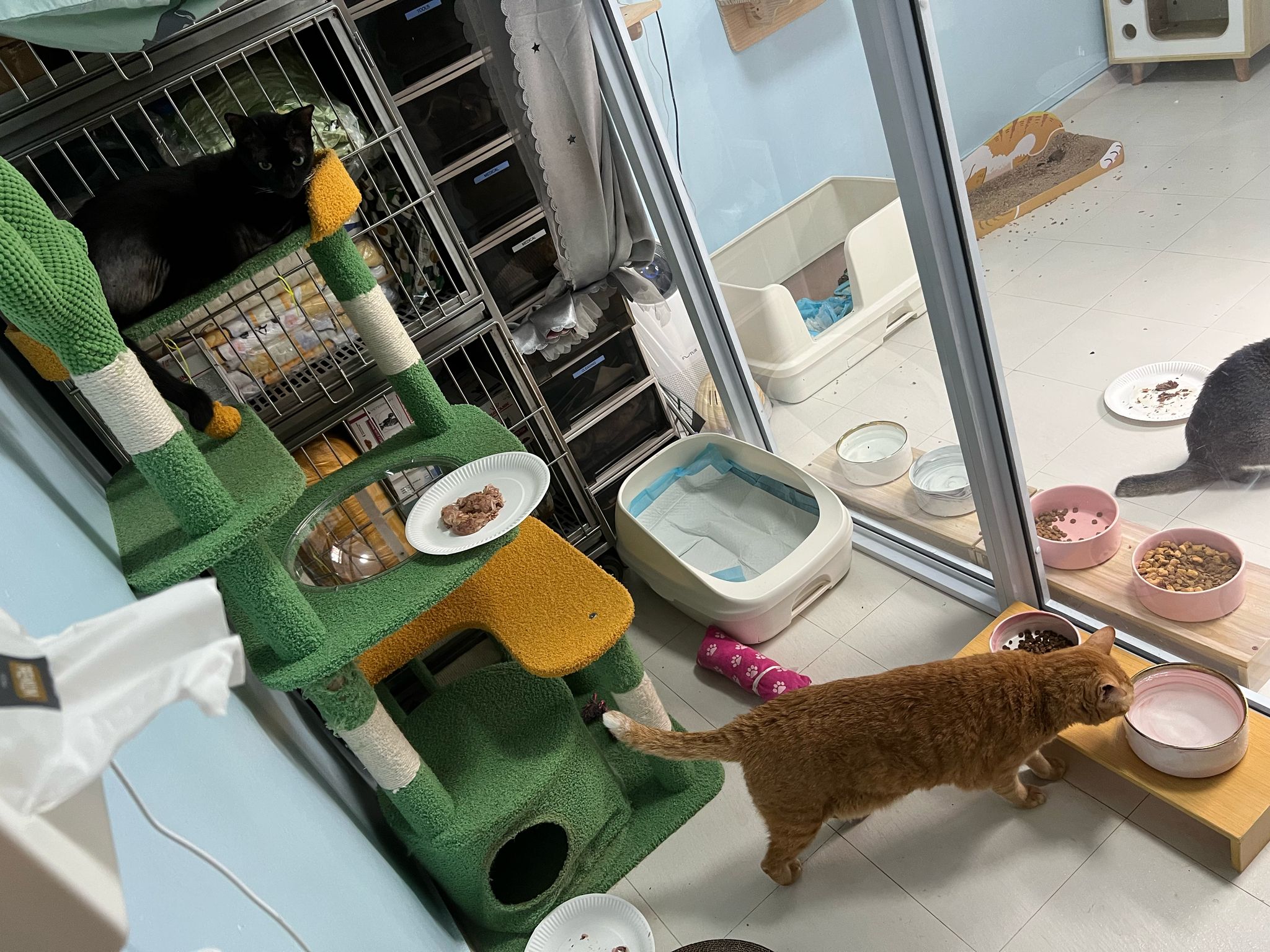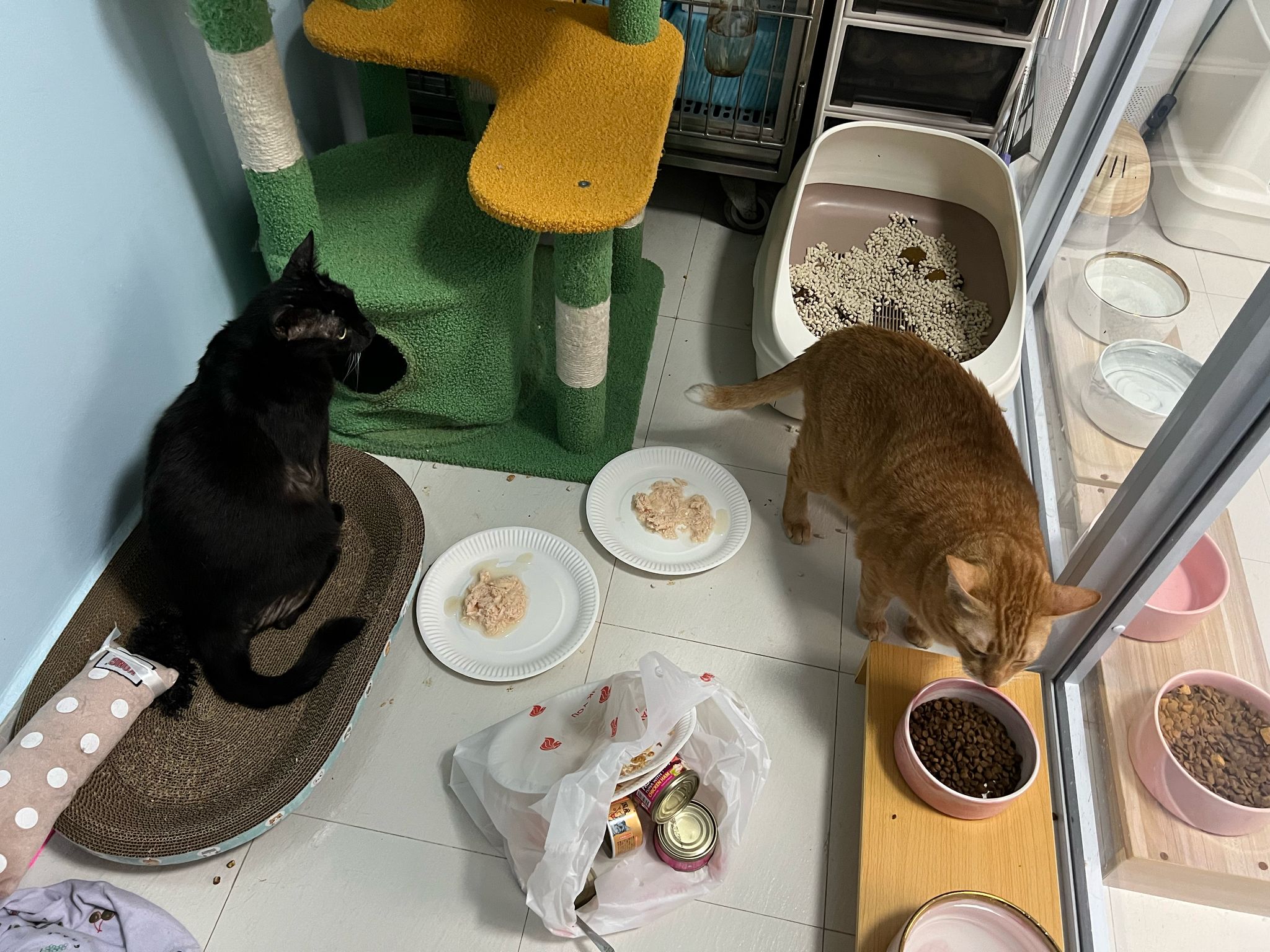 1130pm: food almost all cleared. Wa I give quite a lot of food leh, their mama one + 猫房 food.