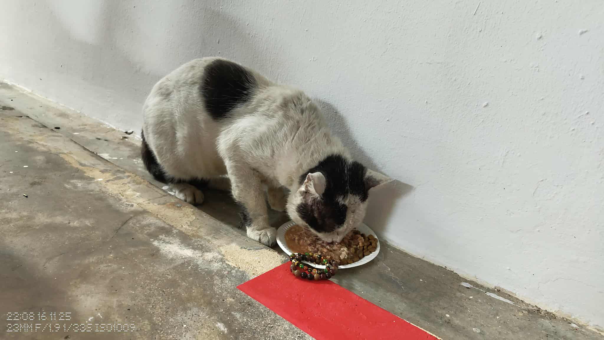• 12.33am: didn’t come 4 days so 小气 siak Xiao bai – today saw him gave him food, now waiting for him fo finish b4 I can throw