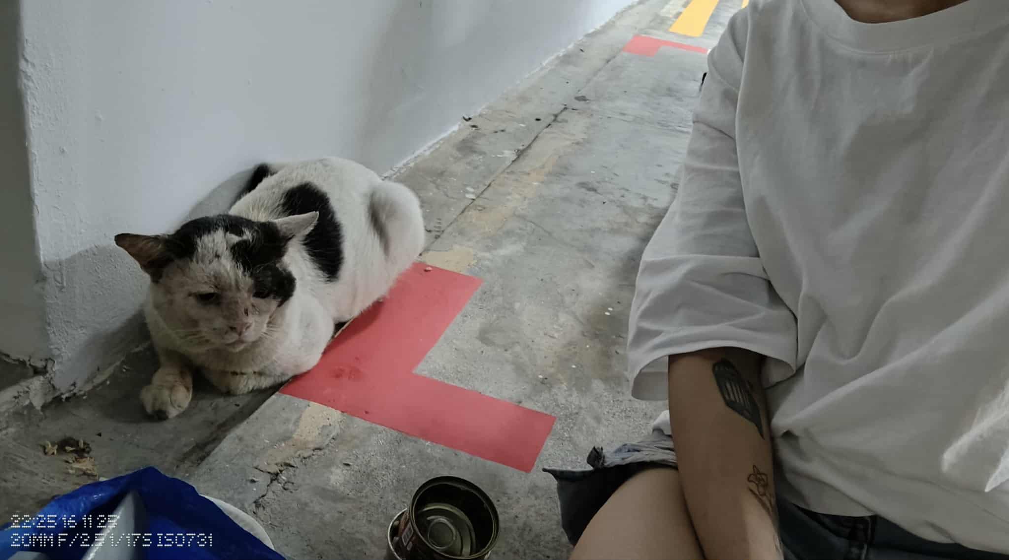 • 9pm saw xiao bai sitting outside 60a, so I give him a can of tuna and salmon