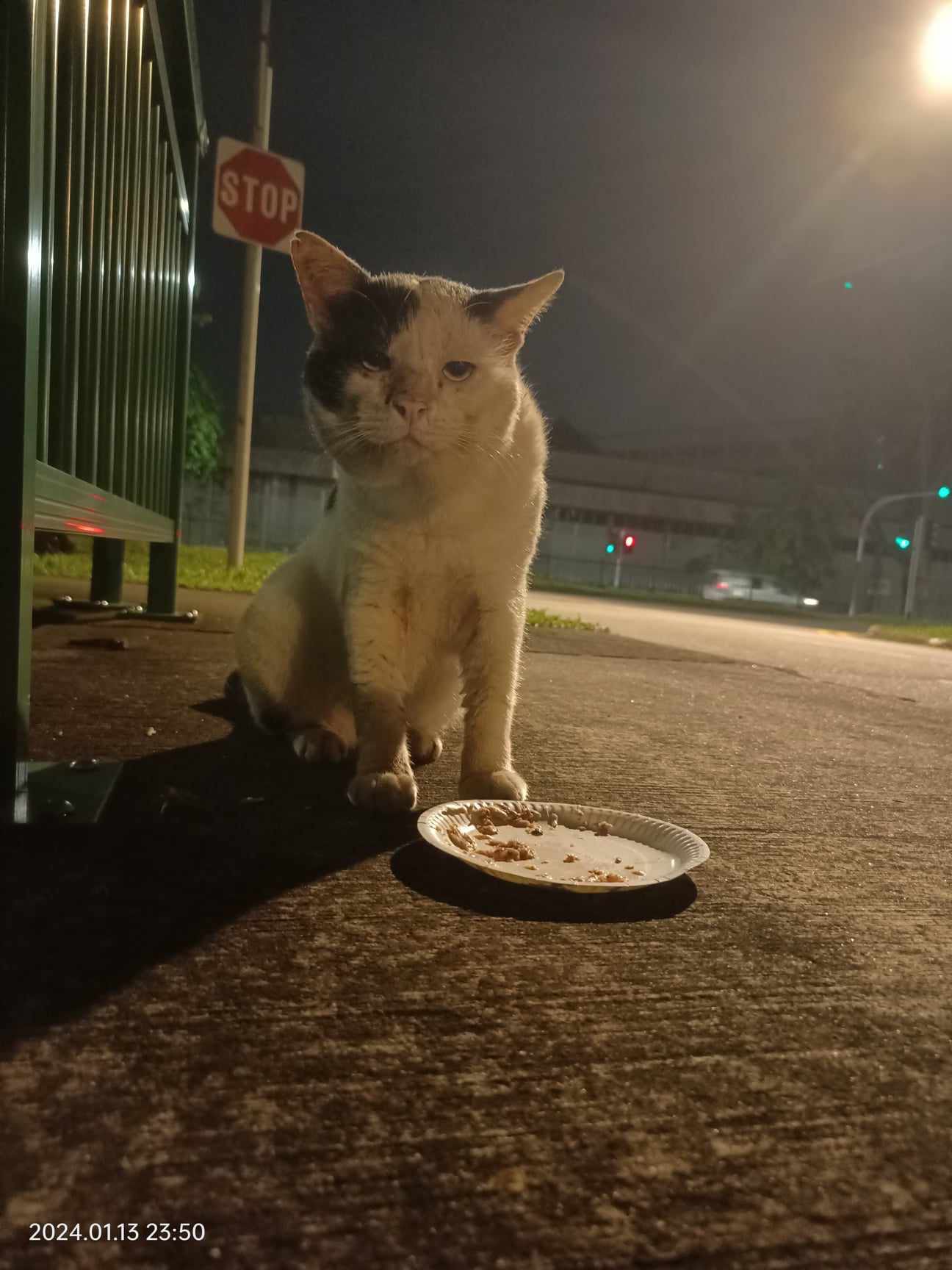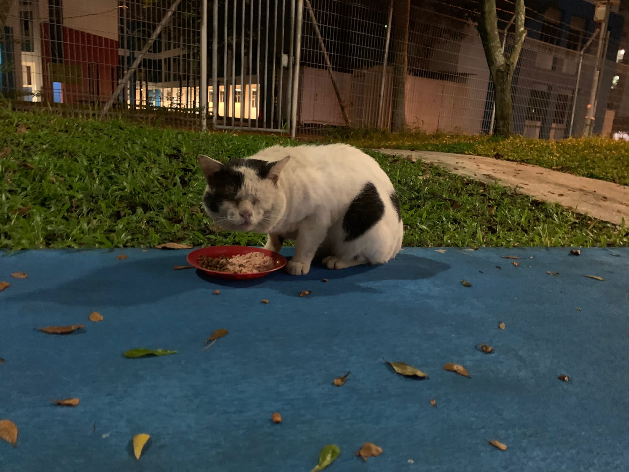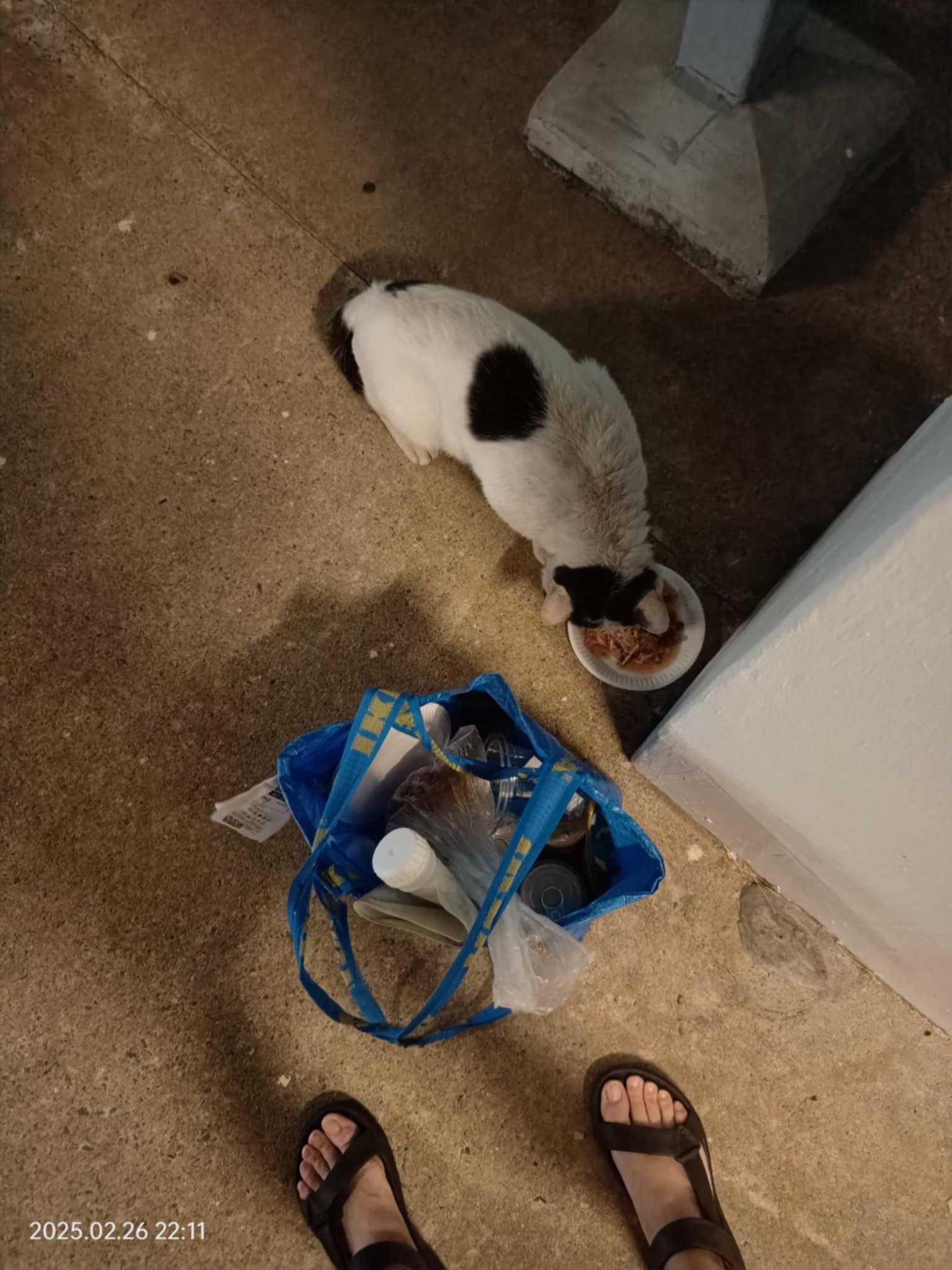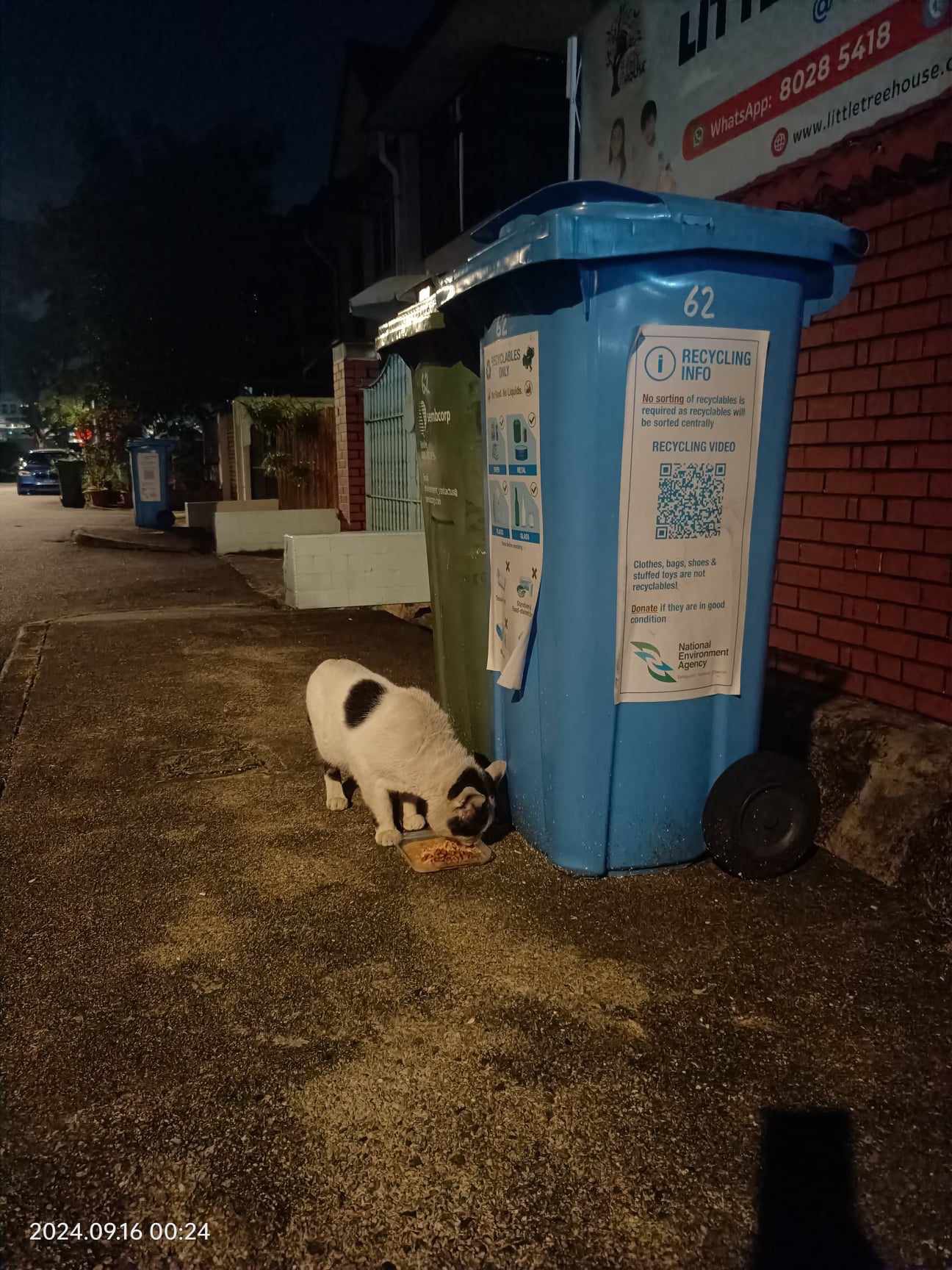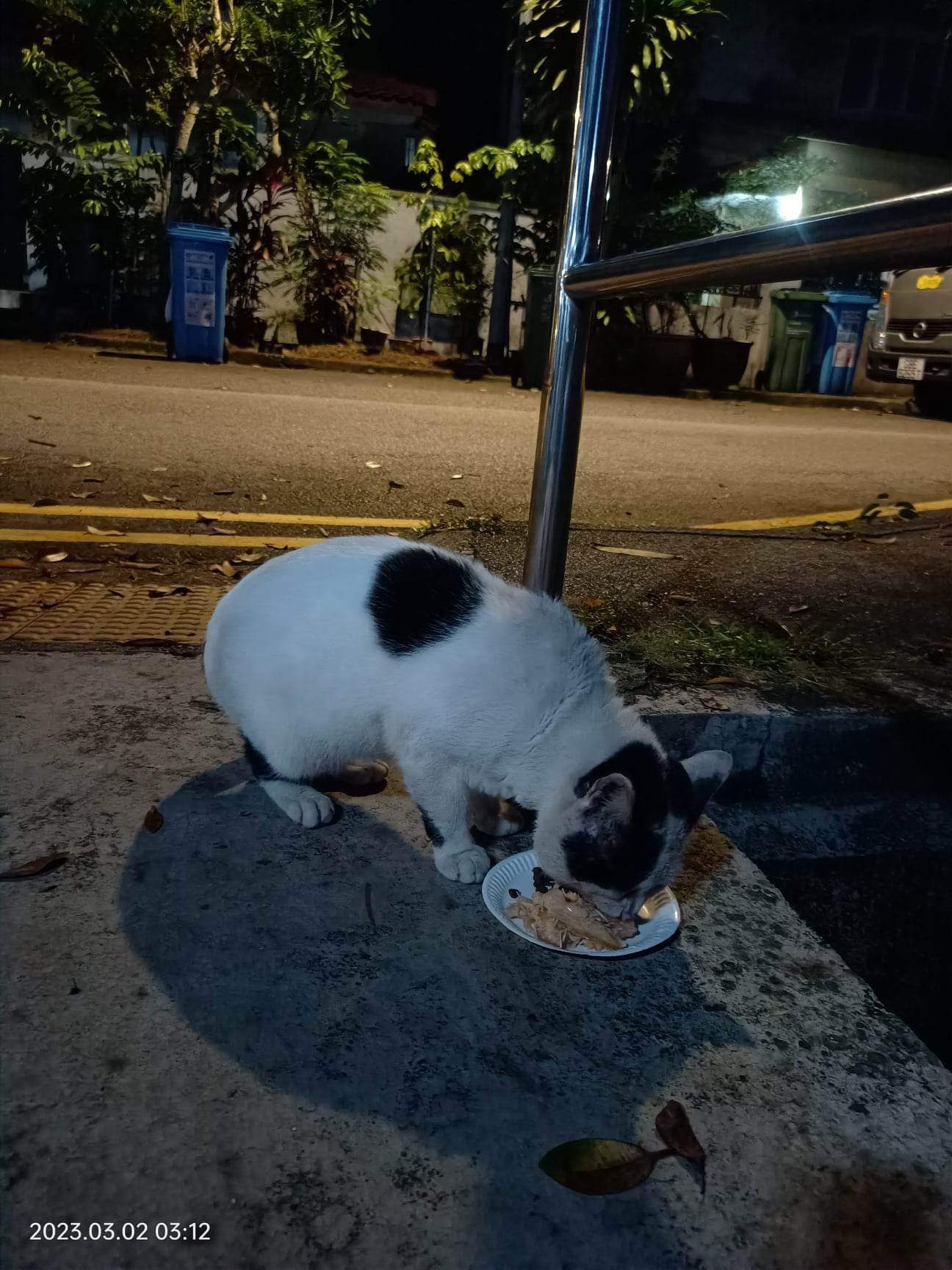 • 9pm saw xiao bai sitting outside 60a, so I give him a can of tuna and salmon